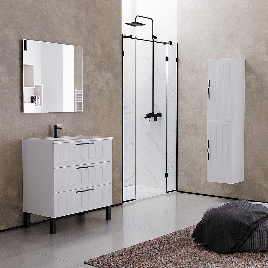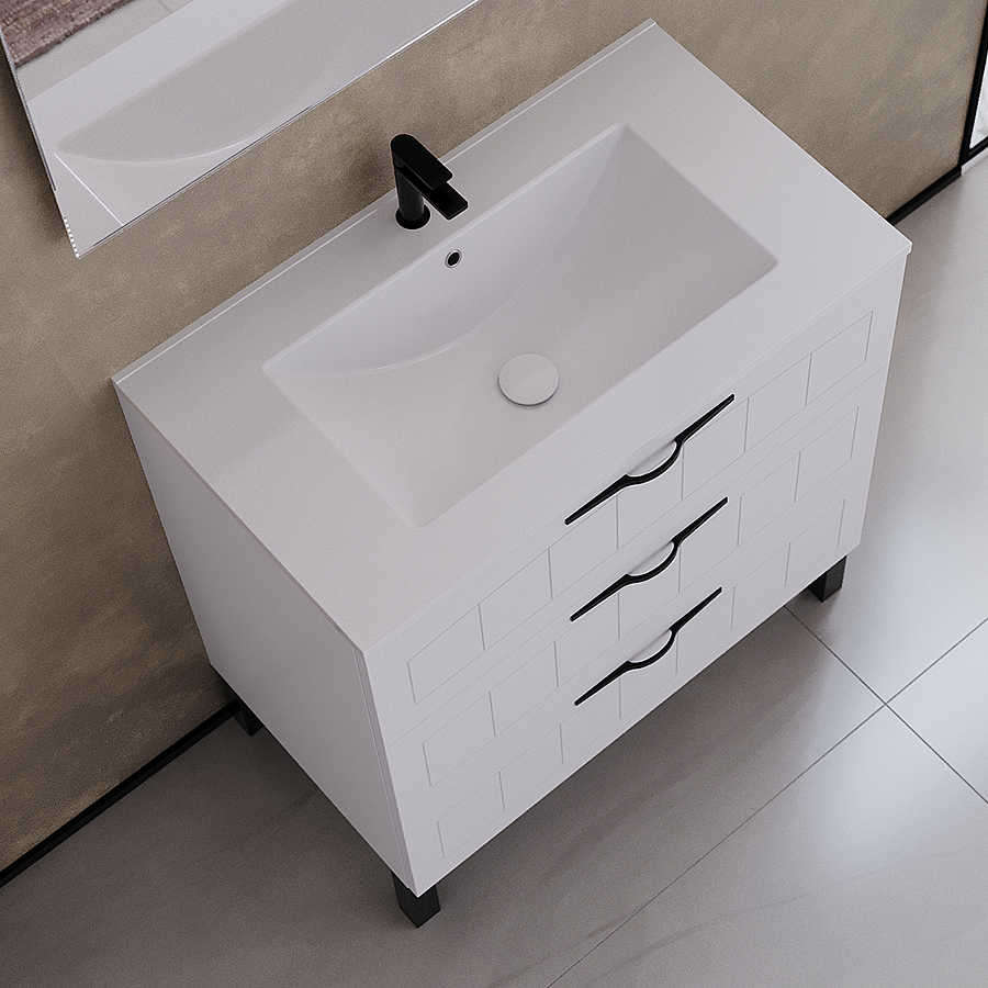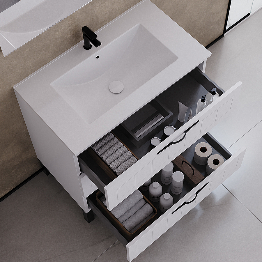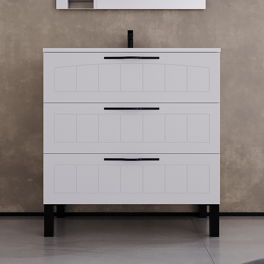 Meuble de salle de bain 80cm simple vasque - 3 tiroirs - sans miroir - blanc - CALA