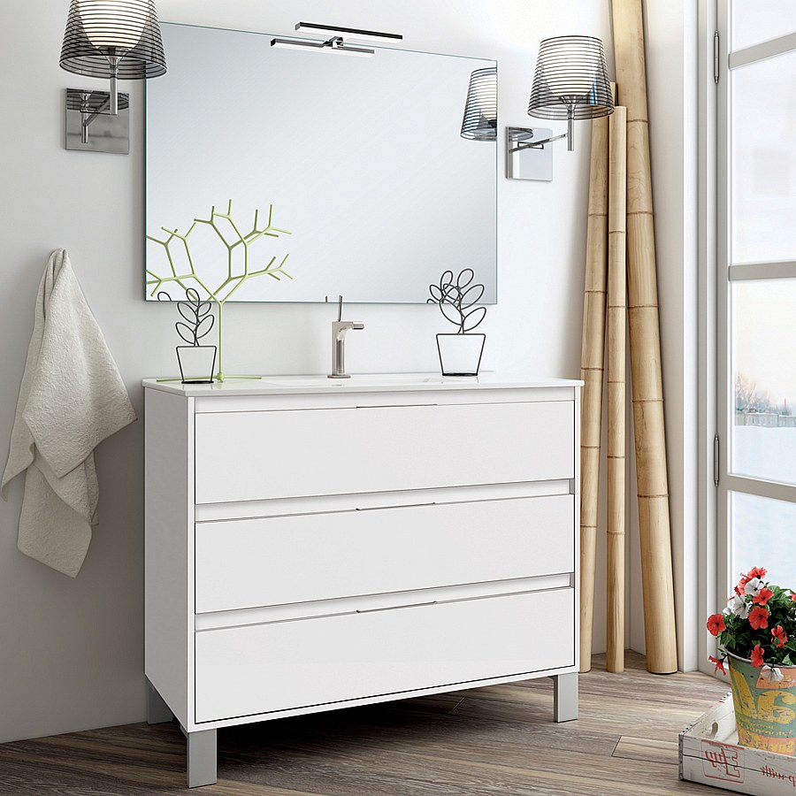 Meuble de salle de bain 80cm simple vasque - 3 tiroirs - TIRIS 3C - blanc