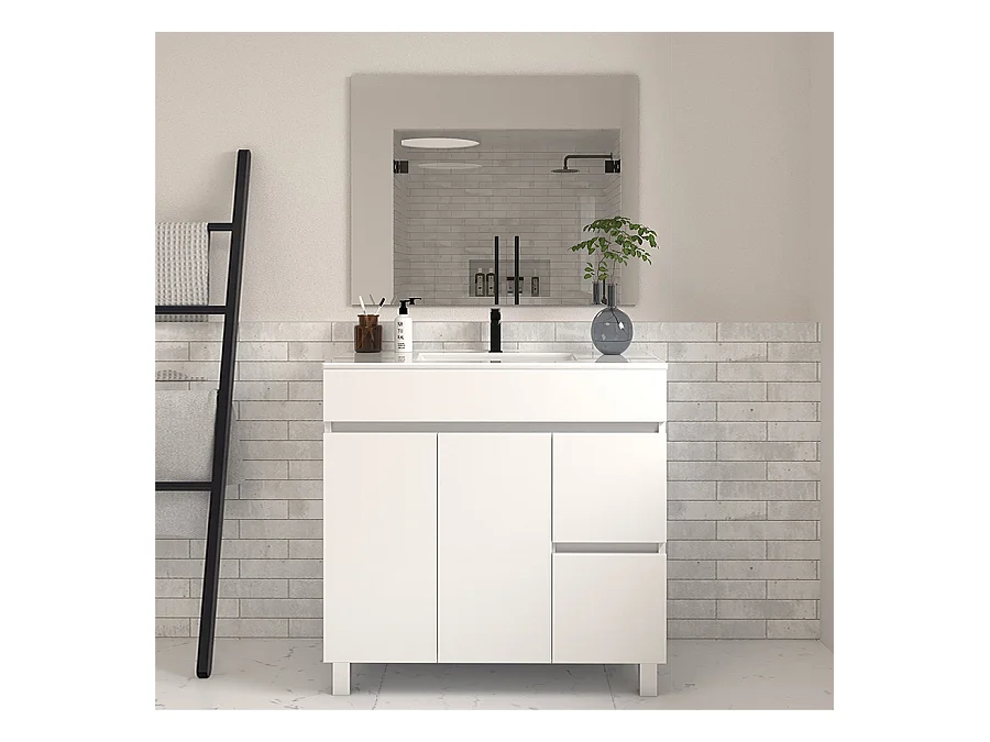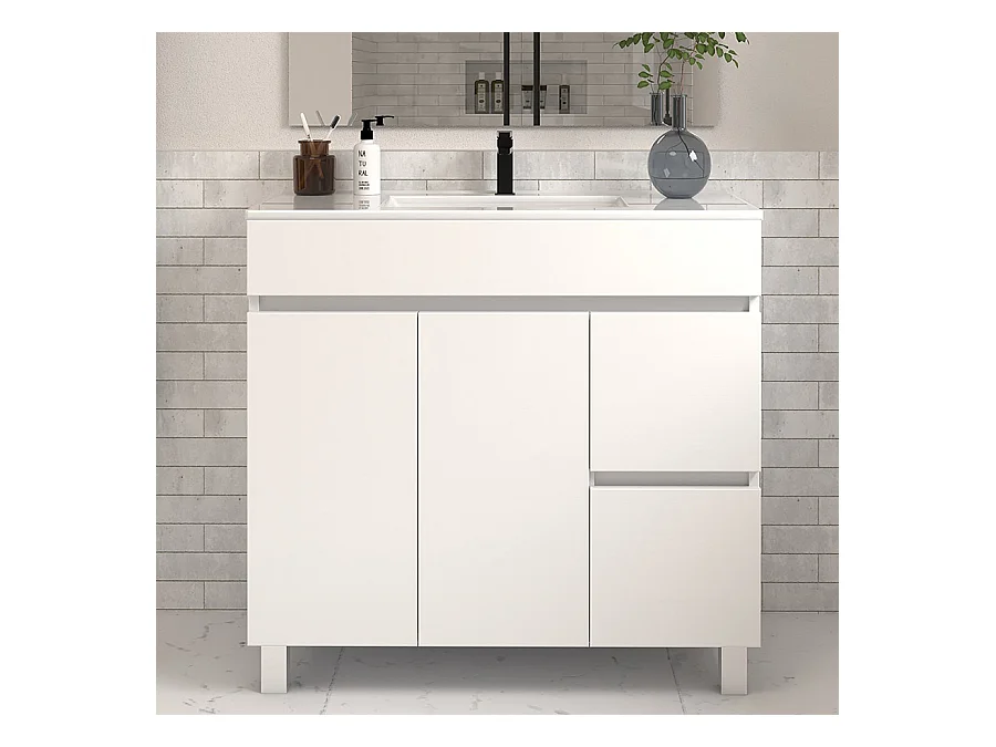 Meuble de salle de bain 80cm simple vasque sur pieds avec portes et tiroirs - blanc - HARO