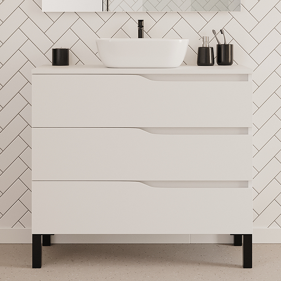 Meuble de salle de bain 90cm avec plateau et vasque à poser zeus - 3 tiroirs - blanc - MATA