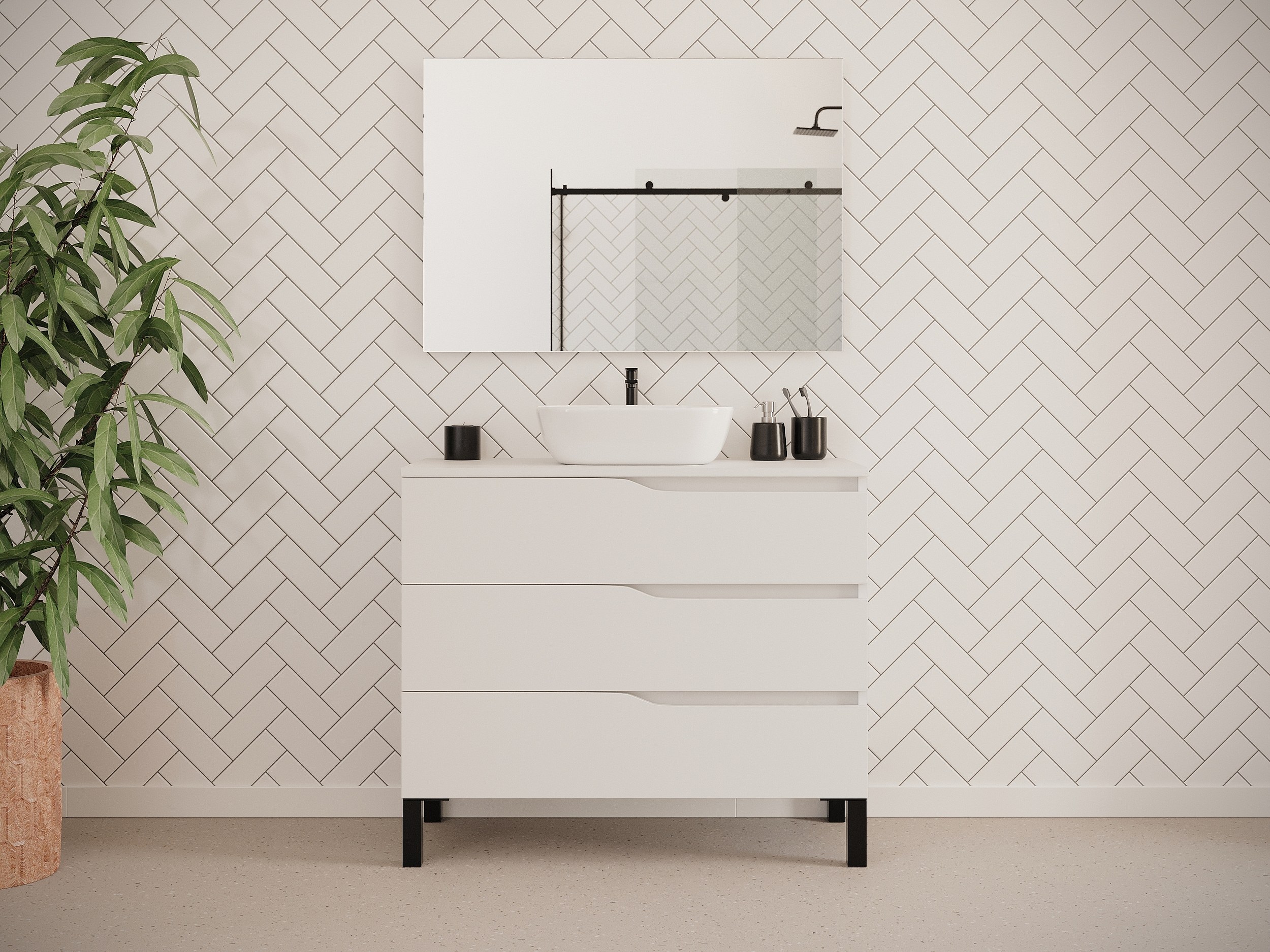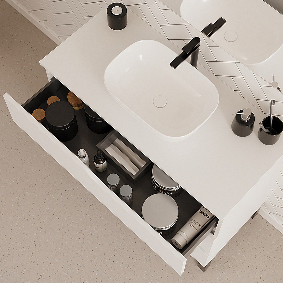 Meuble de salle de bain 90cm avec plateau et vasque à poser zeus - 3 tiroirs - sans miroir - blanc - MATA