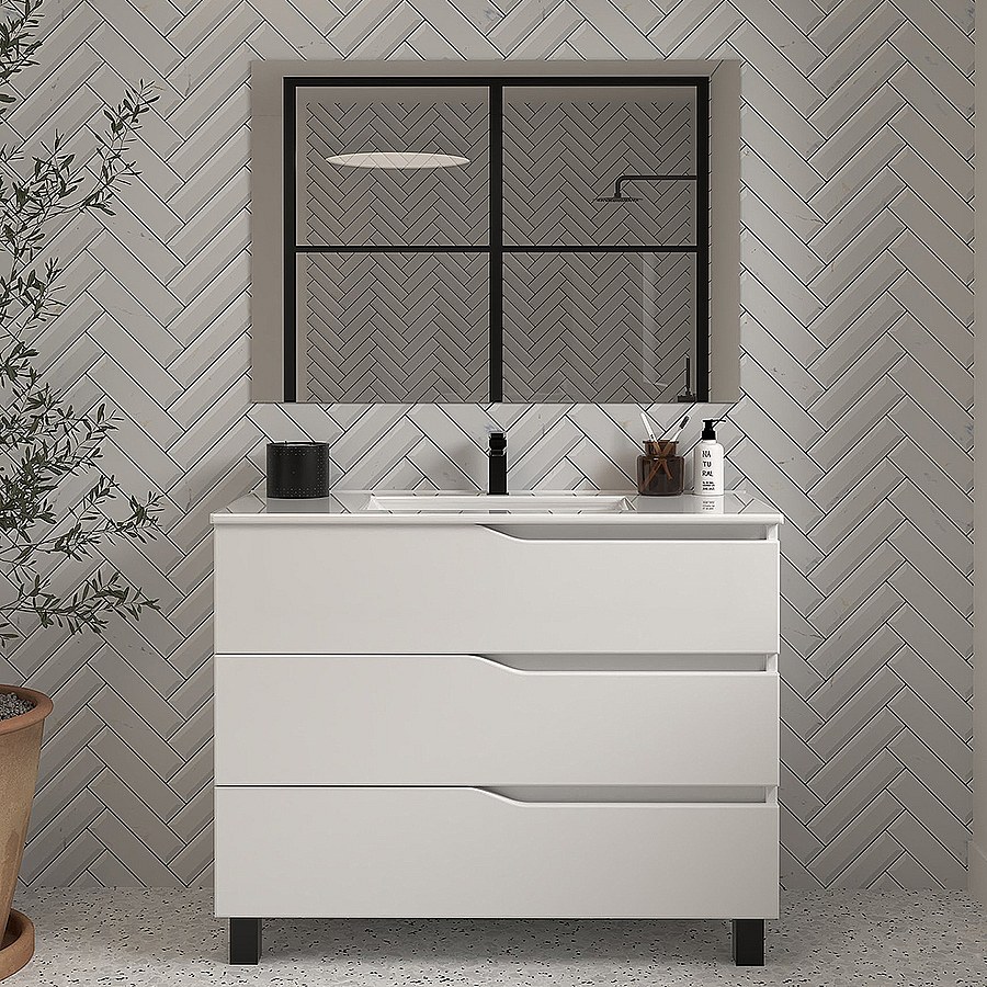 Meuble de salle de bain 90cm simple vasque - 3 tiroirs - blanc - MATA
