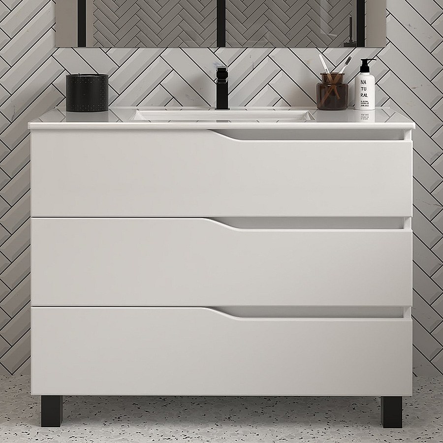Meuble de salle de bain 90cm simple vasque - 3 tiroirs - sans miroir - blanc - MATA
