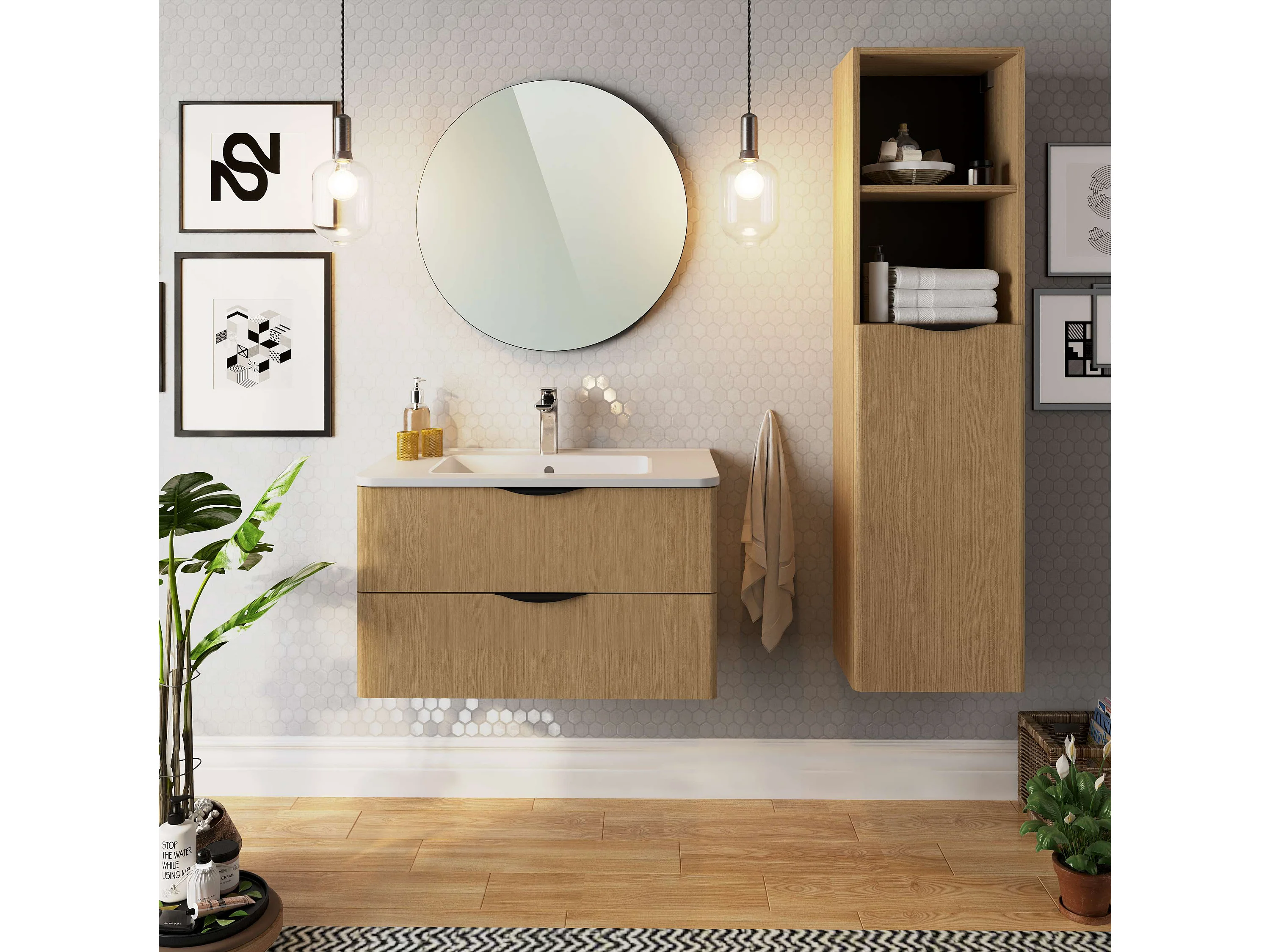 Meuble de salle de bain DOVRE 2 tiroirs 80 cm chêne T-BATH Inclus lavabo