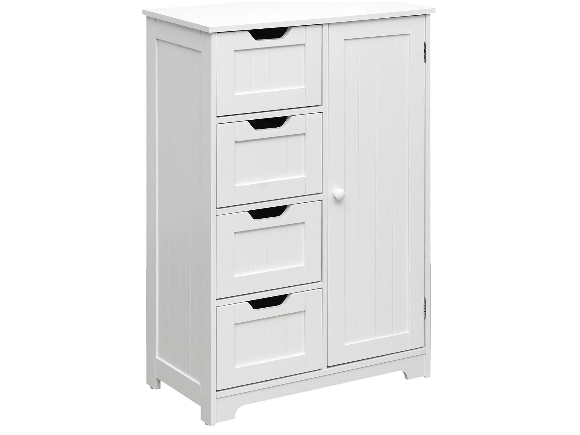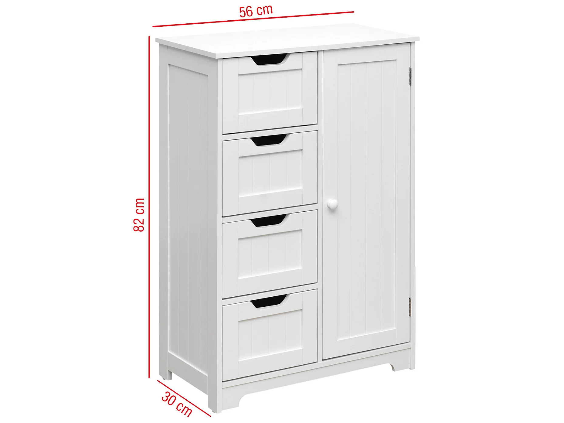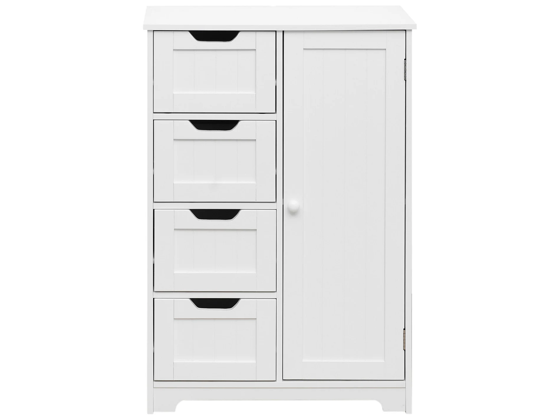 Meuble de salle de bain Moderne 4 Tiroirs 1 Porte Bois Blanc