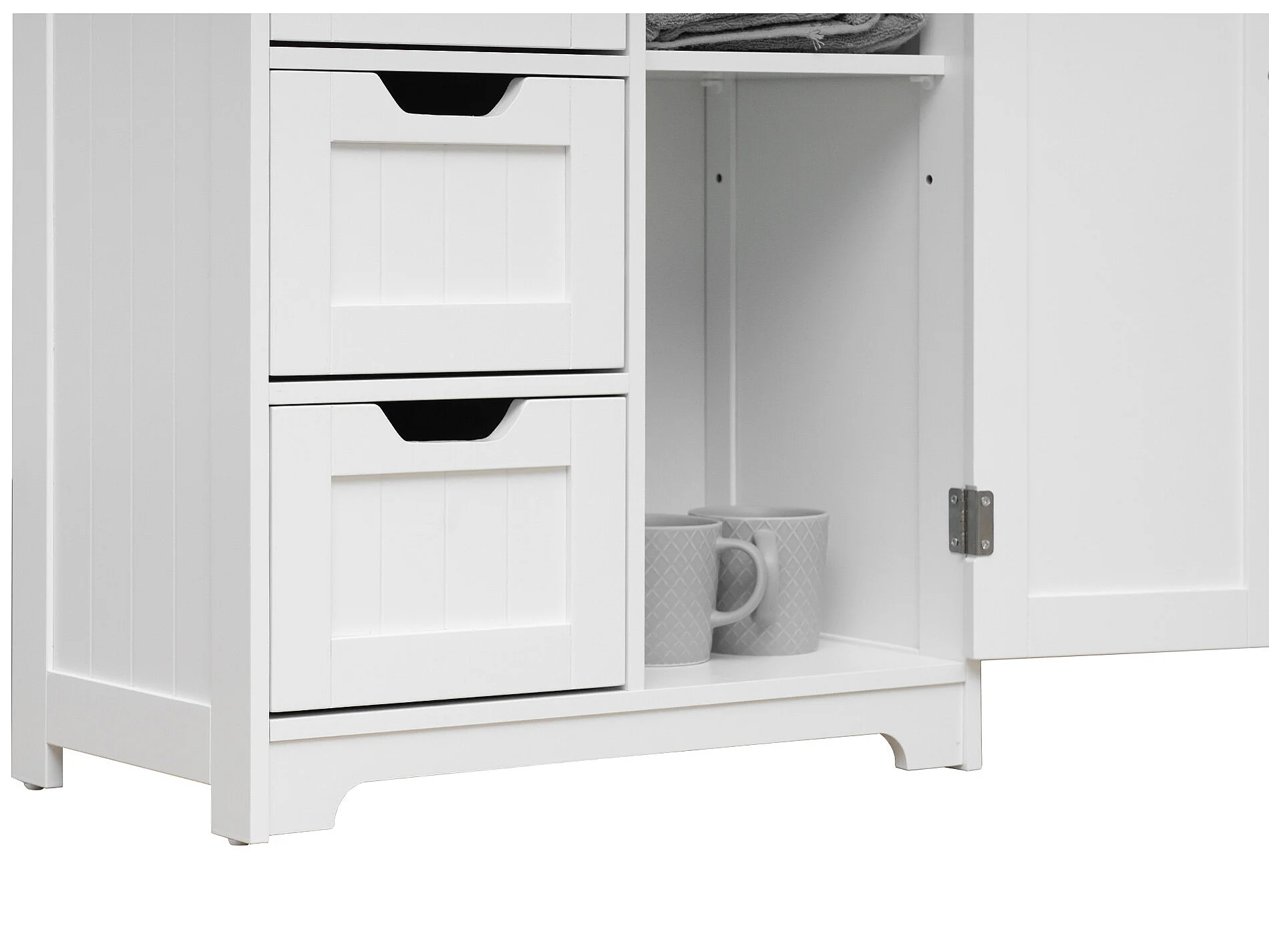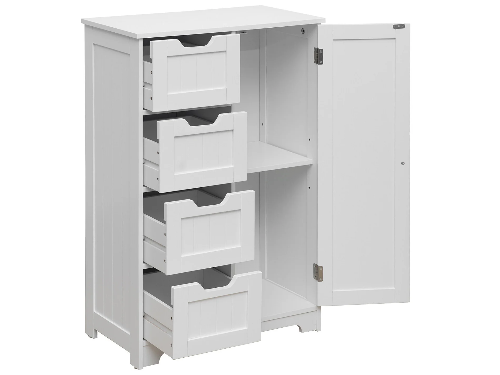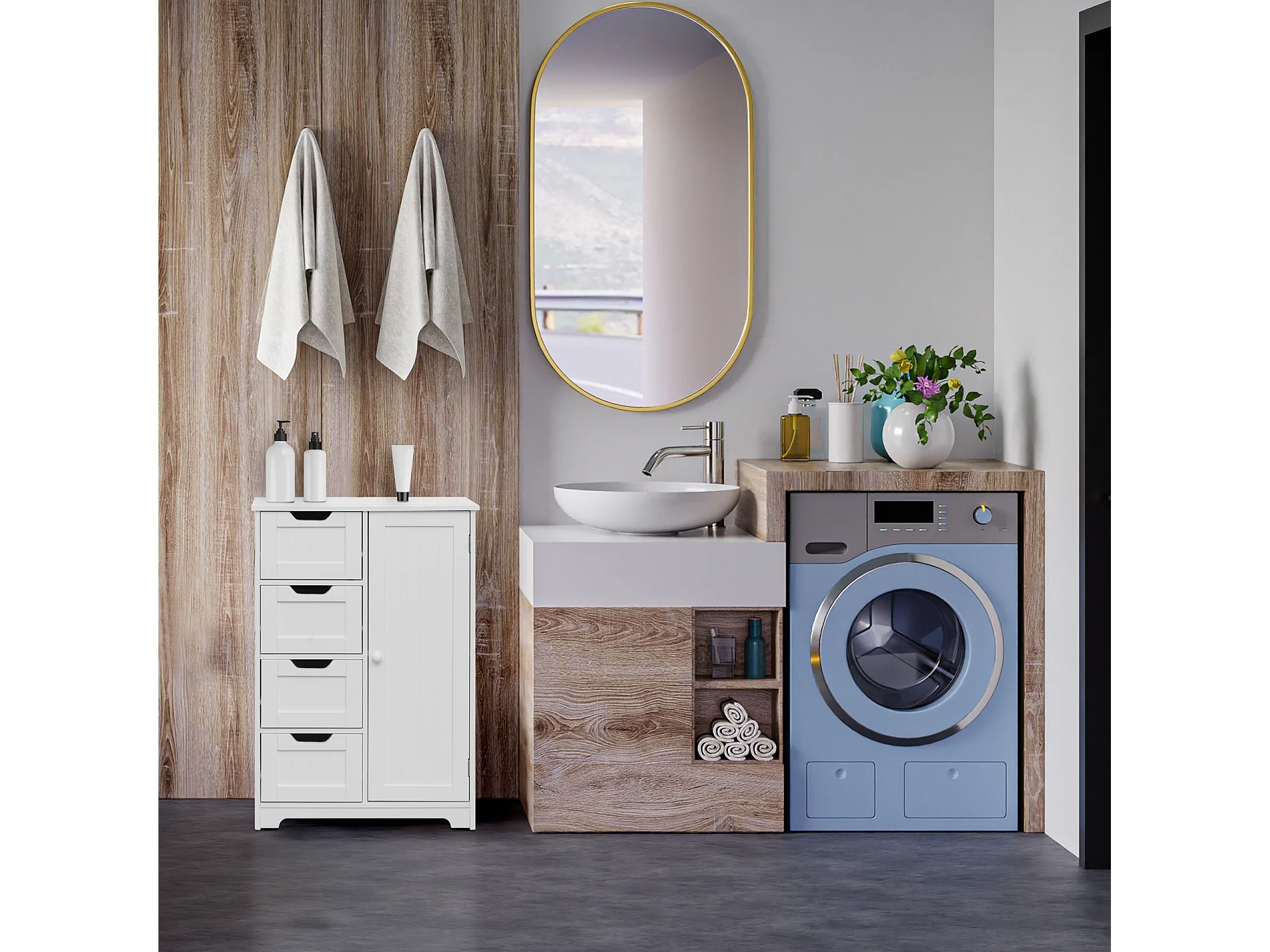 Meuble de salle de bain Moderne 4 Tiroirs 1 Porte Bois Blanc
