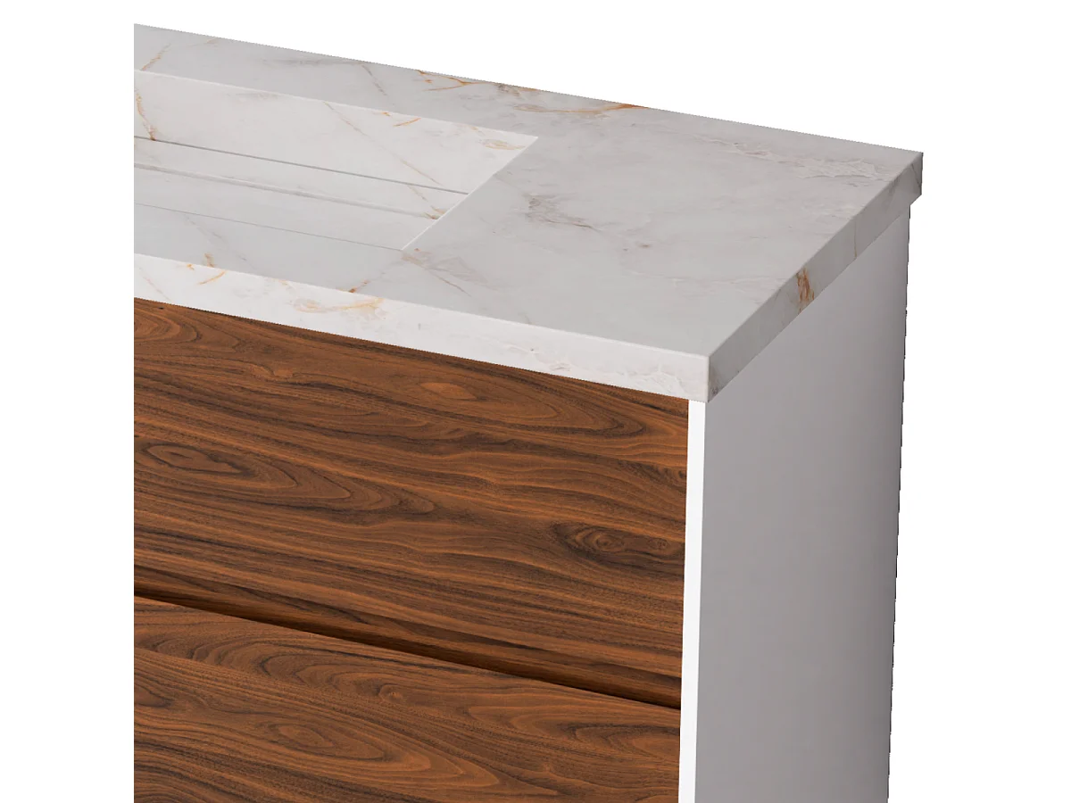 Meuble Salle de Bain COOL (61 cm x H54 x P45 cm), Plan Vasque Grès Cérame BS, 2 Tiroirs, Laqué Blanc Mat/Noyer