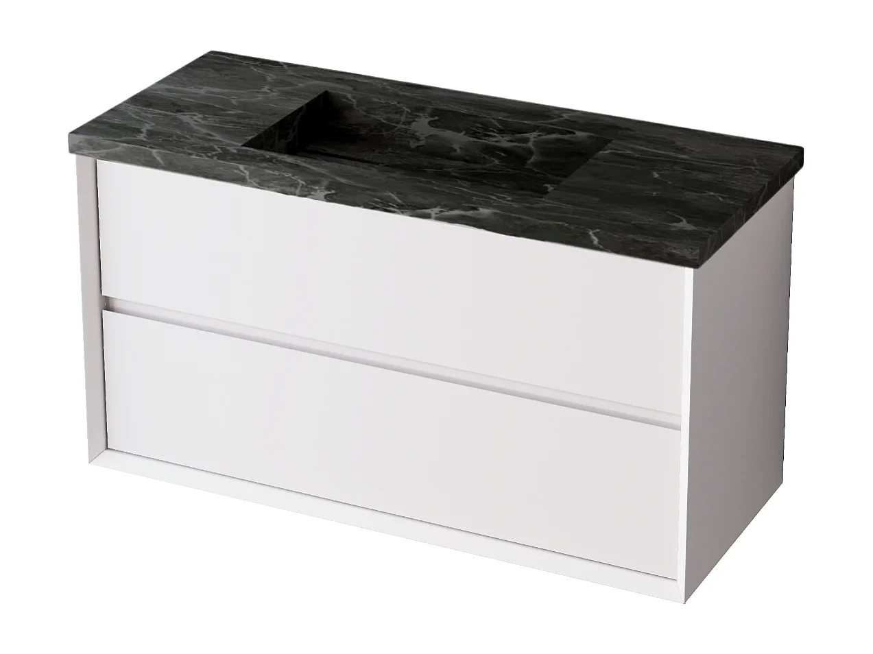Meuble Salle de Bain COOL (101 cm x H54 x P45 cm), Plan Vasque Grès Cérame NA, 2 Tiroirs, Laqué Blanc Mat/Noyer