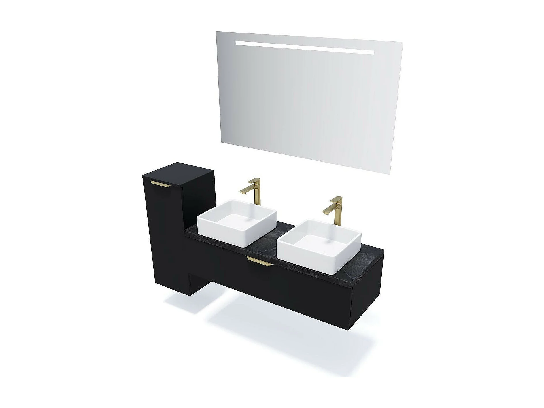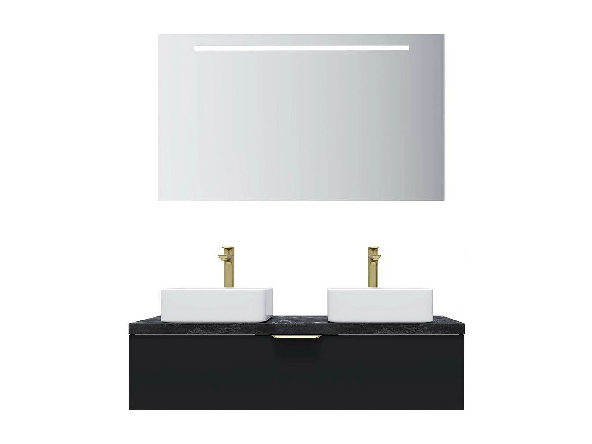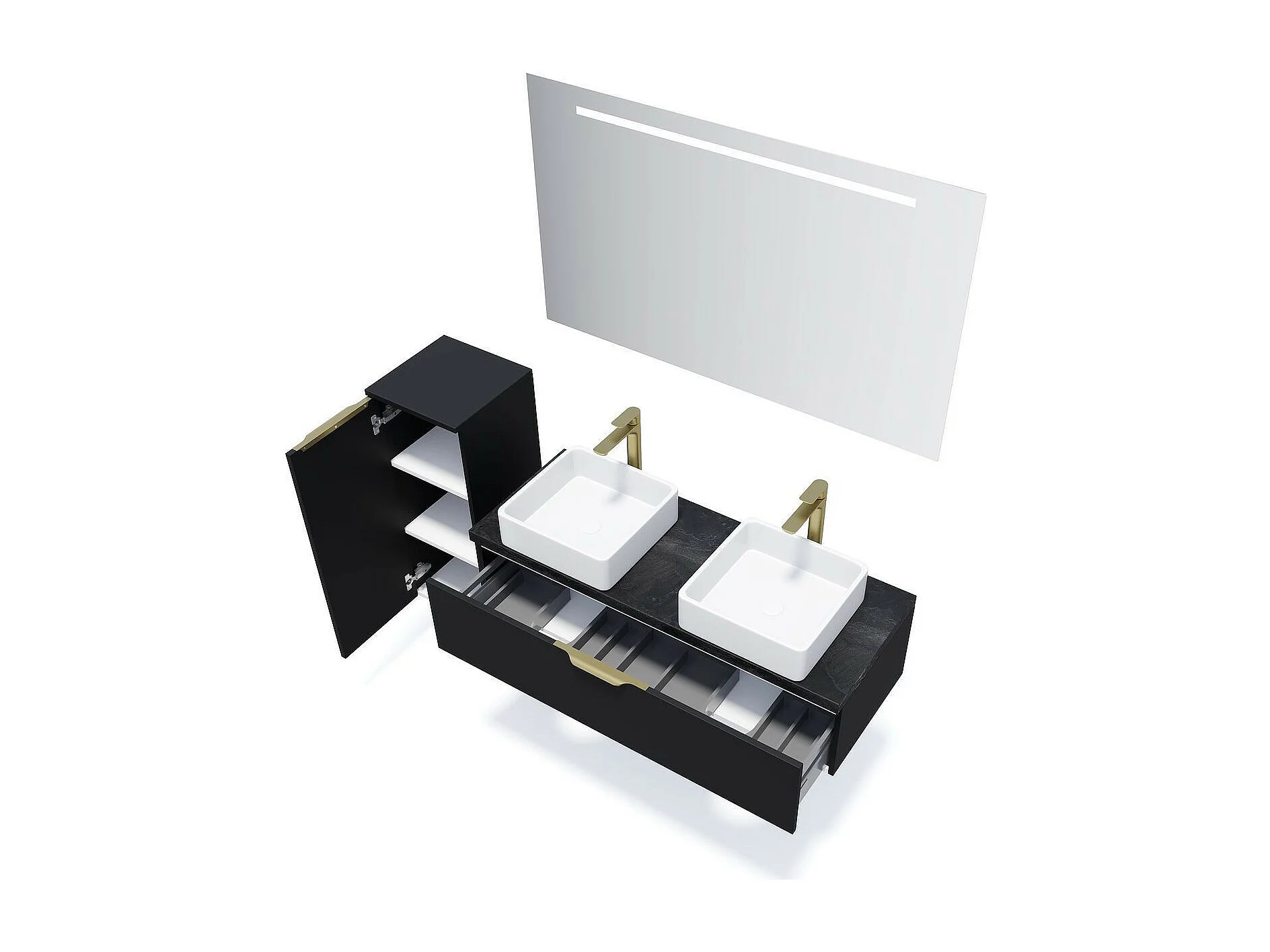 Meuble de salle de bain suspendu 2 vasques à poser 120cm 1 tiroir Noir + miroir - Venice