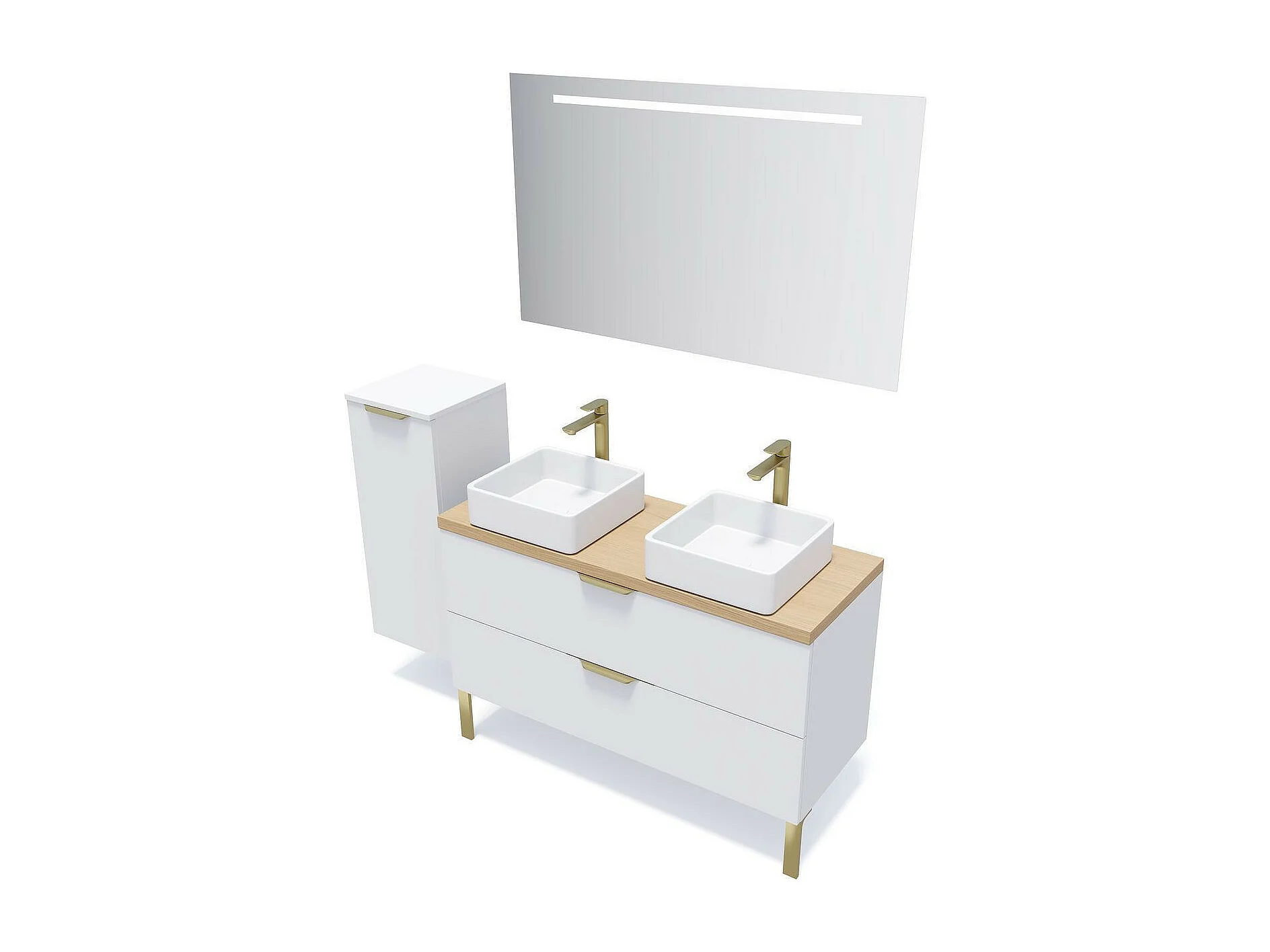 Meuble de salle de bain suspendu 2 vasques à poser 120cm 2 tiroirs Blanc + miroir - Venice