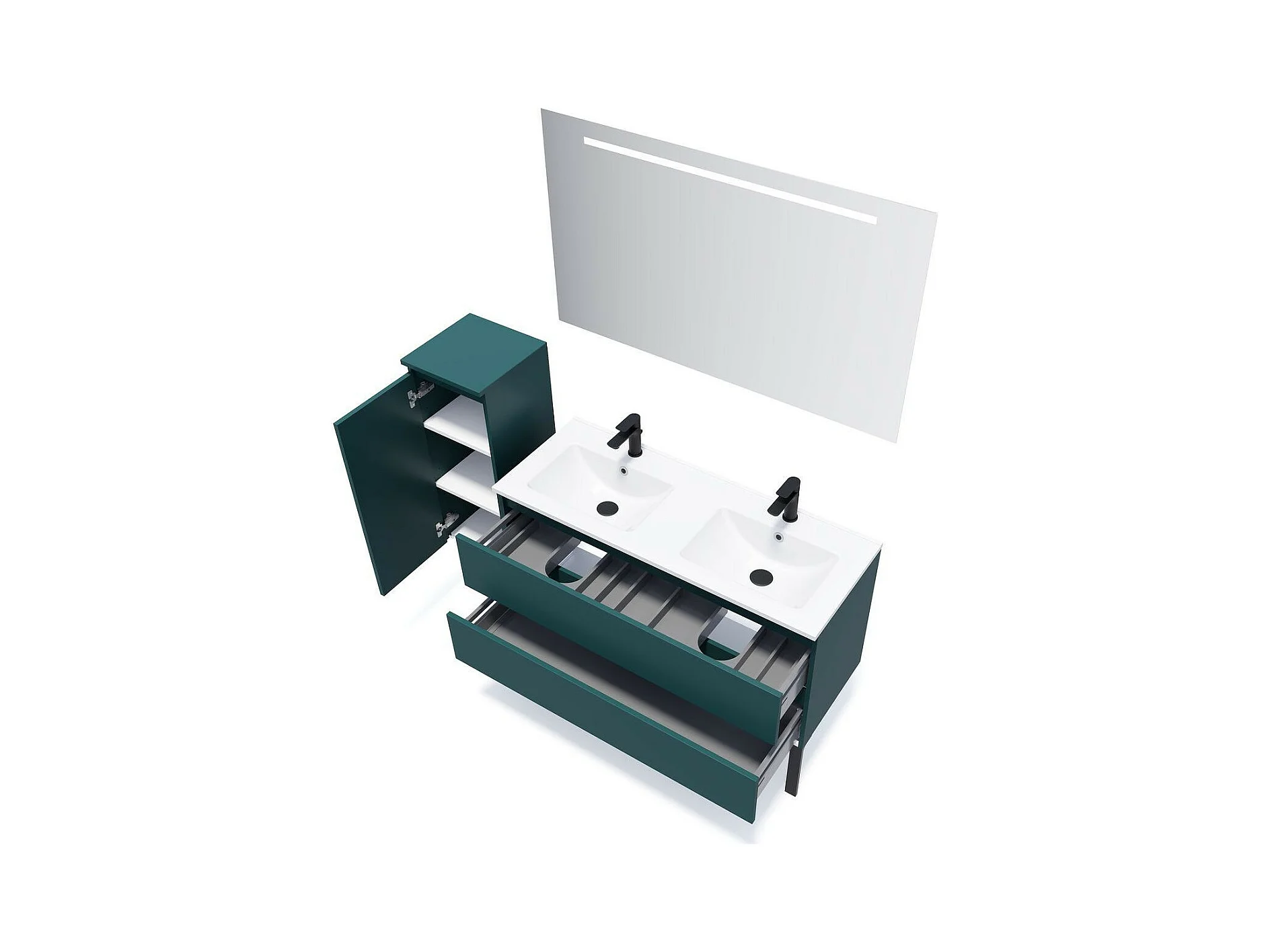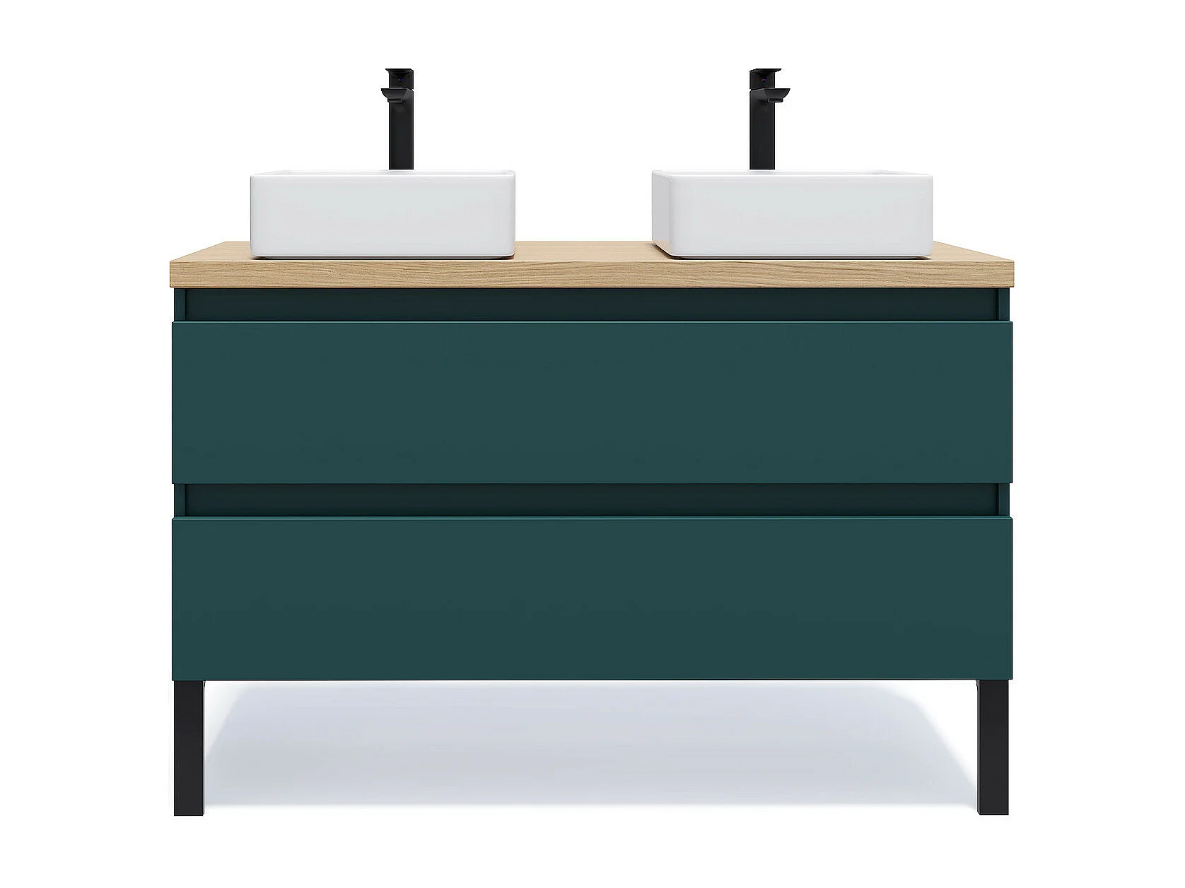 Meuble de salle de bain suspendu 2 vasques à poser 120cm 2 tiroirs Bleu - Hudson