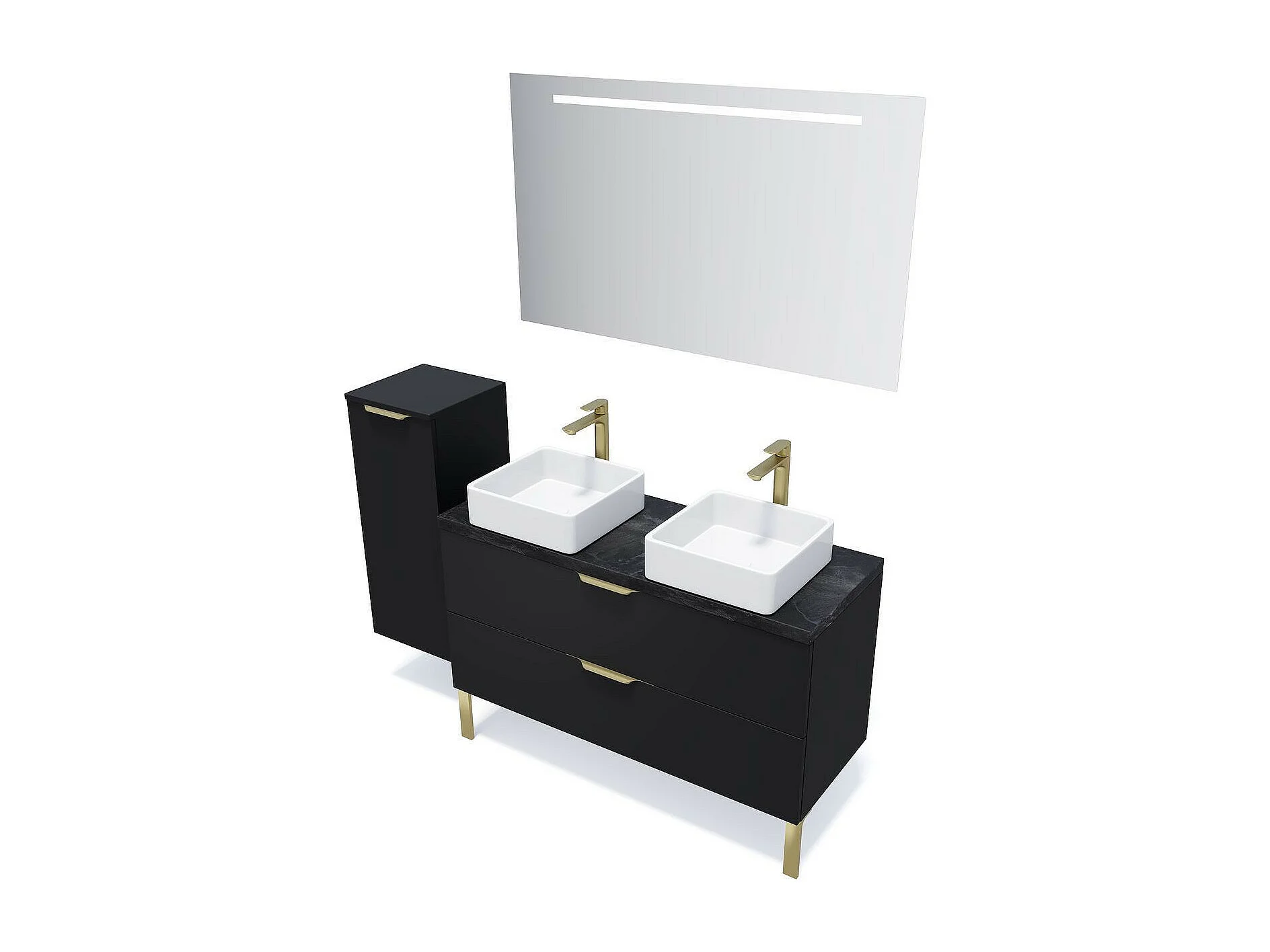 Meuble de salle de bain suspendu 2 vasques à poser 120cm 2 tiroirs Noir + miroir - Venice