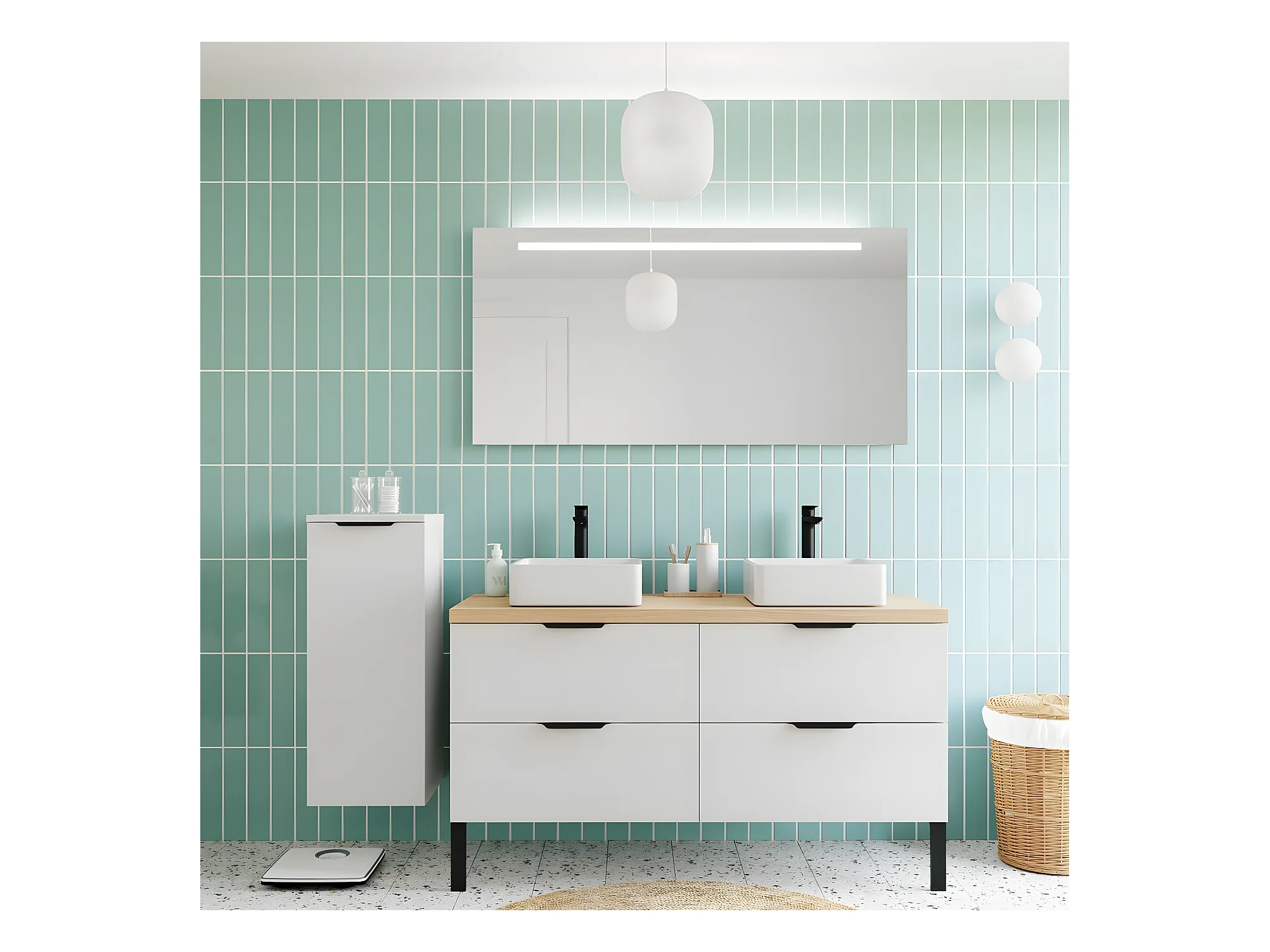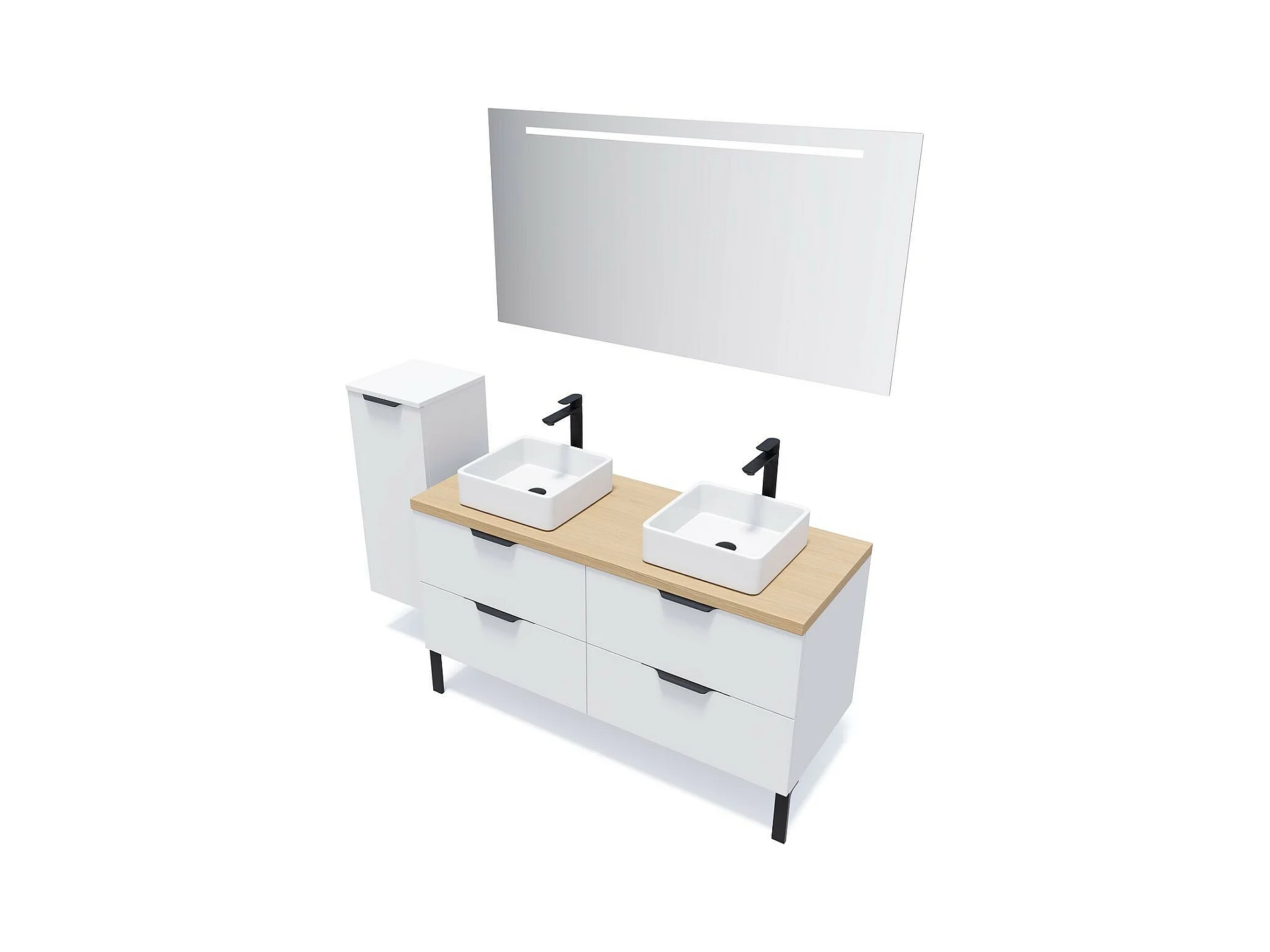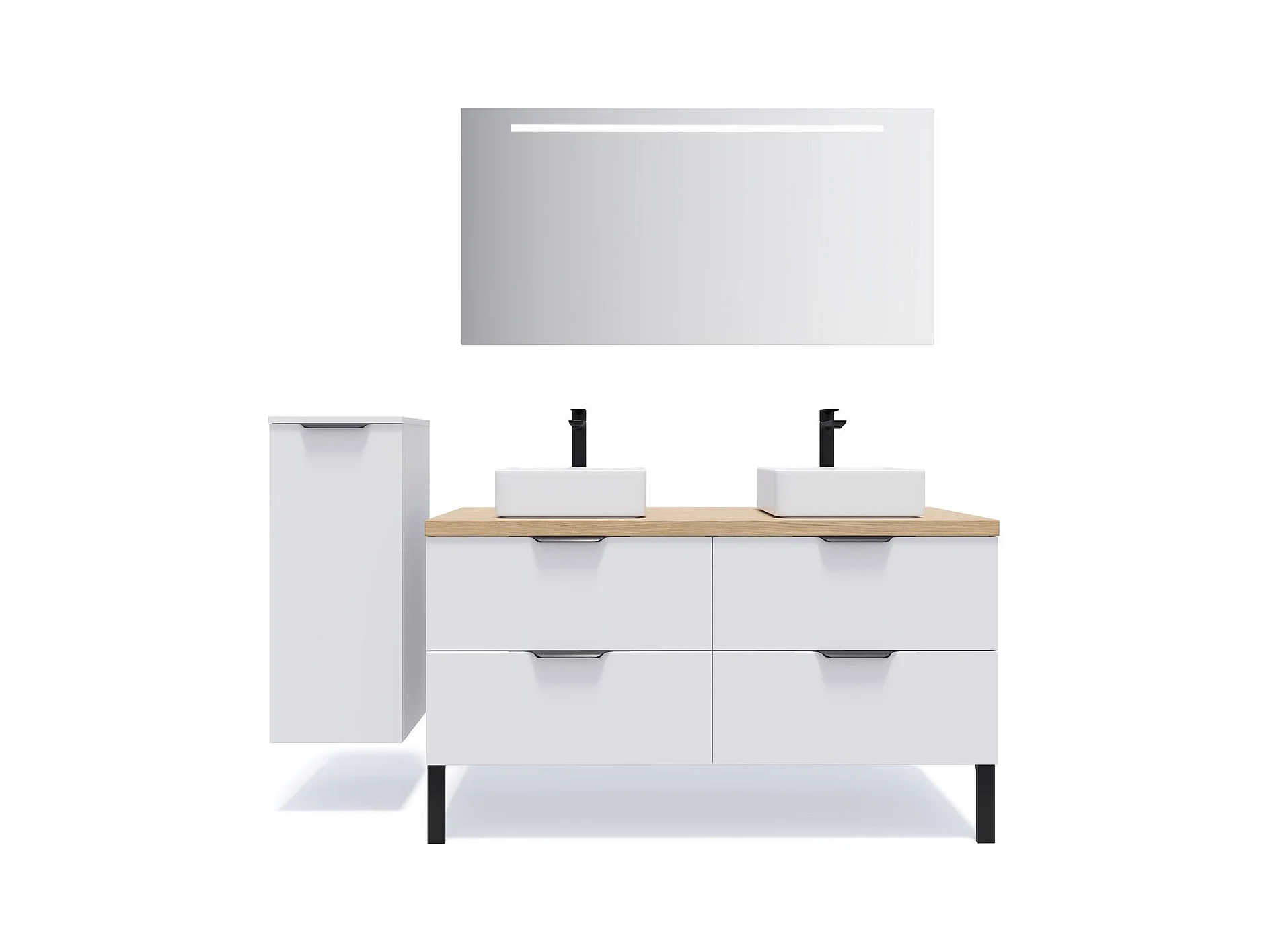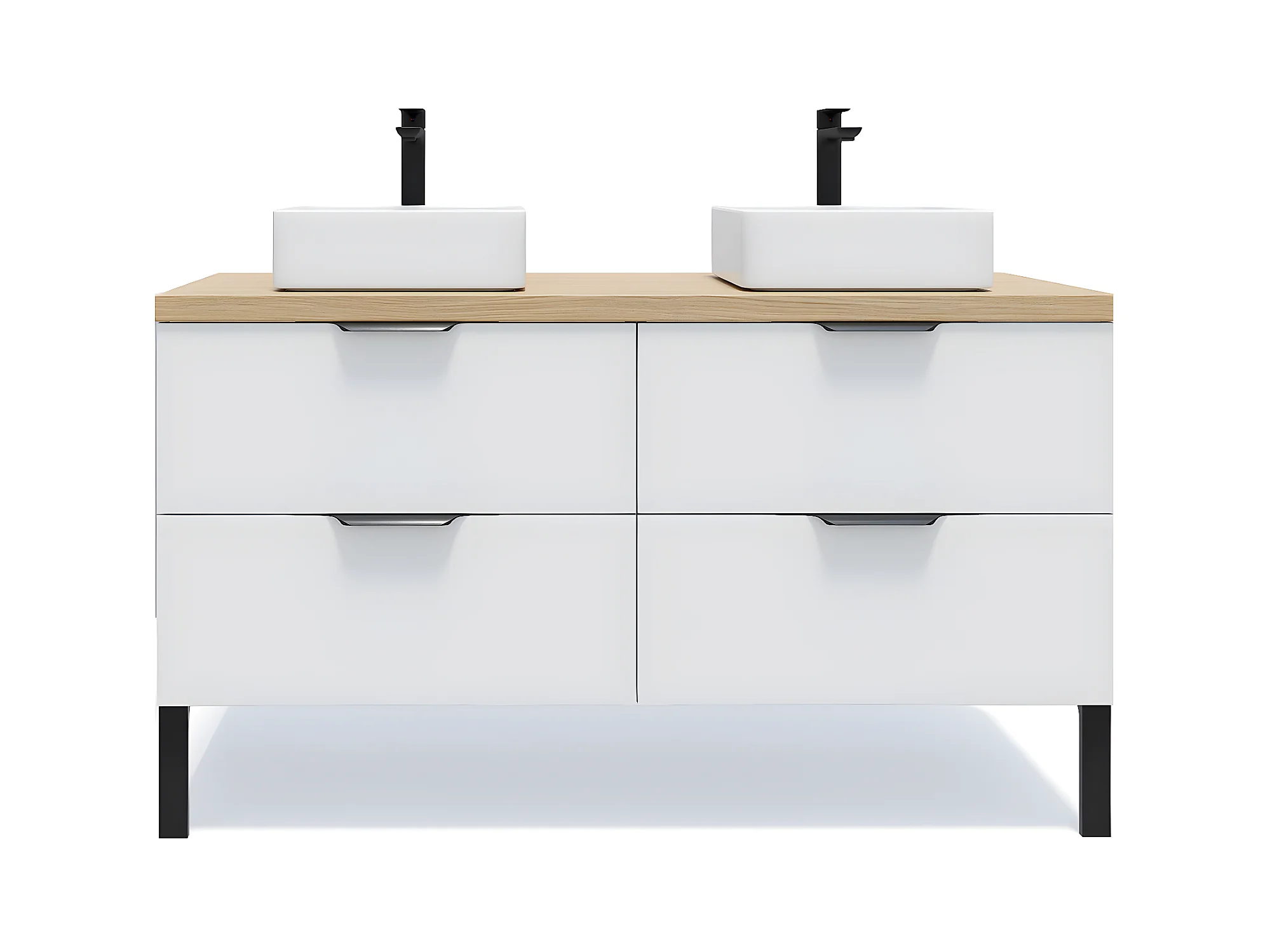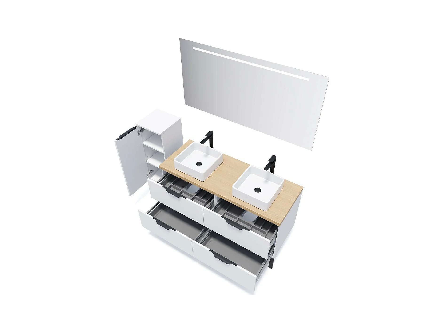 Meuble de salle de bain suspendu 2 vasques à poser 140cm 4 tiroirs Blanc - Soho