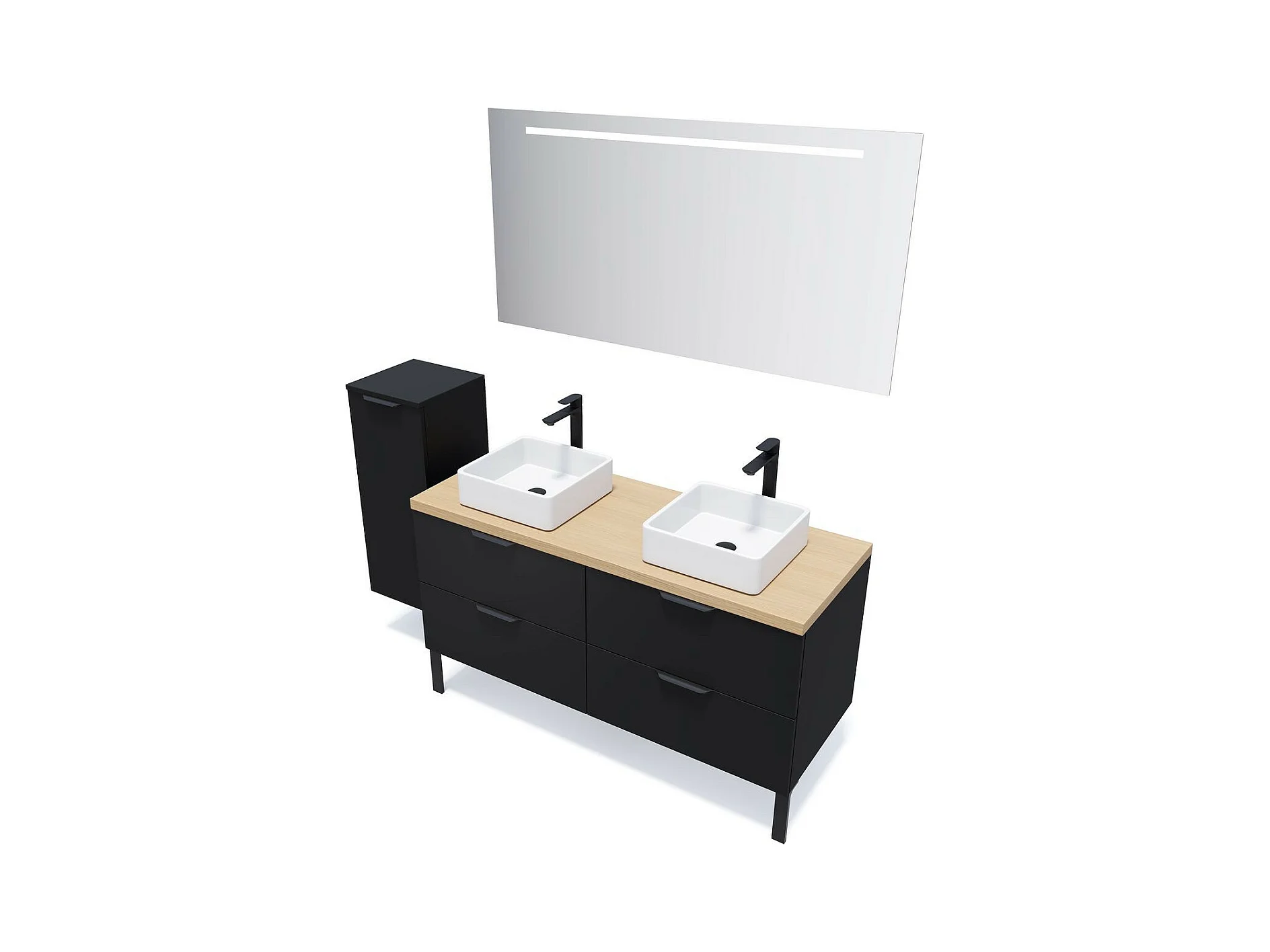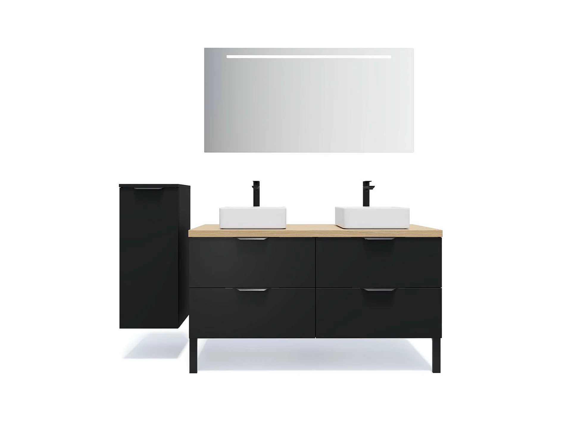 Meuble de salle de bain suspendu 2 vasques à poser 140cm 4 tiroirs Noir - Soho