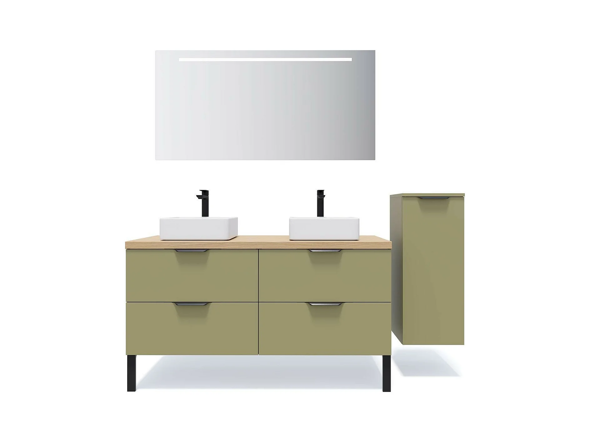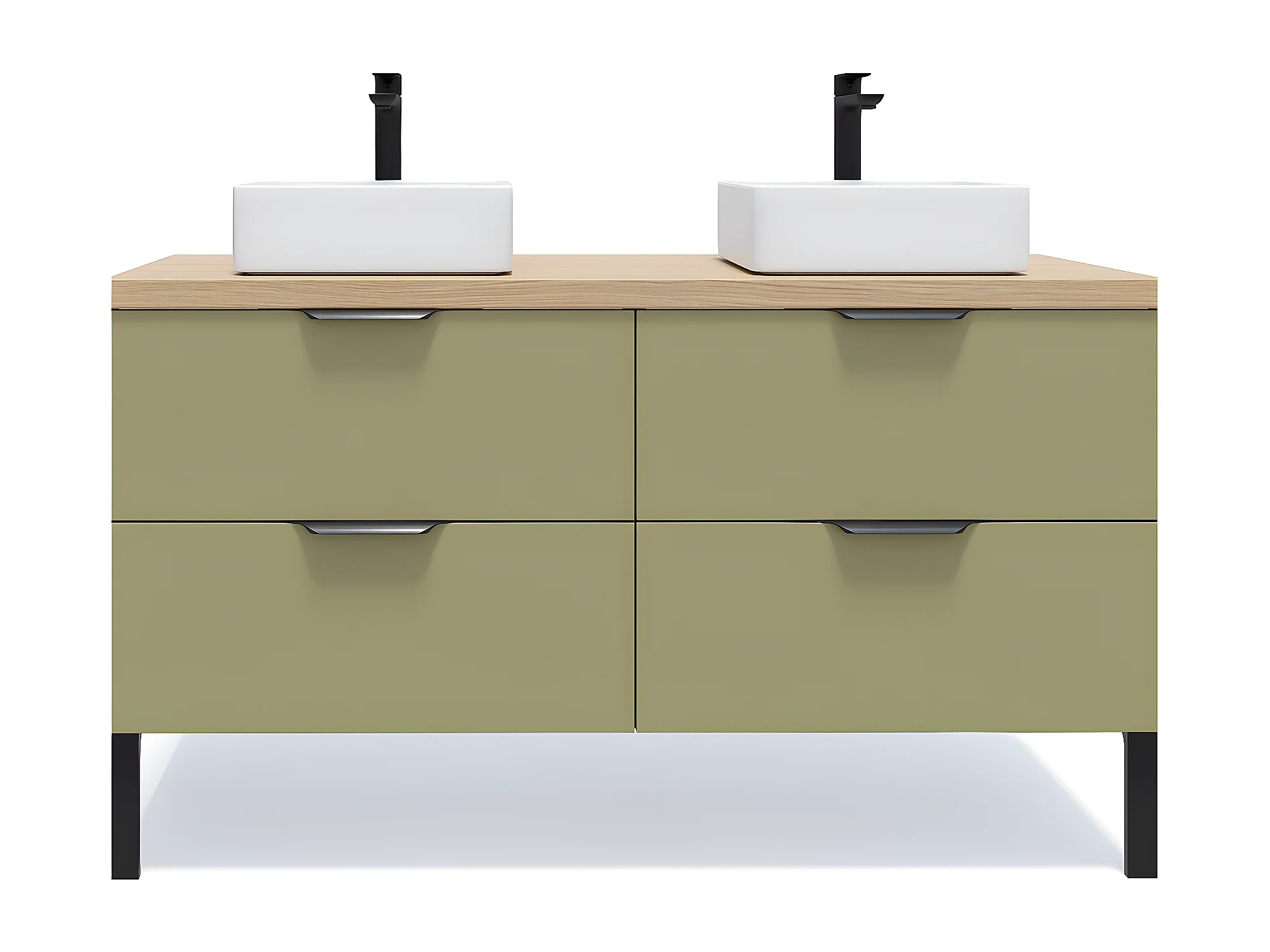 Meuble de salle de bain suspendu 2 vasques à poser 140cm 4 tiroirs Vert olive - Soho