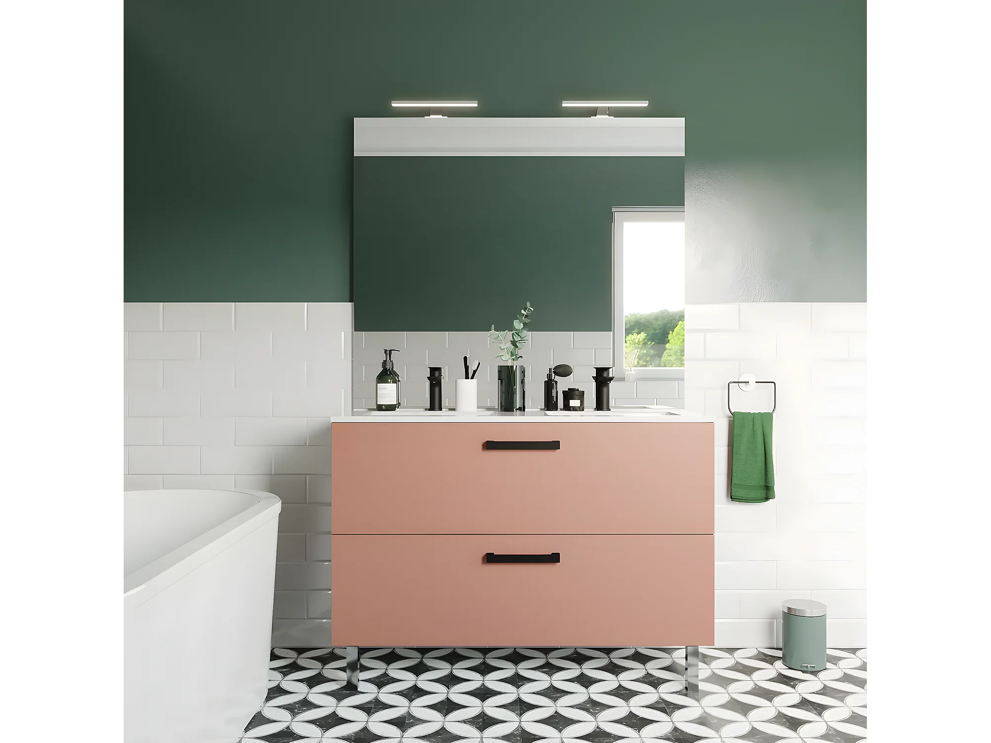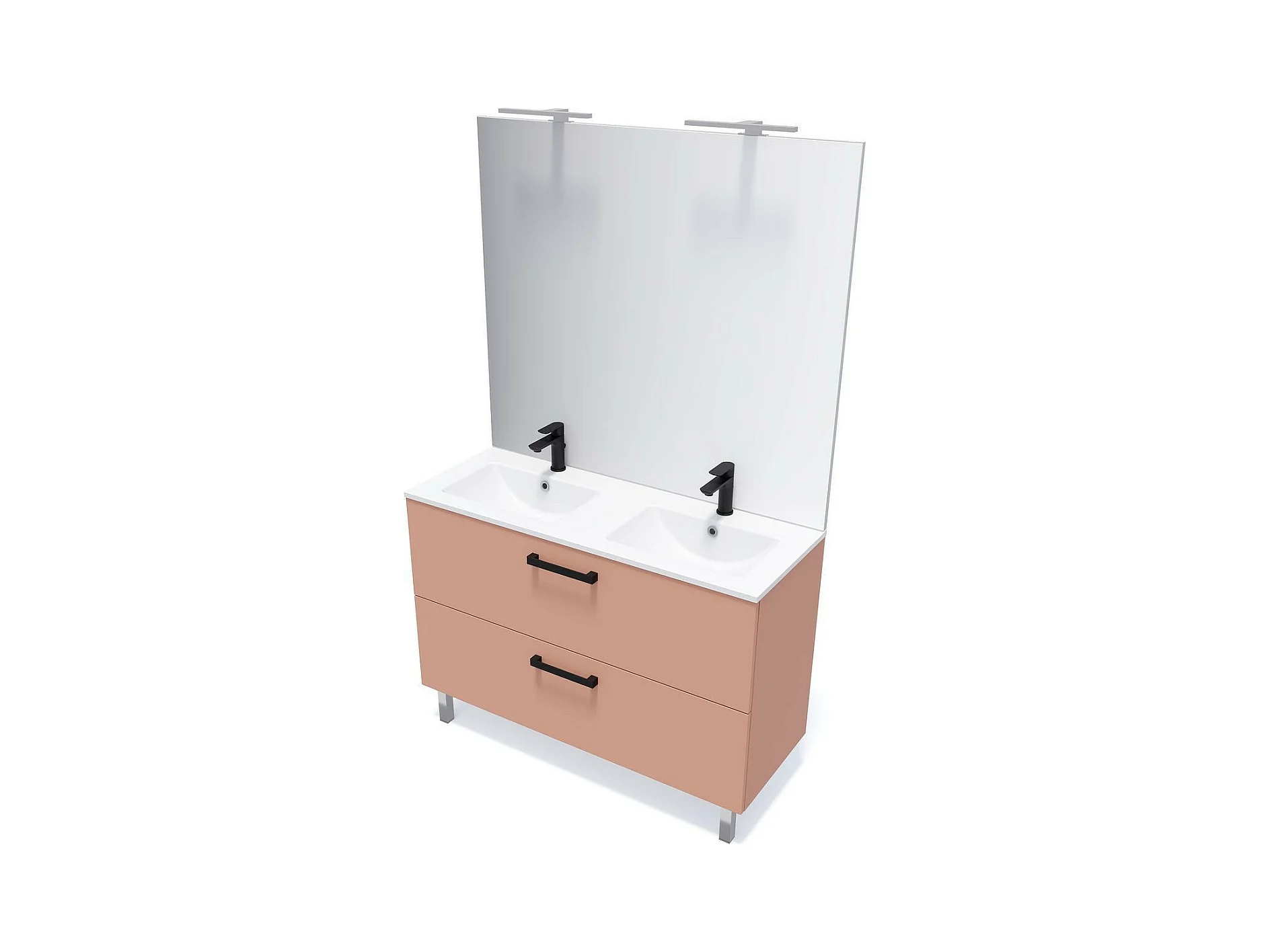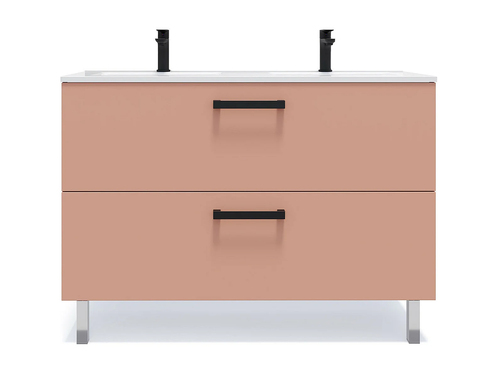 Meuble de salle de bain suspendu avec pieds double vasque intégrée 120cm 2 tiroirs Abricot - Chelsea