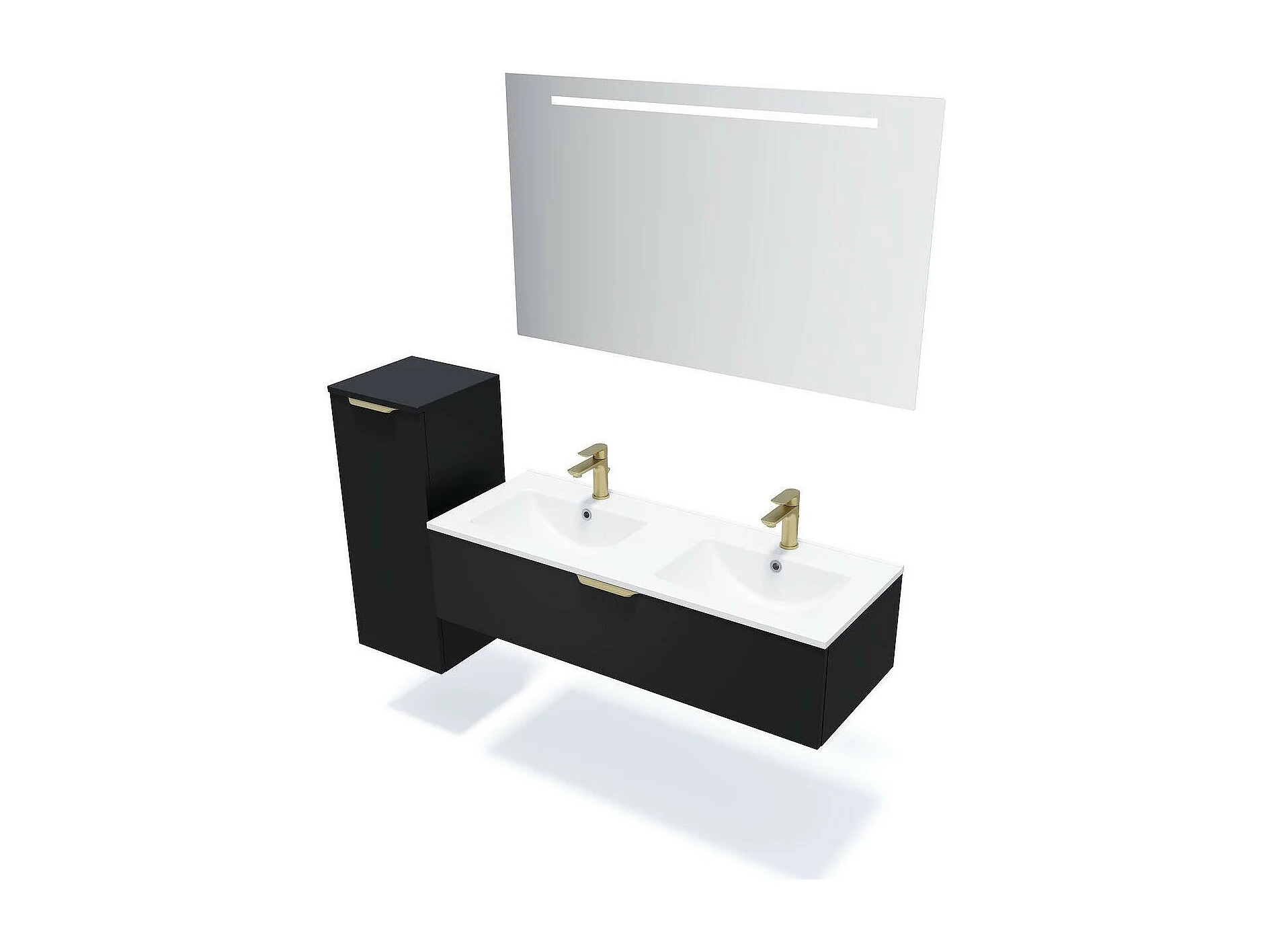 Meuble de salle de bain suspendu double vasque intégrée 120cm 1 tiroir Noir + miroir - Venice