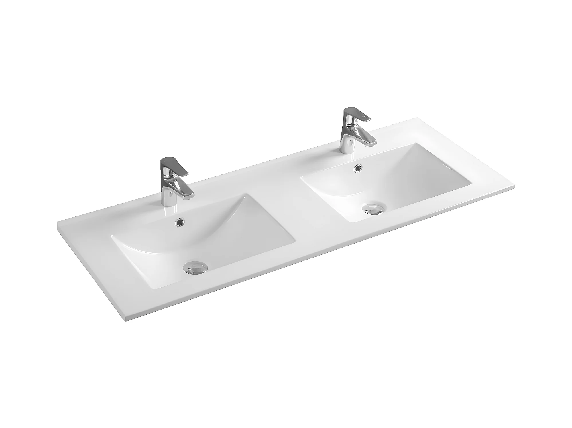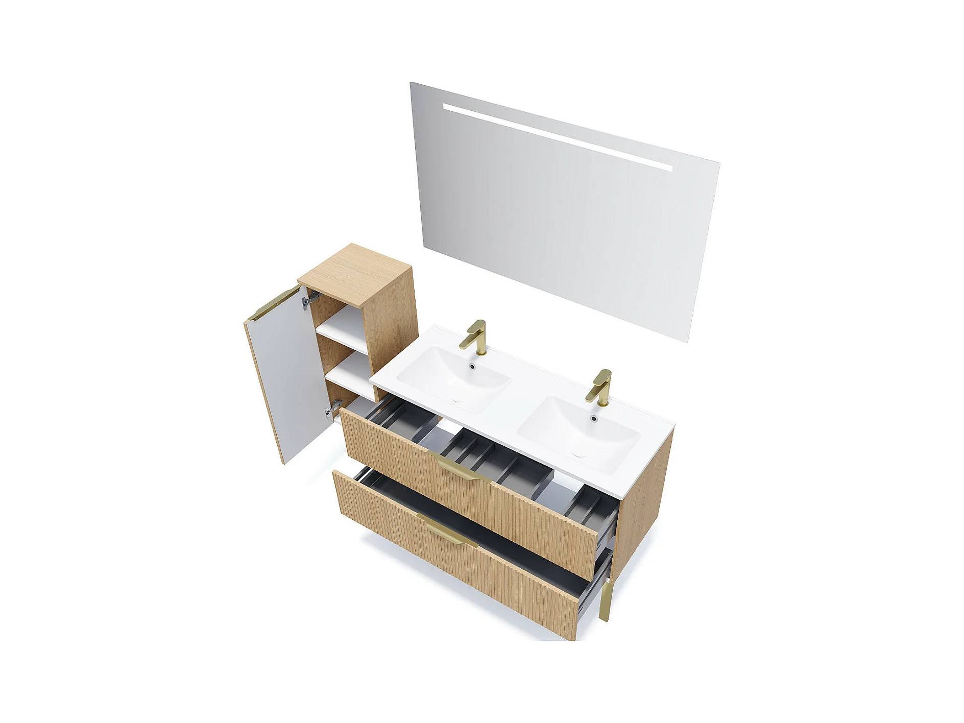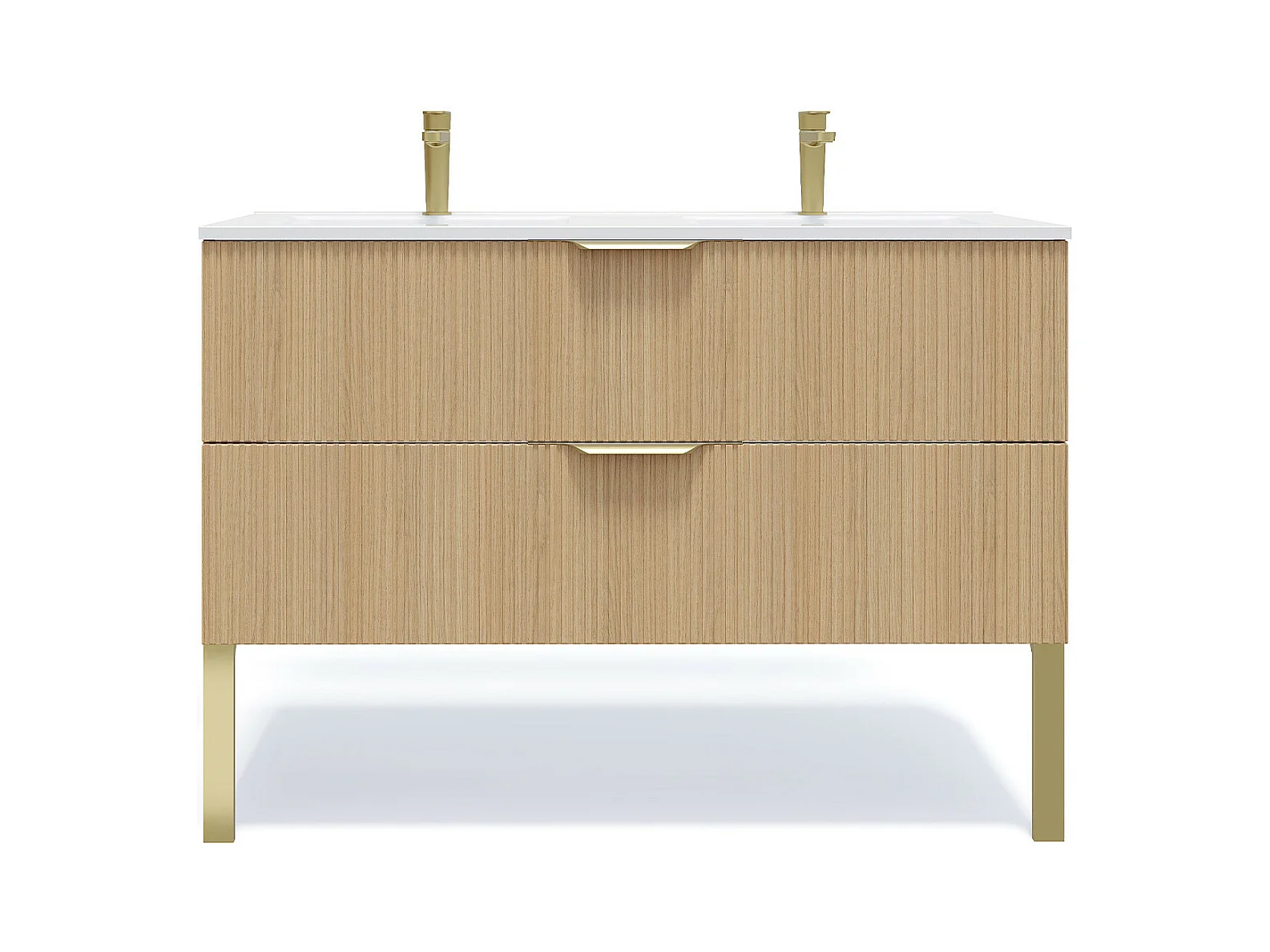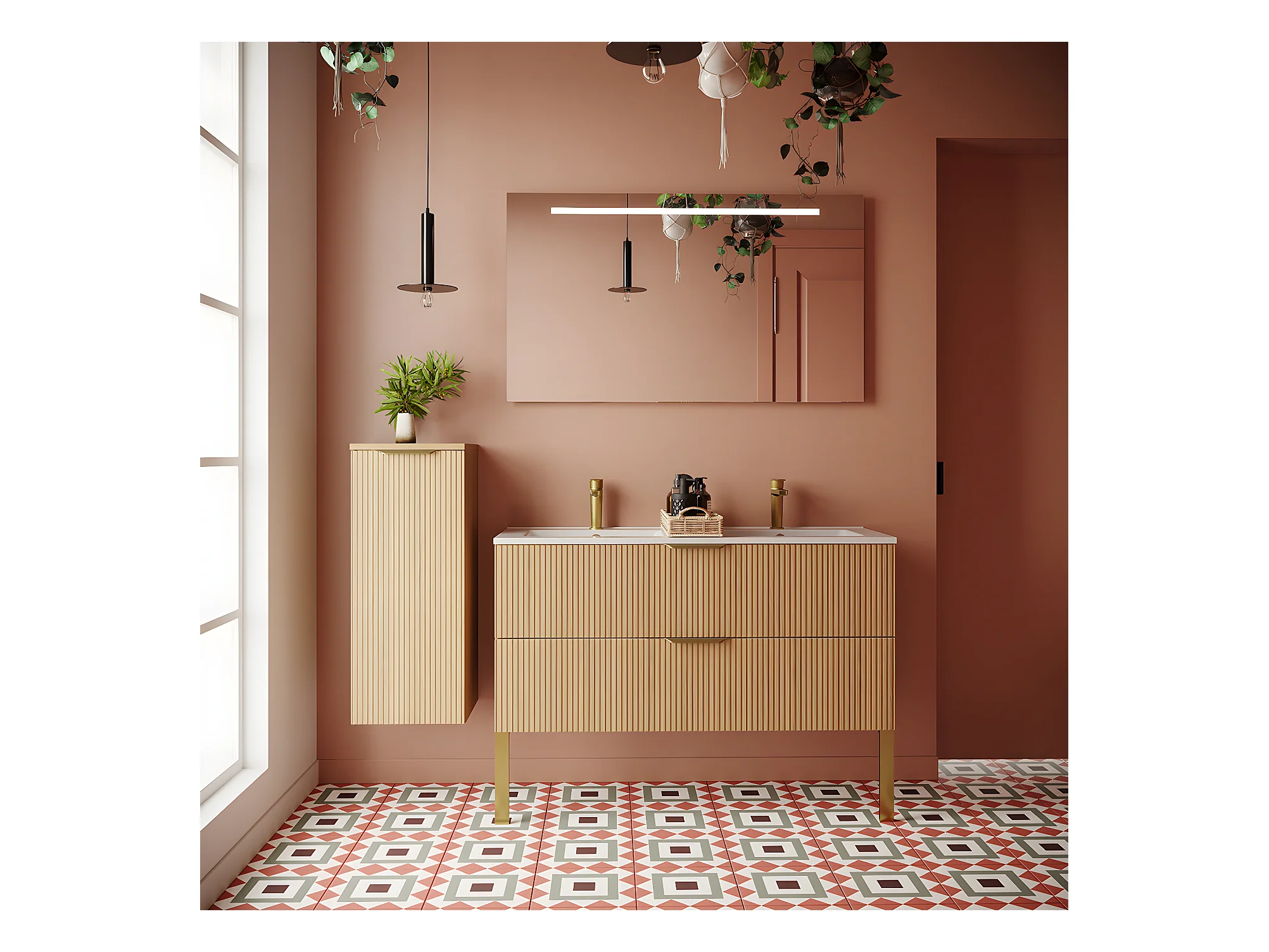 Meuble de salle de bain suspendu double vasque intégrée 120cm 2 tiroirs Chêne cannelé - Venice