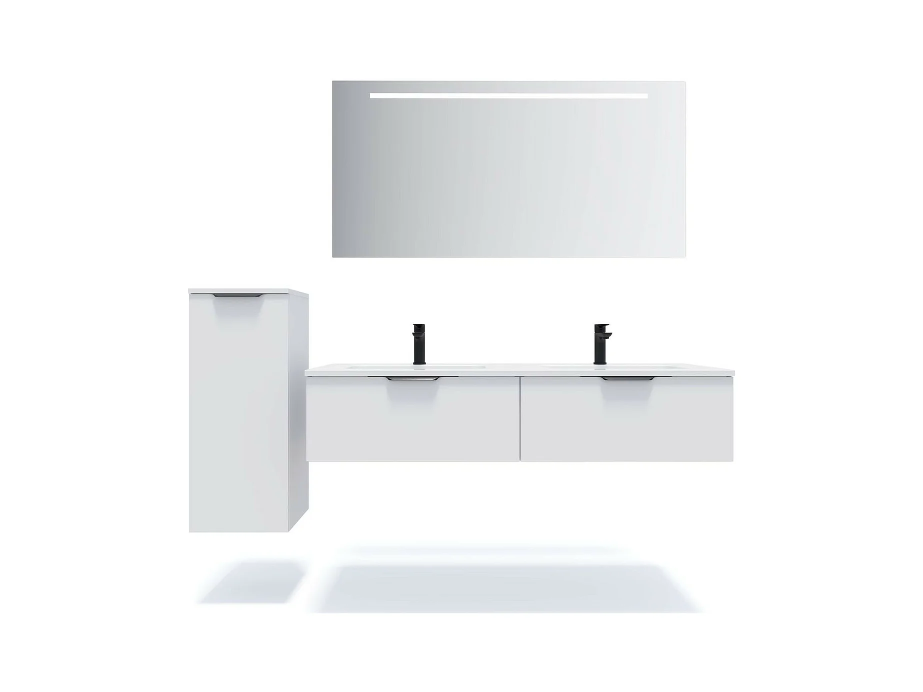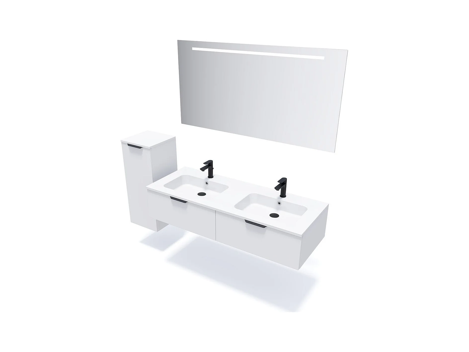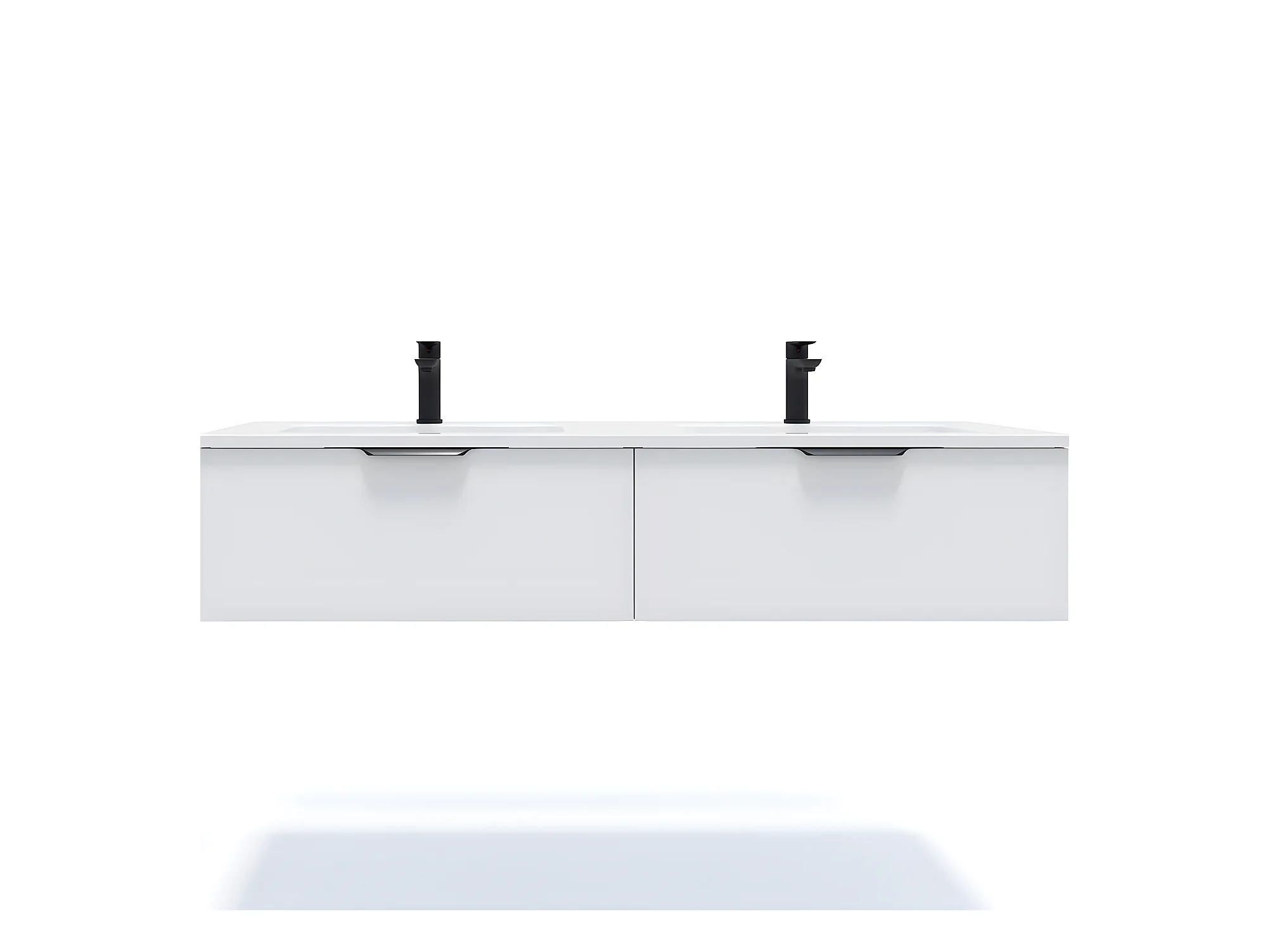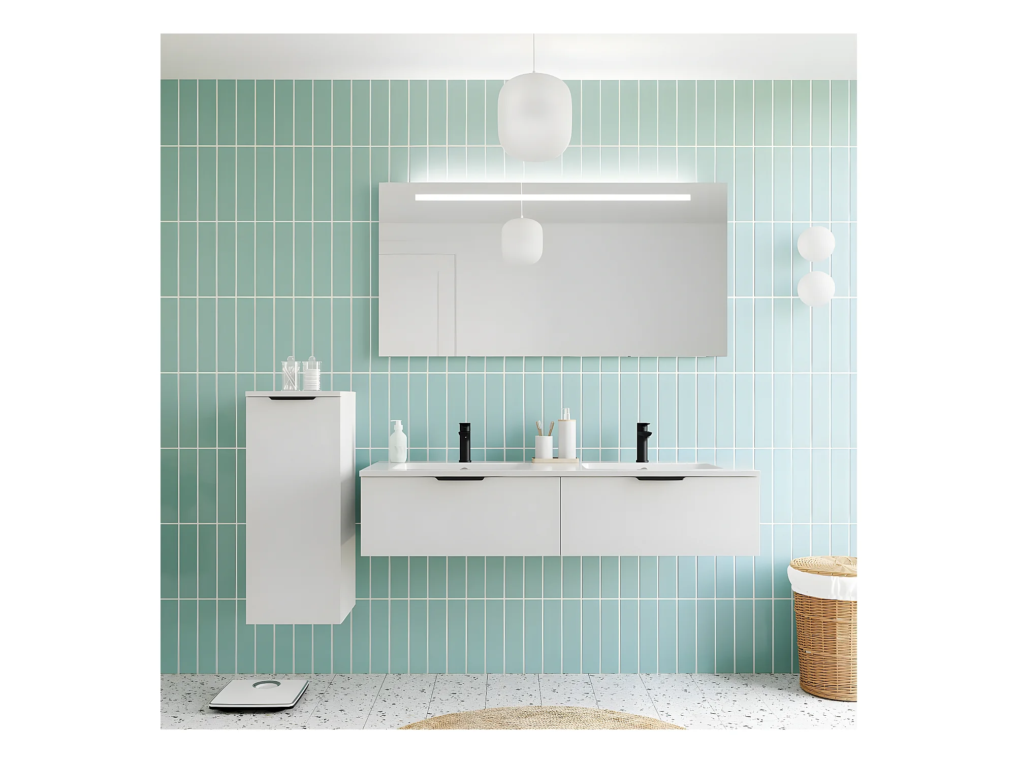 Meuble de salle de bain suspendu double vasque intégrée 140cm 2 tiroirs Blanc - Soho