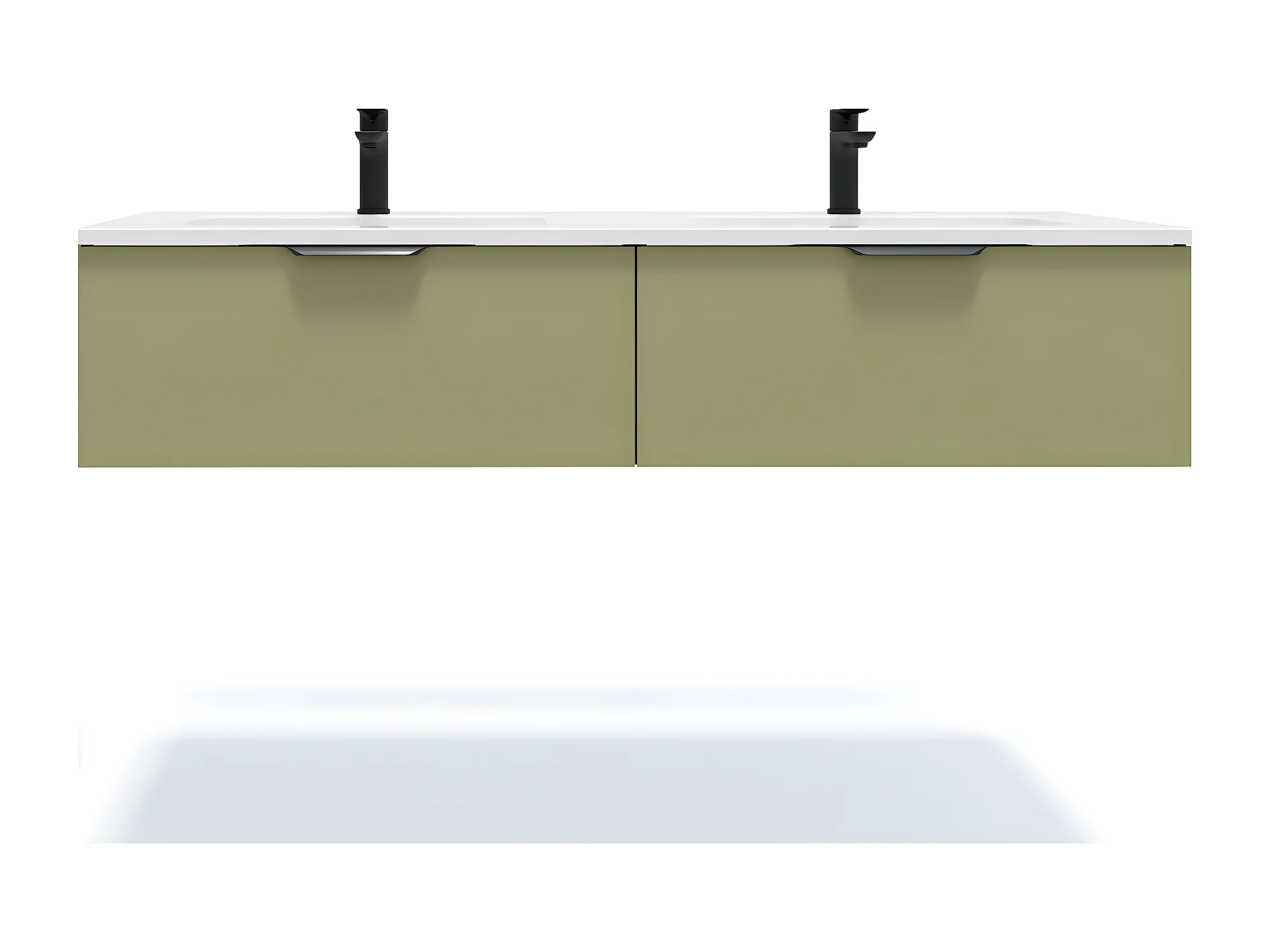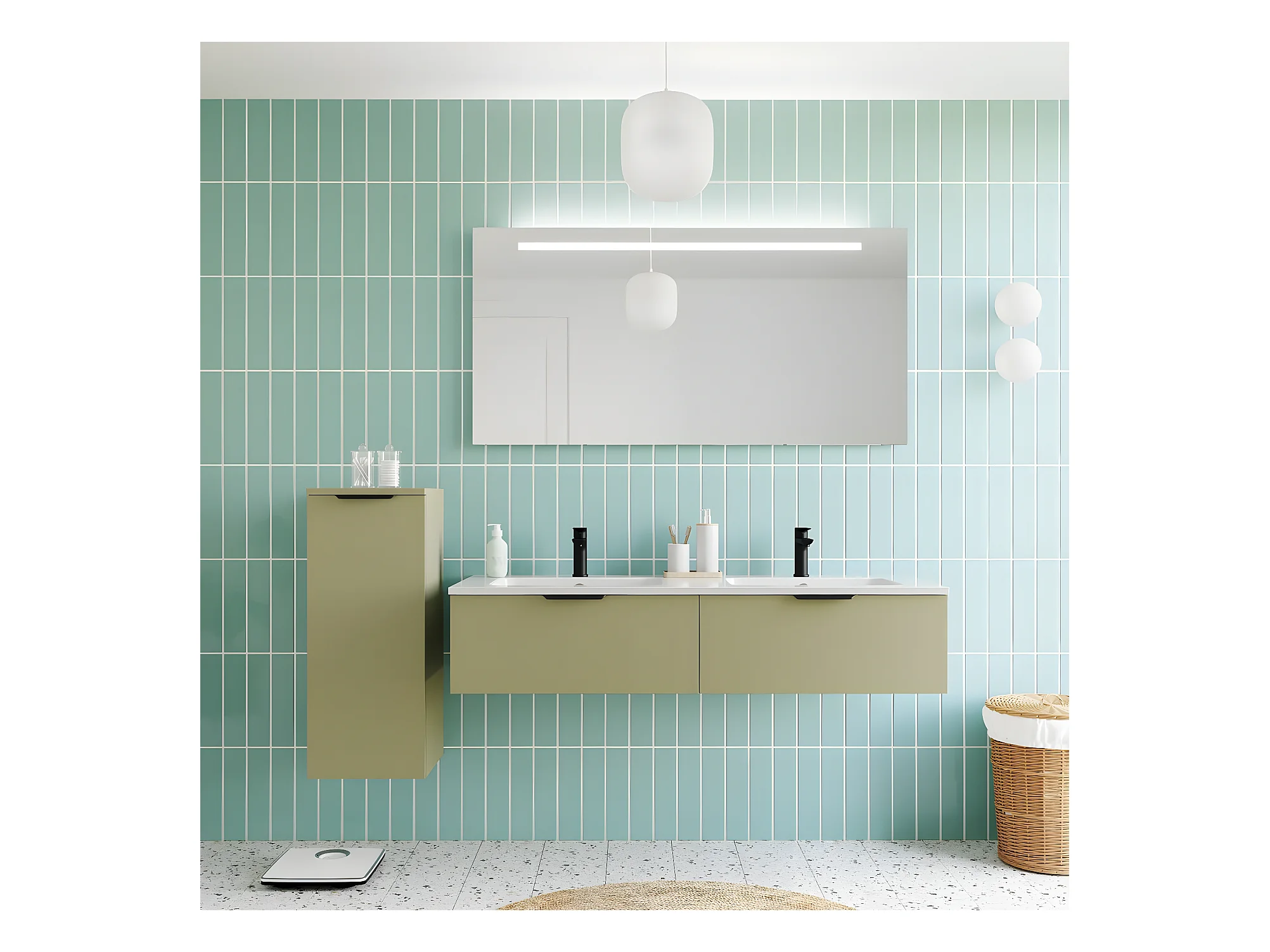 Meuble de salle de bain suspendu double vasque intégrée 140cm 2 tiroirs Vert olive - Soho