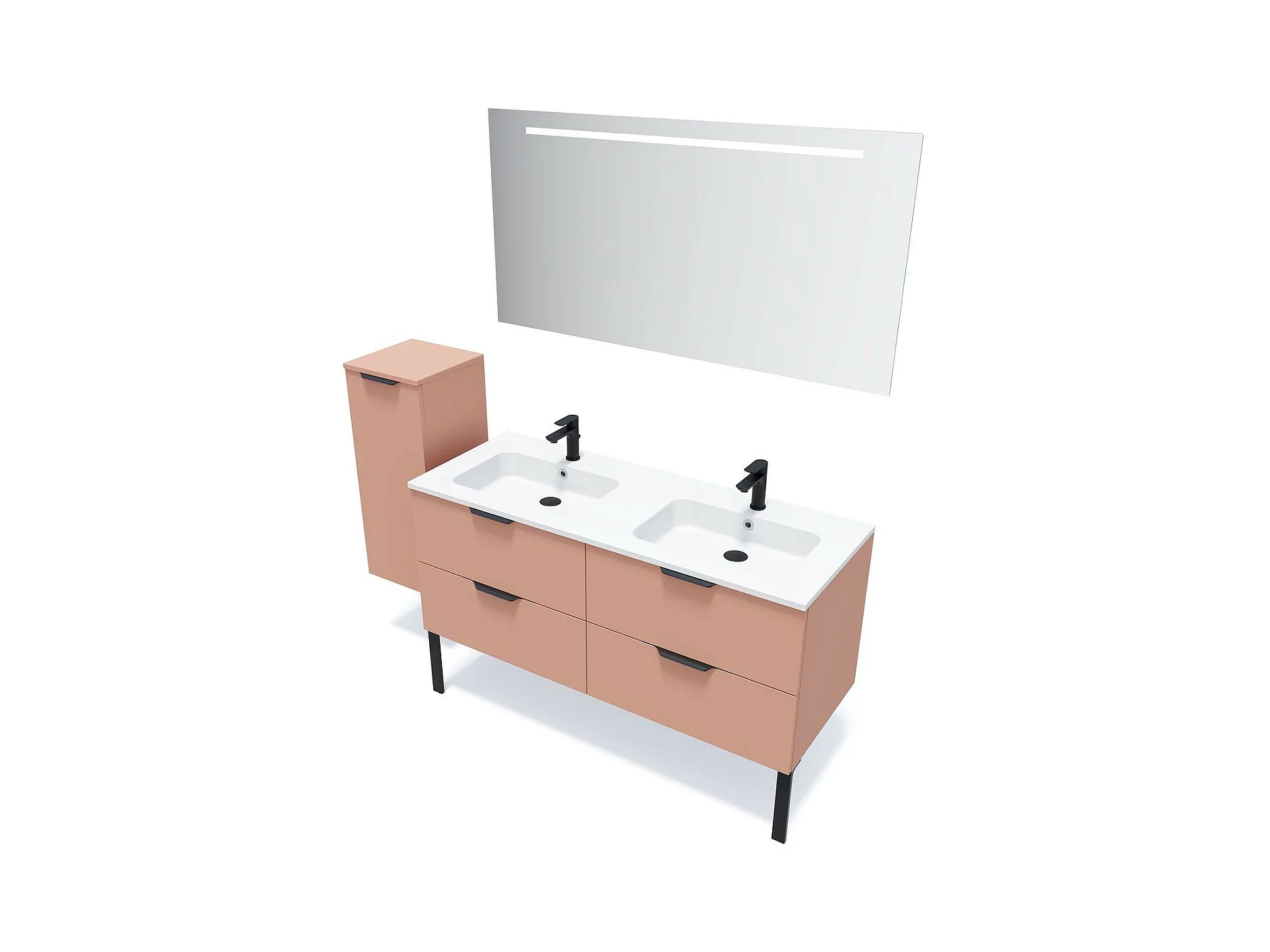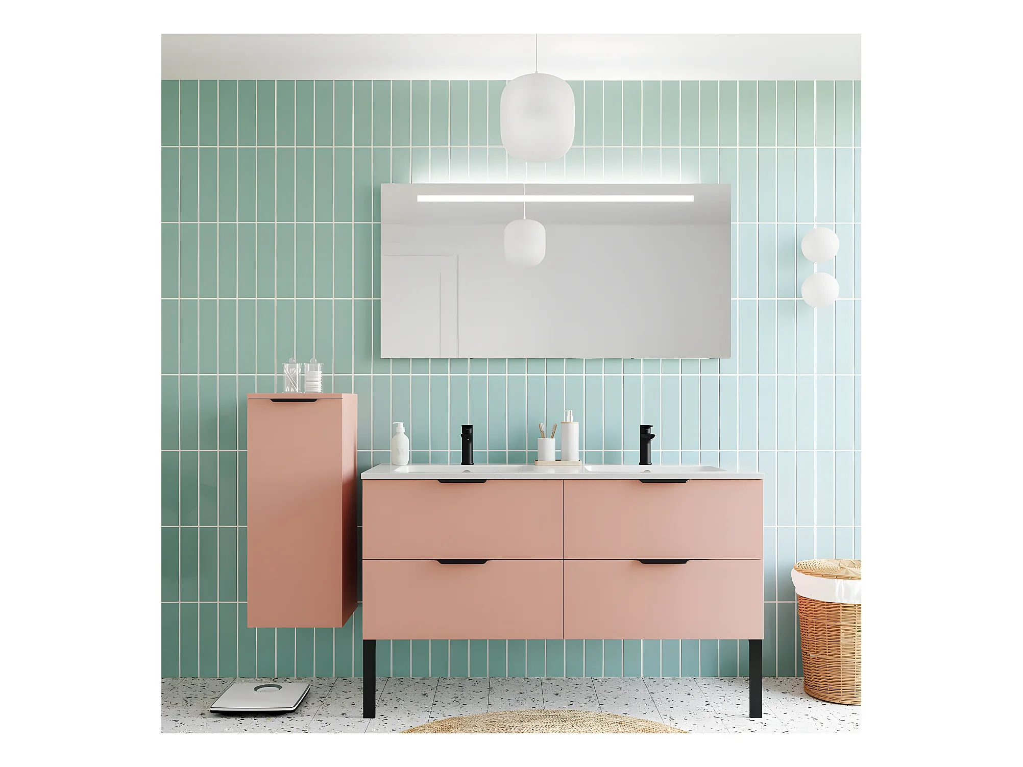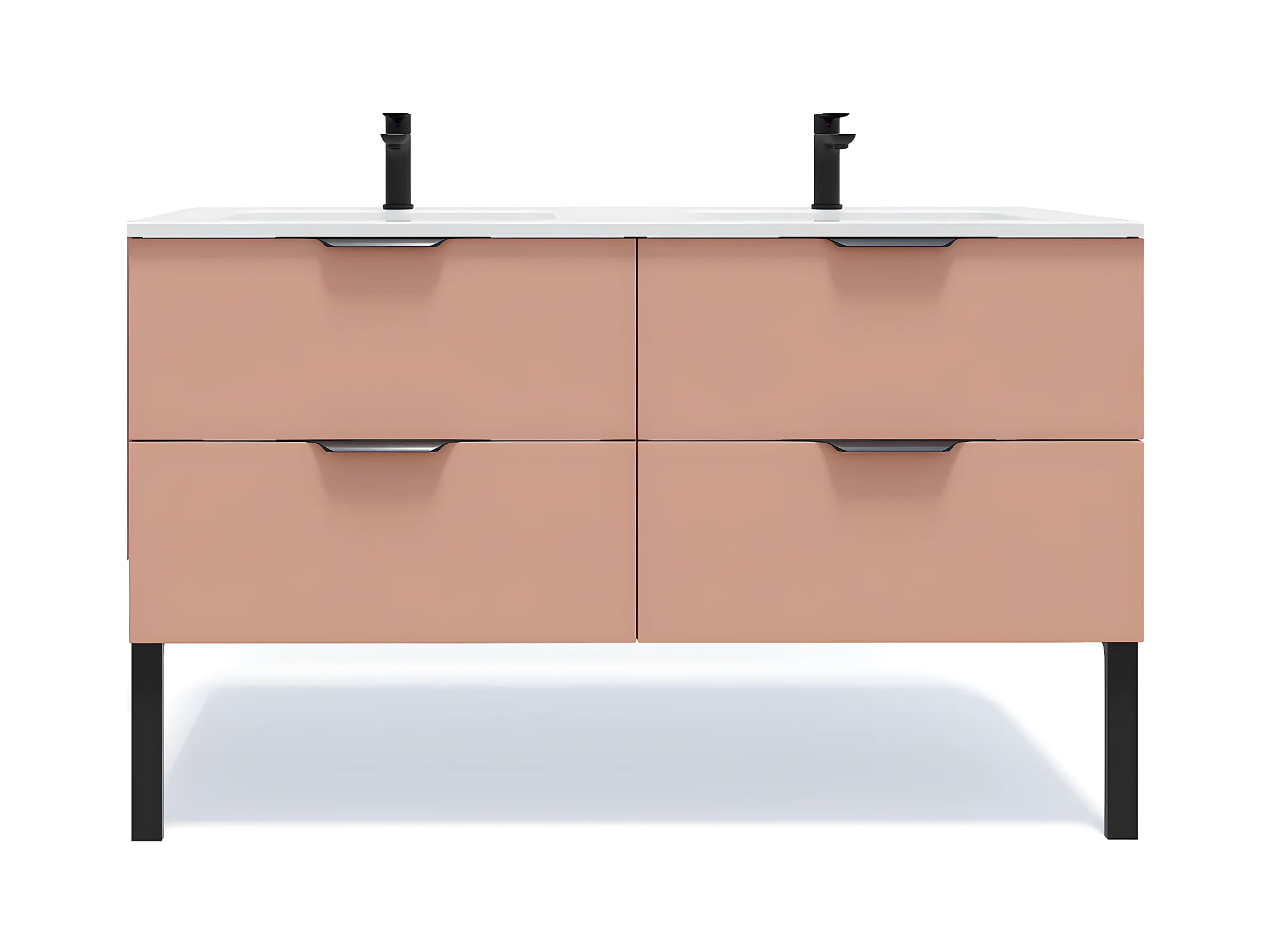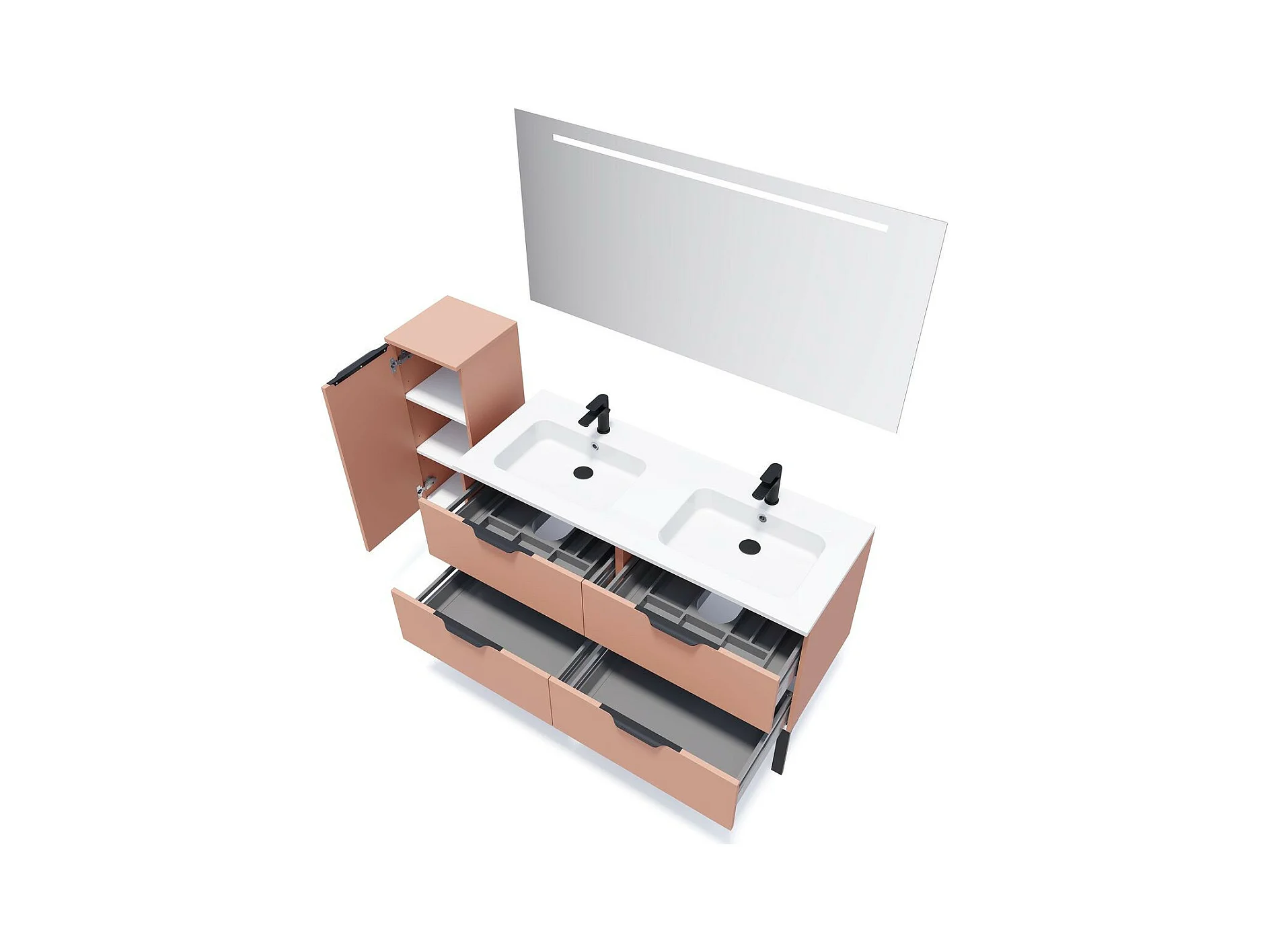 Meuble de salle de bain suspendu double vasque intégrée 140cm 4 tiroirs Abricot - Soho