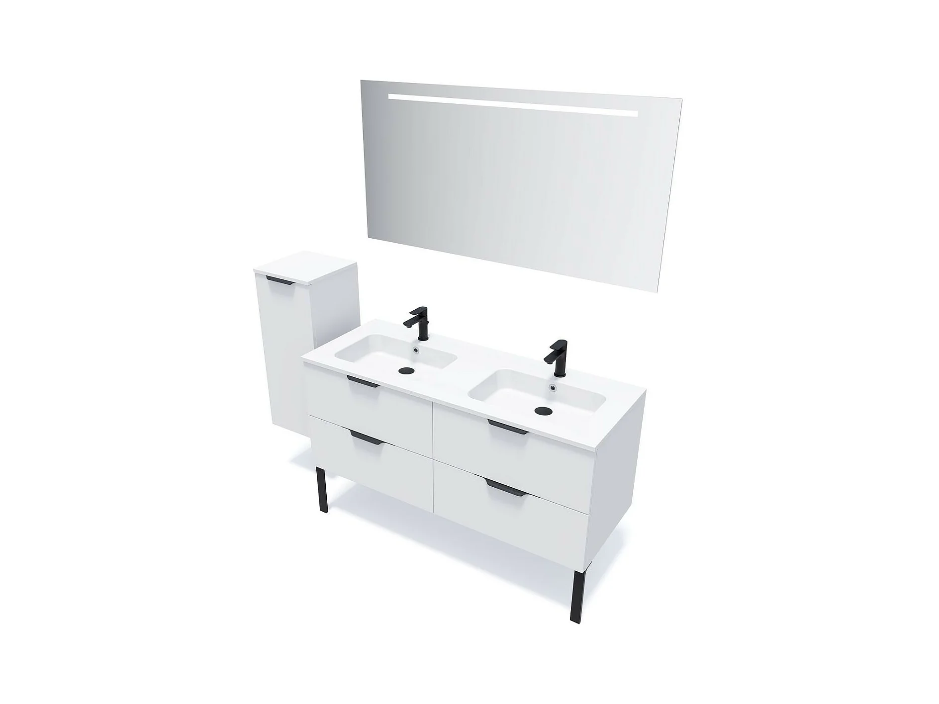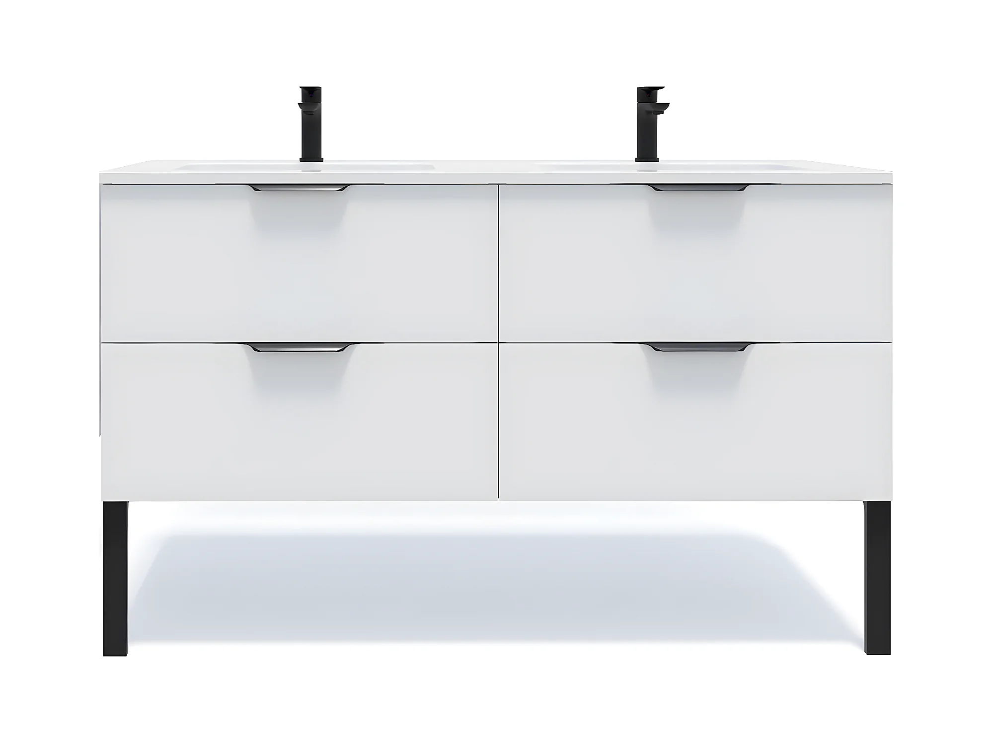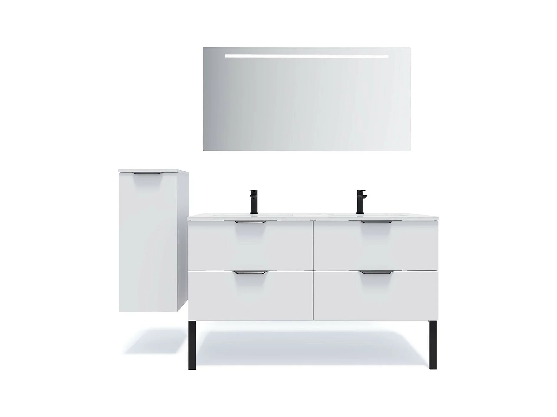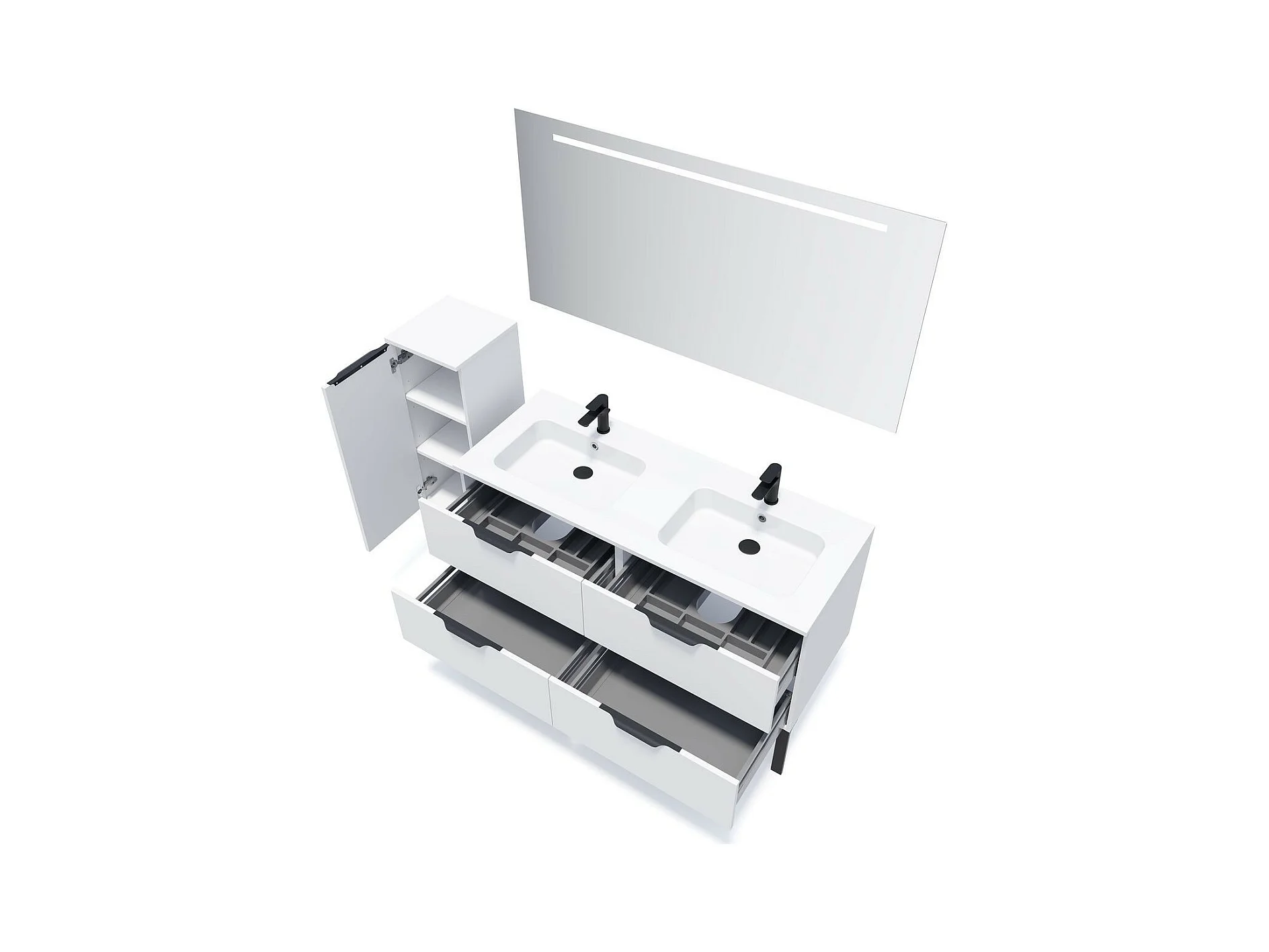 Meuble de salle de bain suspendu double vasque intégrée 140cm 4 tiroirs Blanc - Soho