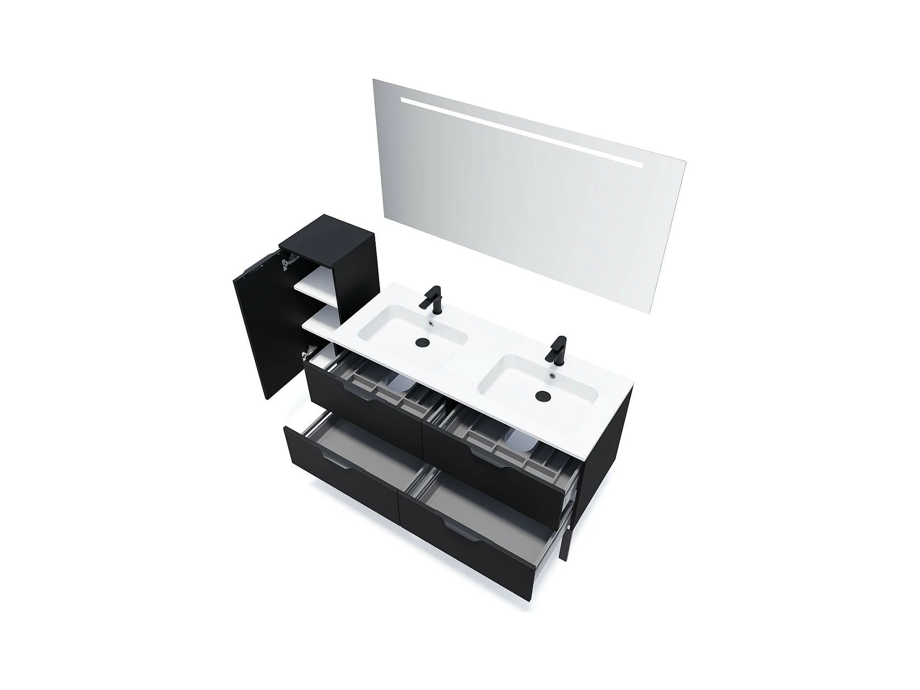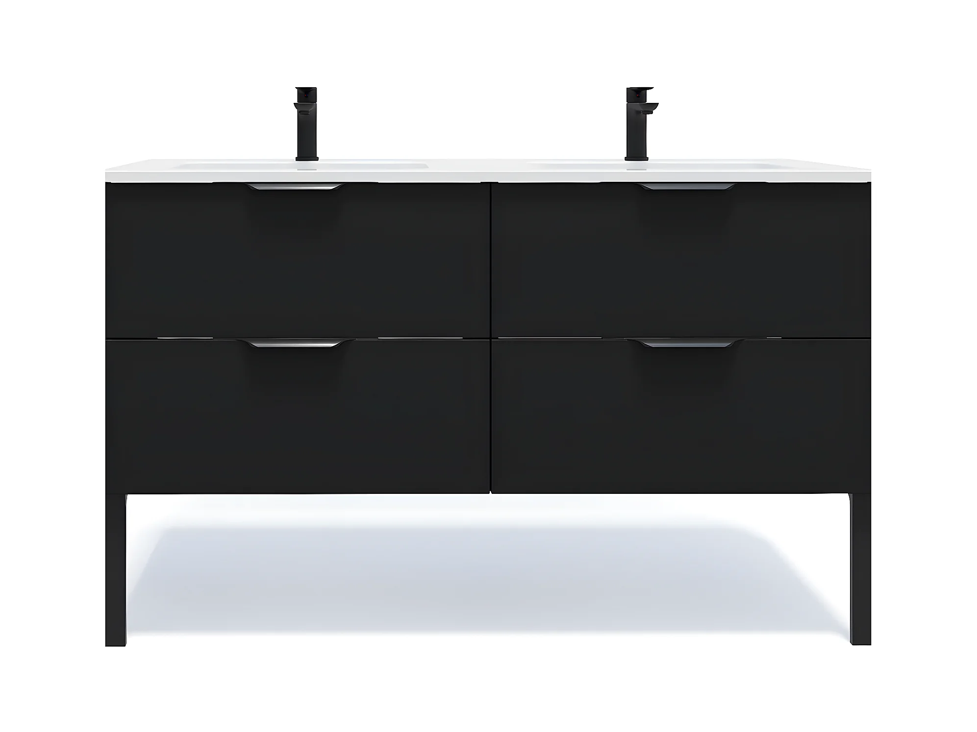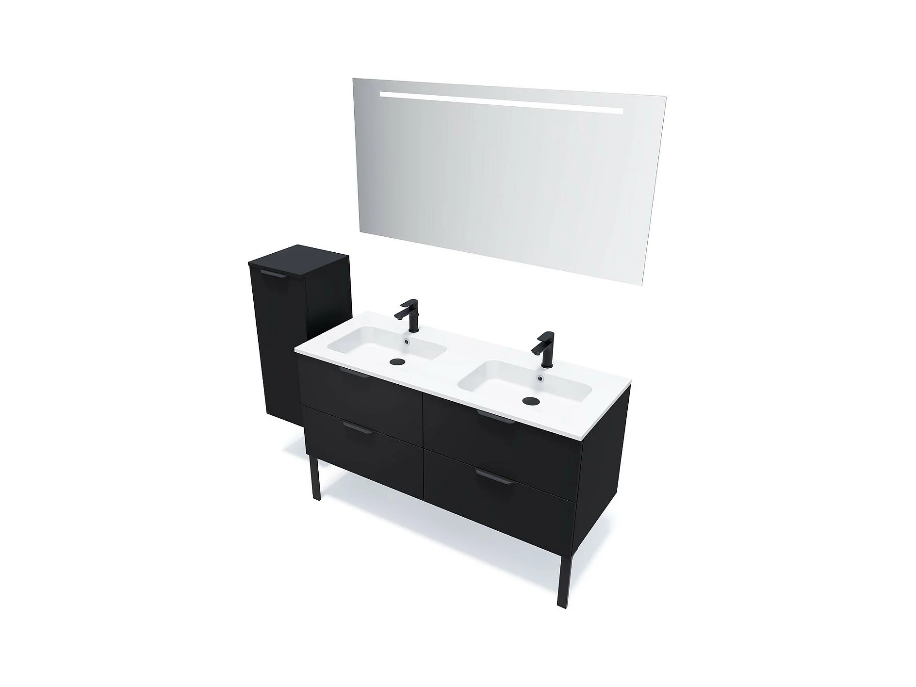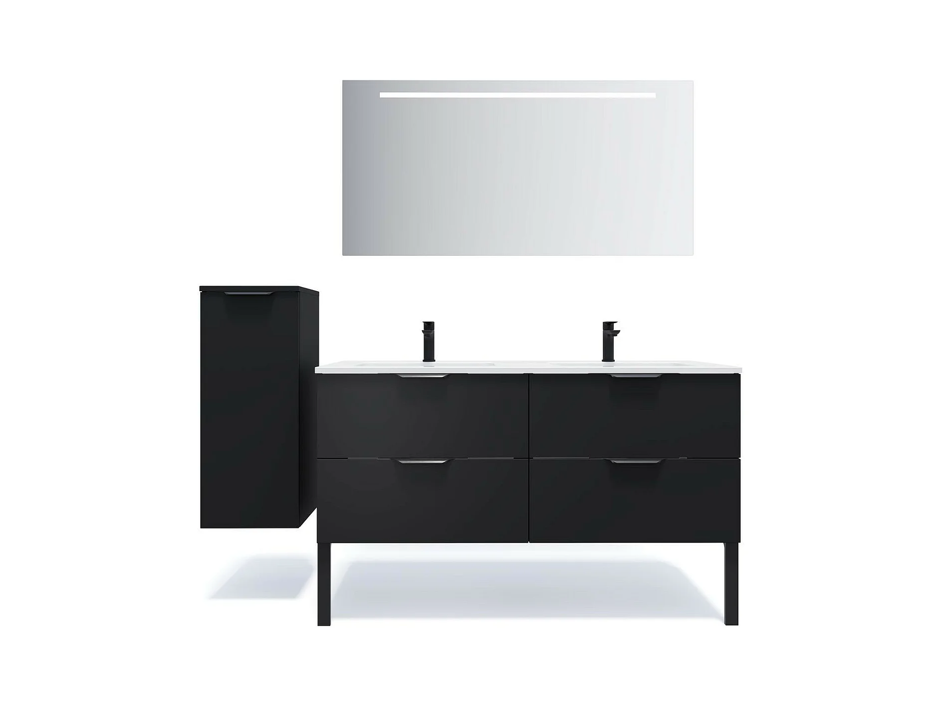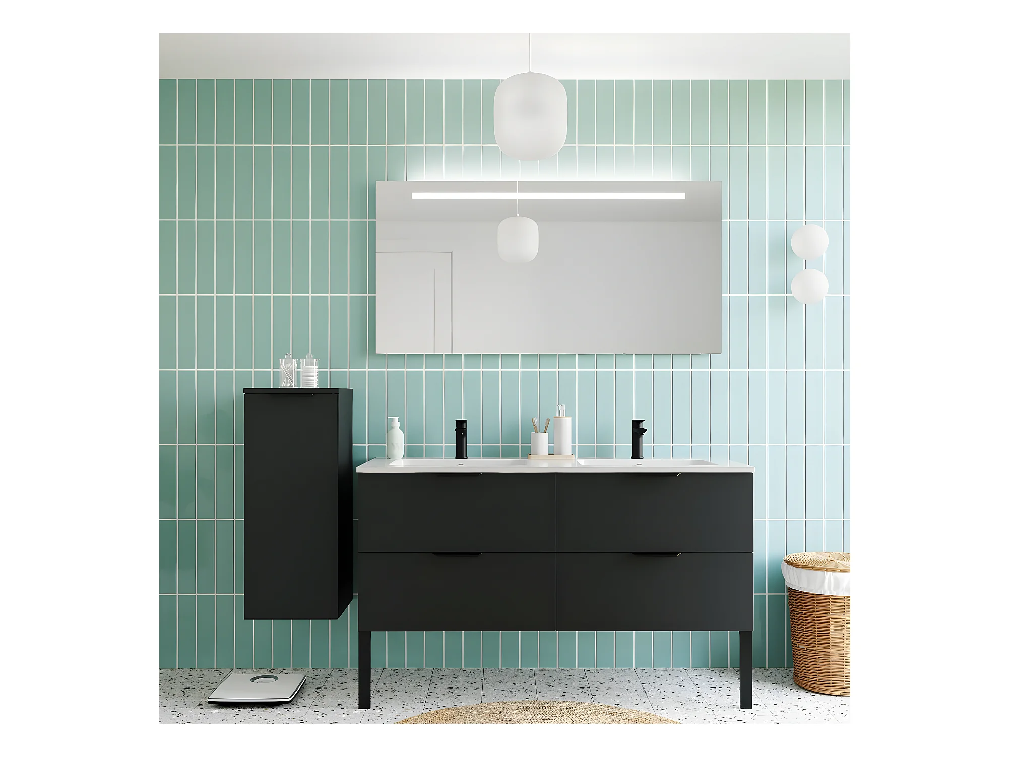 Meuble de salle de bain suspendu double vasque intégrée 140cm 4 tiroirs Noir - Soho