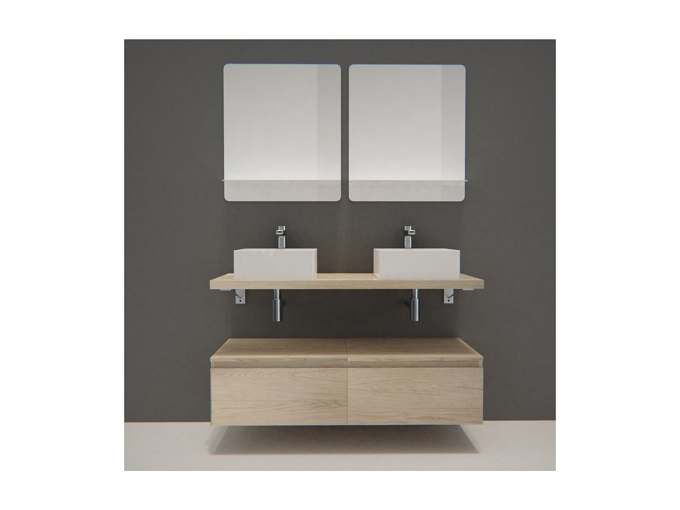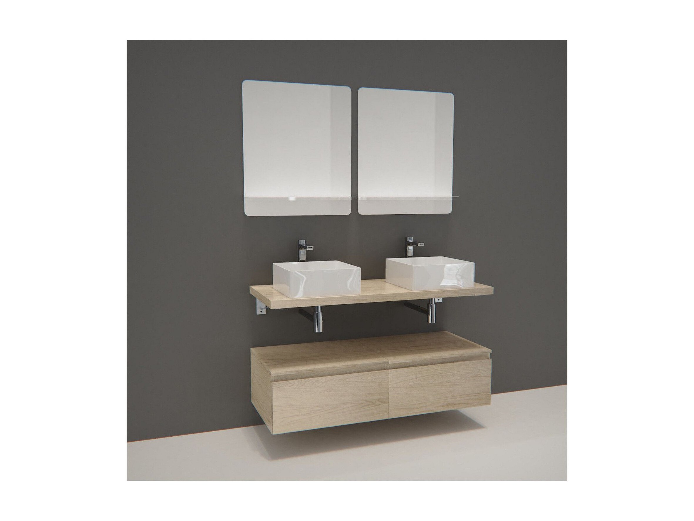 Meuble de Salle de Bain WILL - Plan suspendu 120 cm + Equerres + Meubles tiroir + Vasques + Miroirs