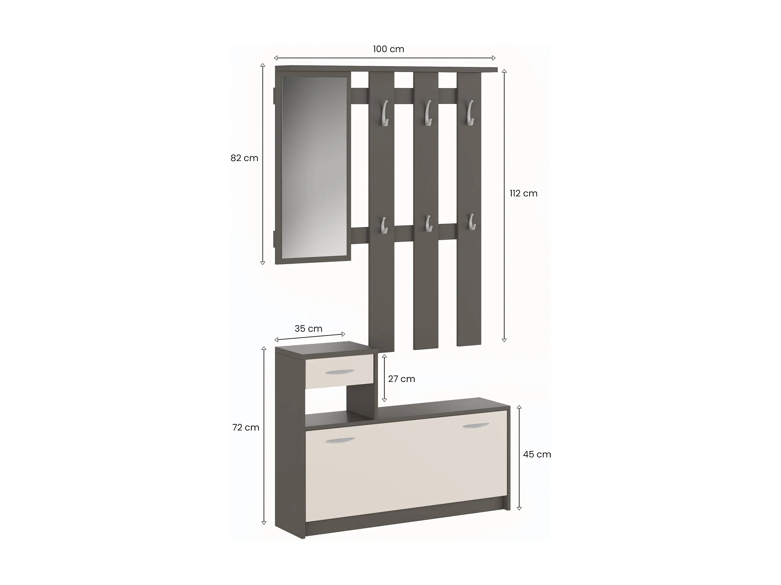 Meuble d'entrée Clint, Entrée moderne, Armoire avec étagère à chaussures, Armoire polyvalente avec miroir et cintre, 100x25h180 cm, Anthracite et Blanc