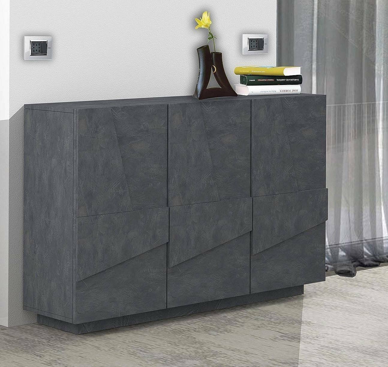 Buffet Dcircat, Buffet de salon multifonction, Buffet de salon 3 portes, 100% Made in Italy, 121x38h86 cm, Ardoise