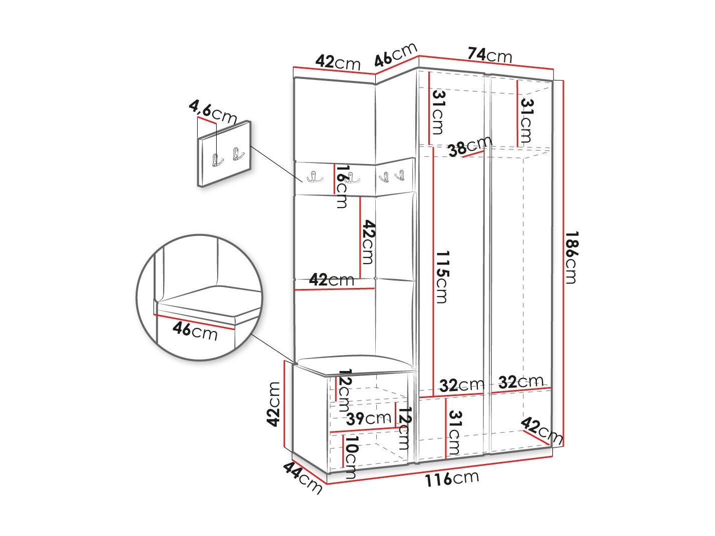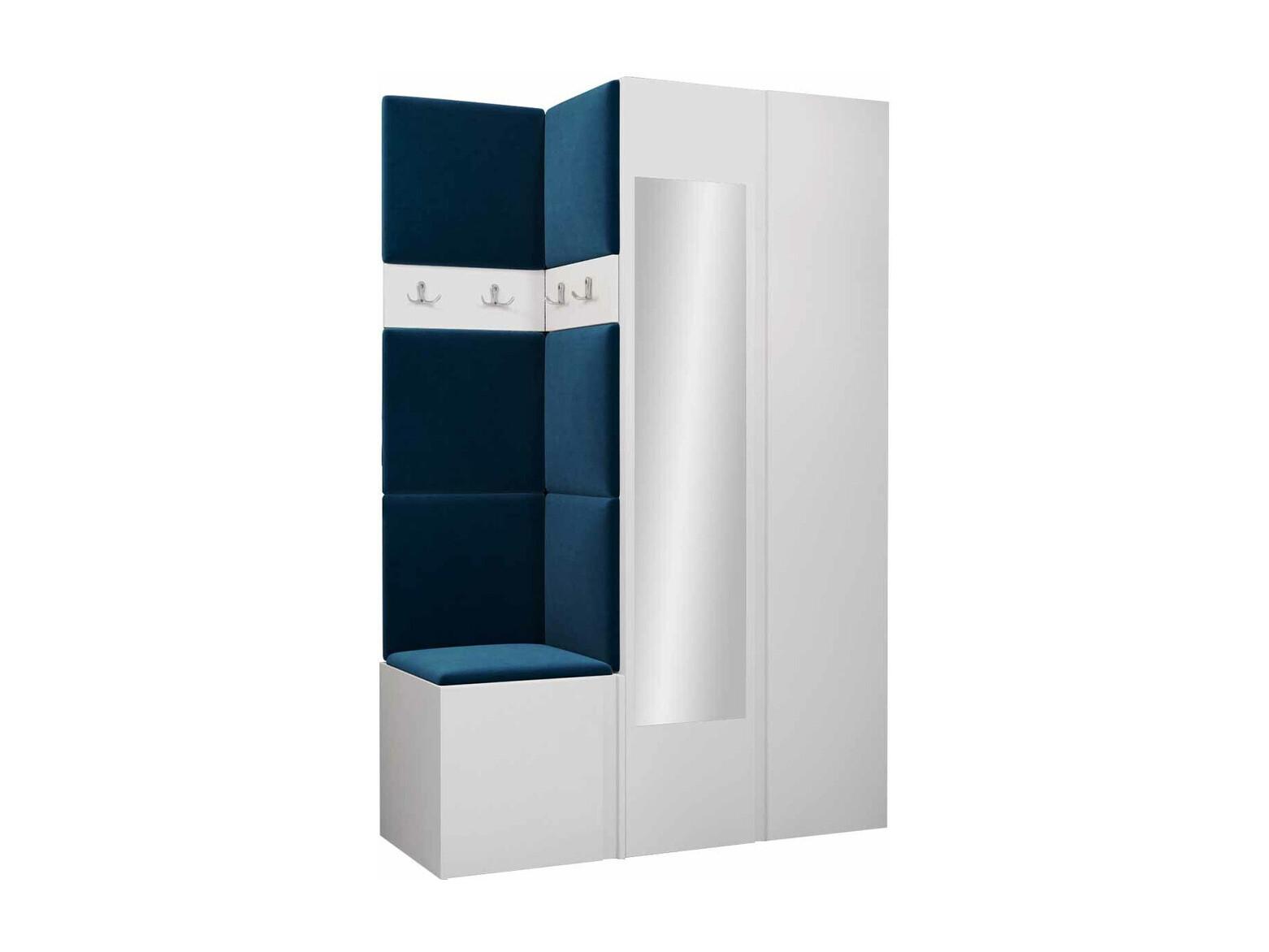 Meuble d'entrée Hartford 350, 186x116x44cm, Miroir, Blanc, Stratifié|Tapisserie
