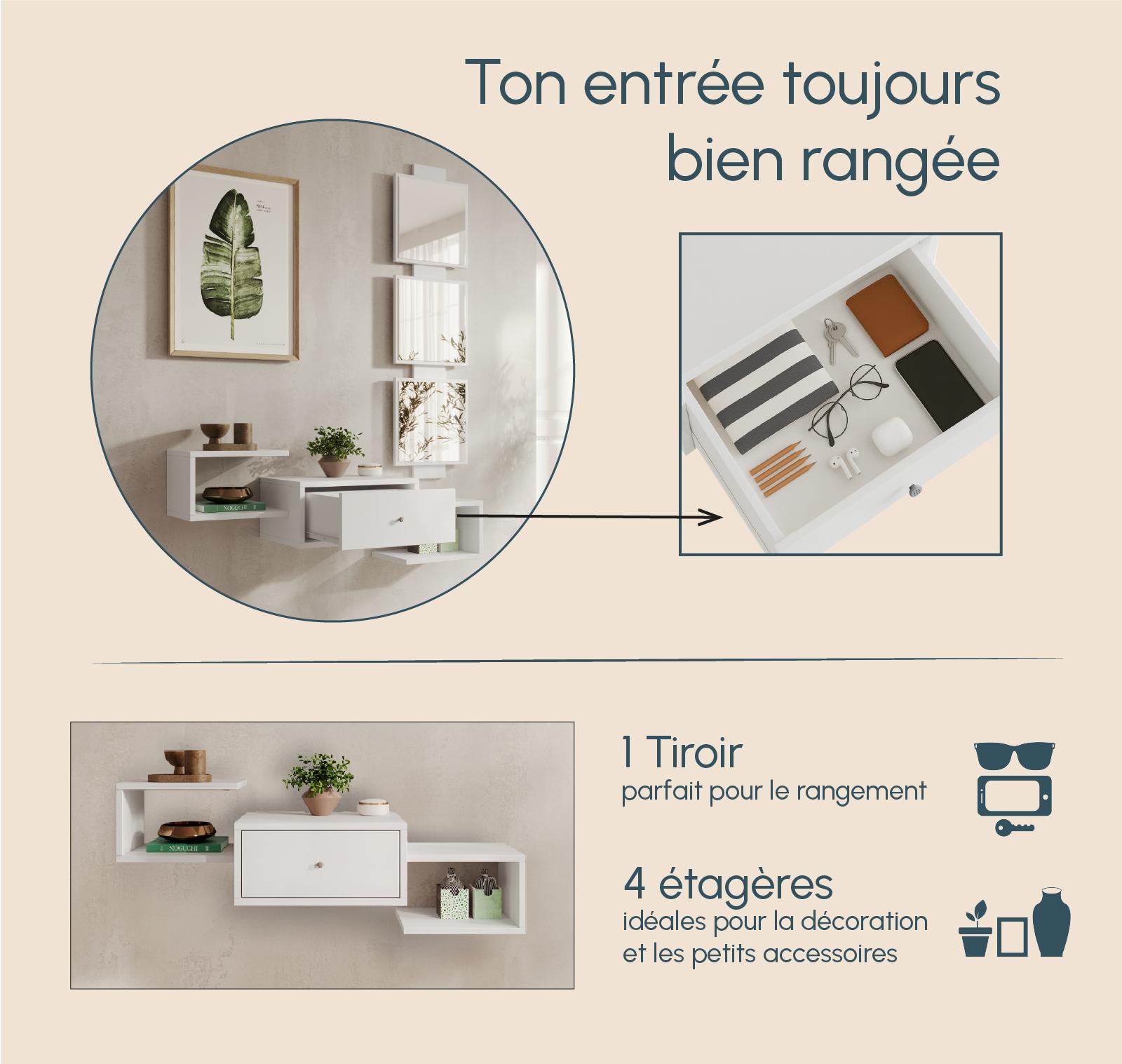 Meuble d'entrée pour Hall d'entrée Couloir en Blanc 99,5x22x145cm Neo