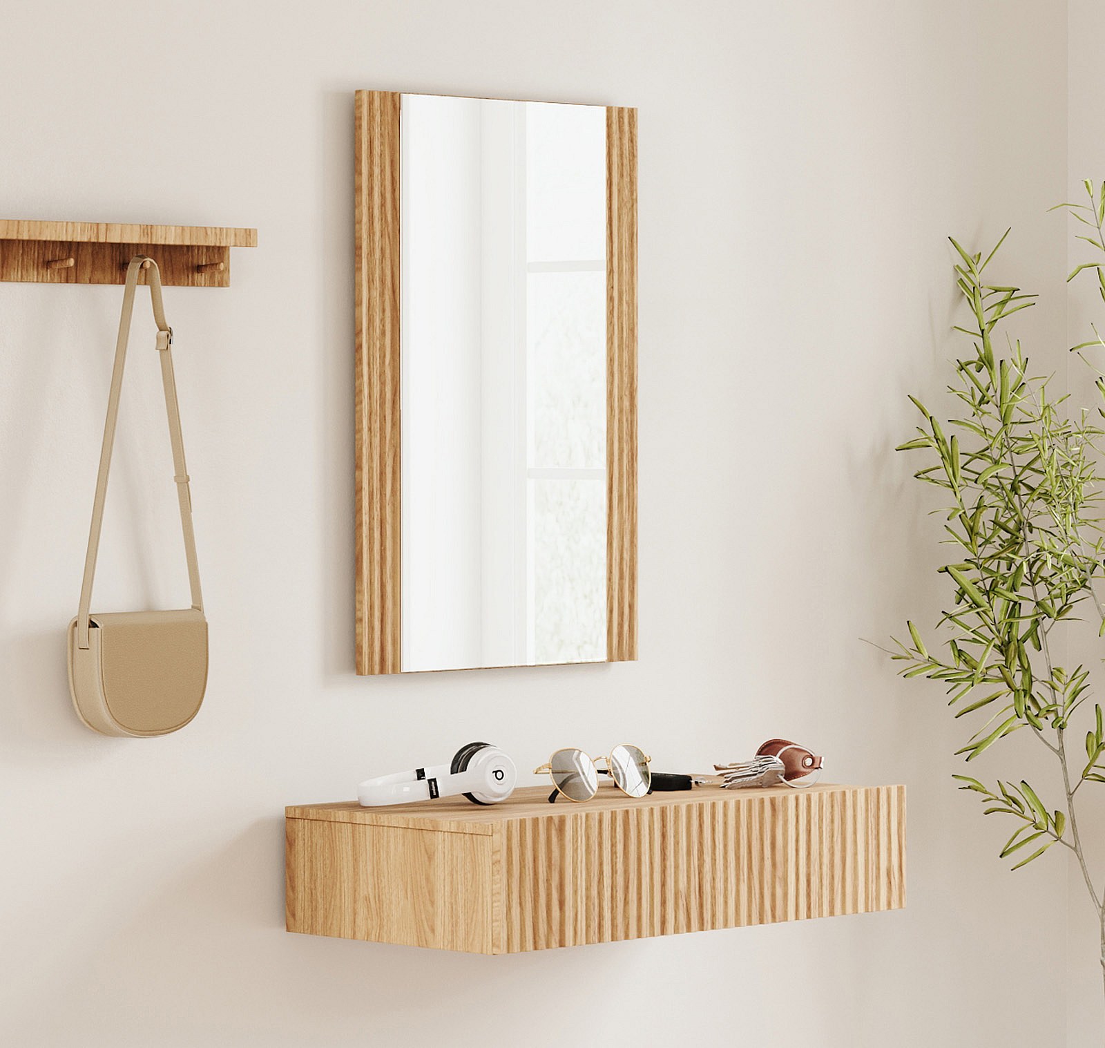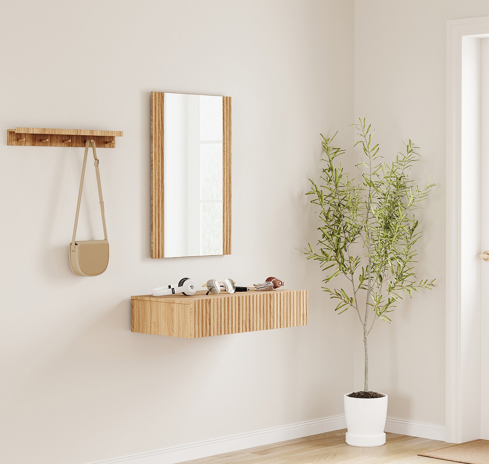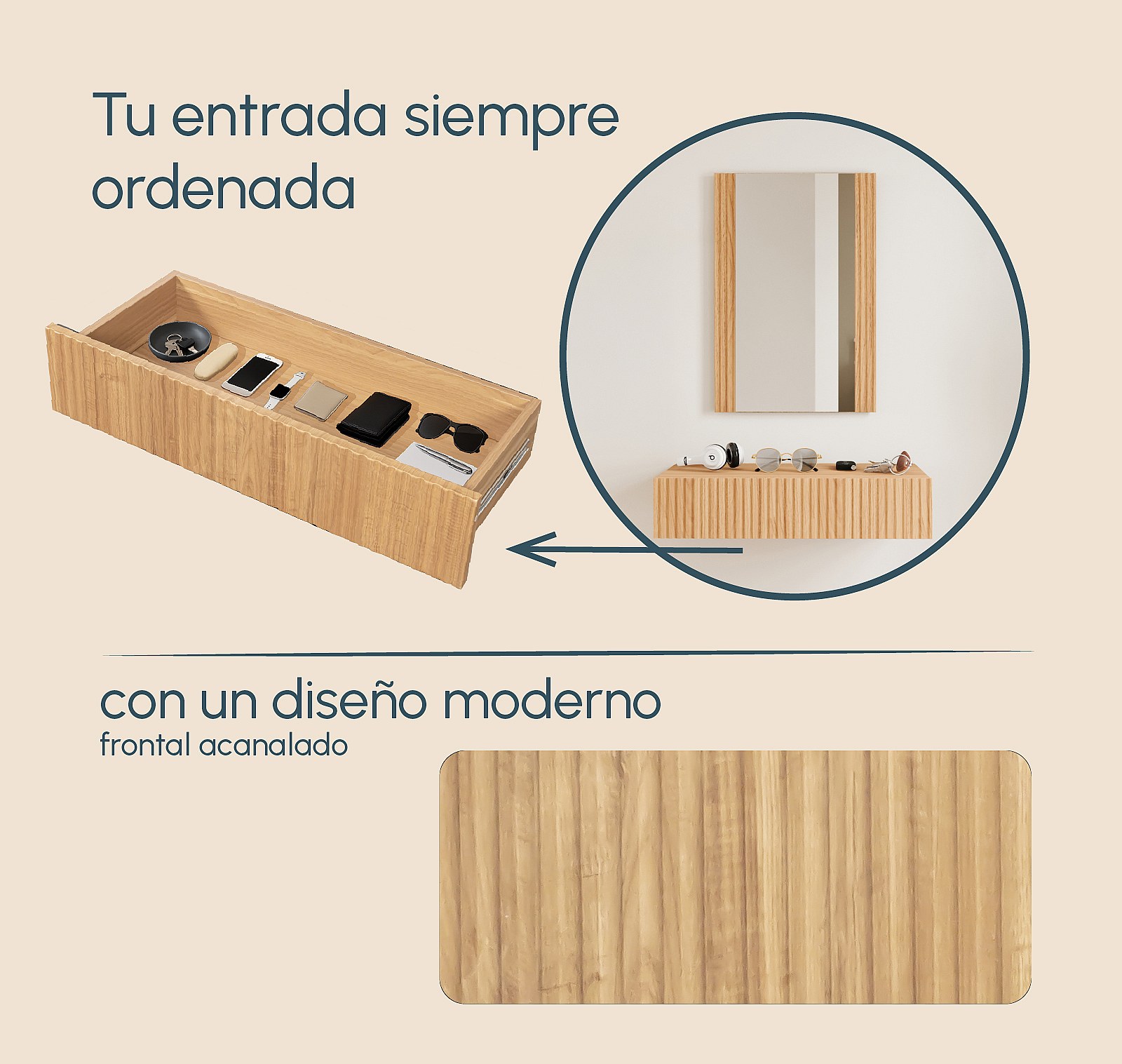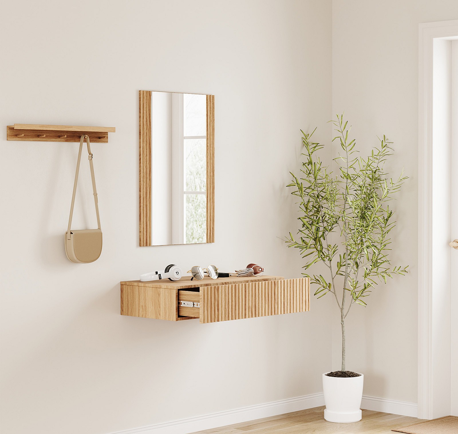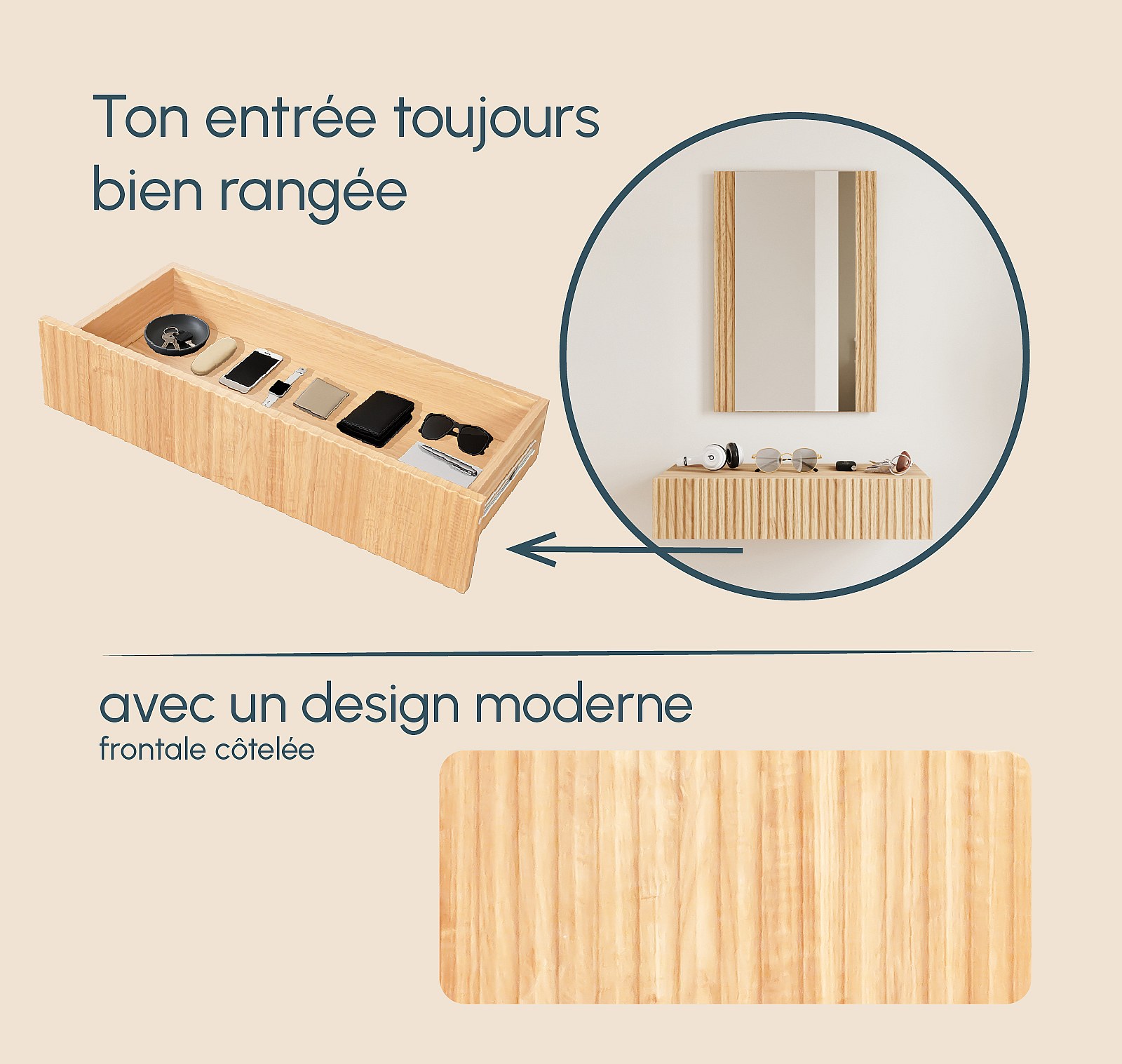 Meuble d'entrée pour Hall d'entrée Couloir en Coleur Chêne Alba 80x42x97cm Amira