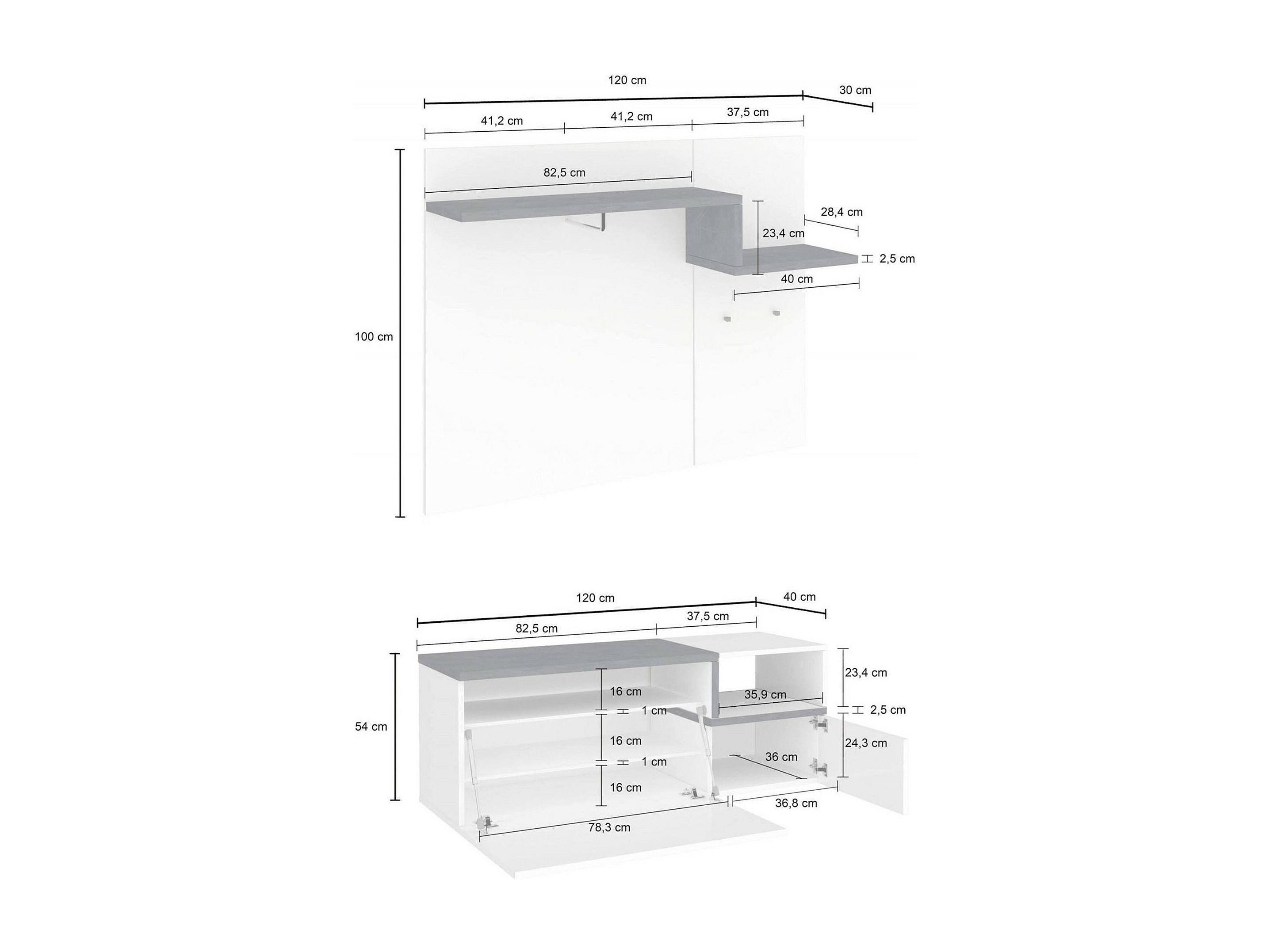 Meuble d'entrée Yuri, entrée multifonction moderne, casier polyvalent pour hall d'entrée, 100% Made in Italy, 120x40h54 cm, blanc brillant et ardoise