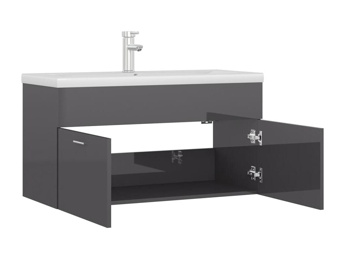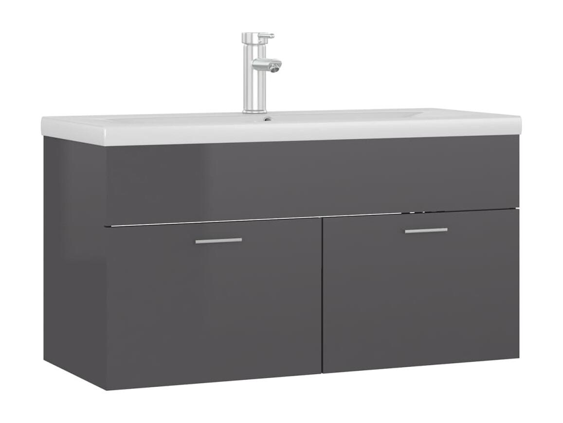 Meuble d'évier+ vasque intégré Gris brillant Aggloméré WVGQ4097