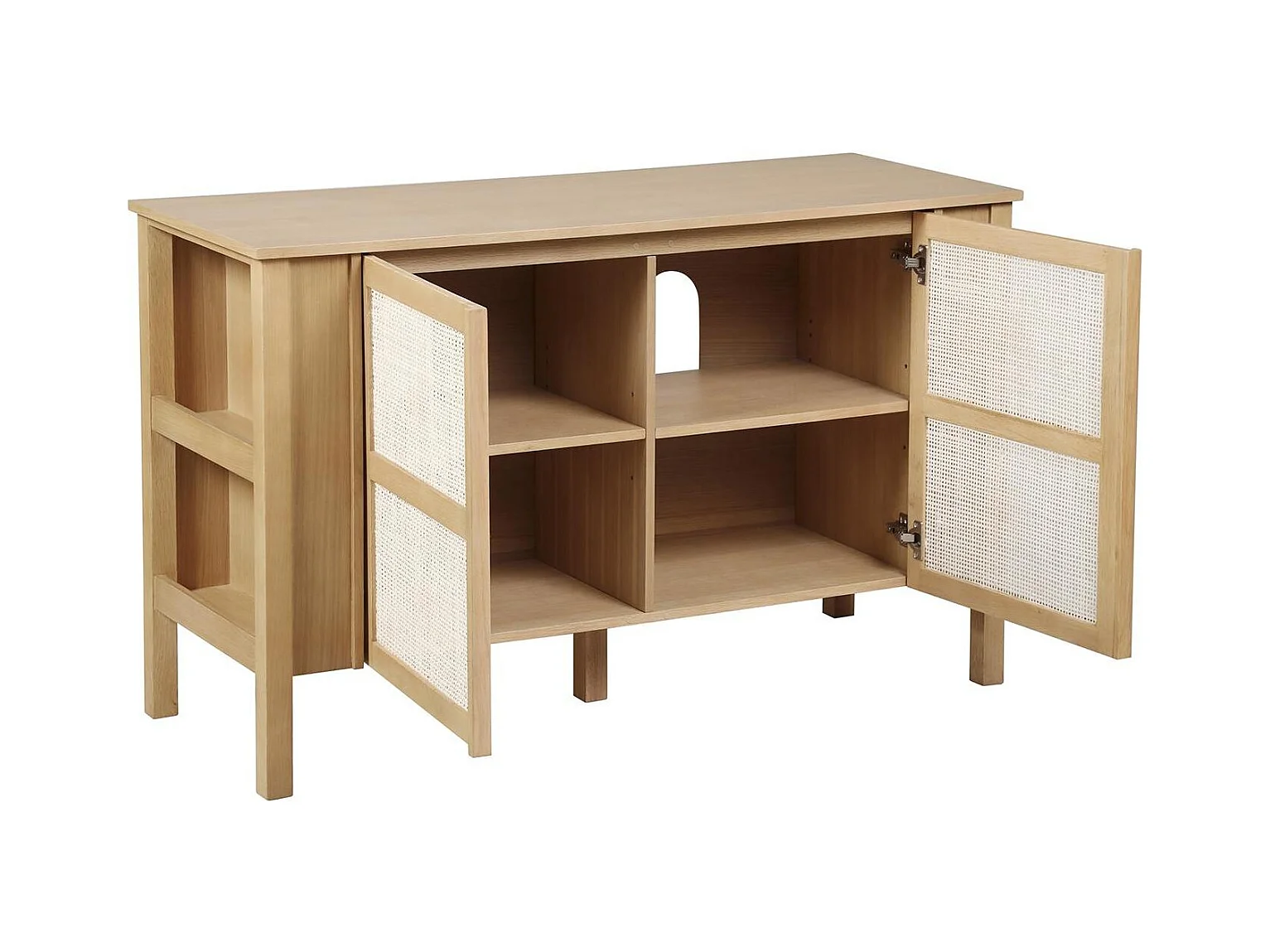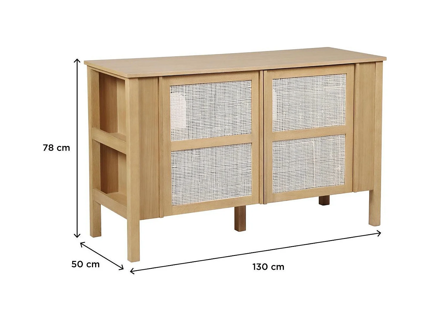 Meuble double vasque chêne portes cannage 130 cm