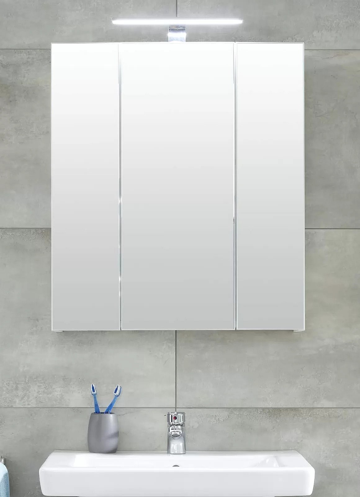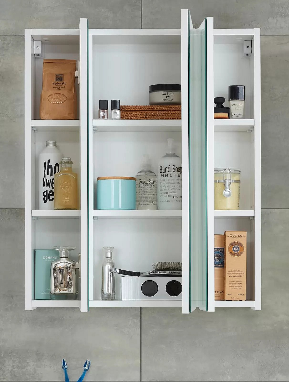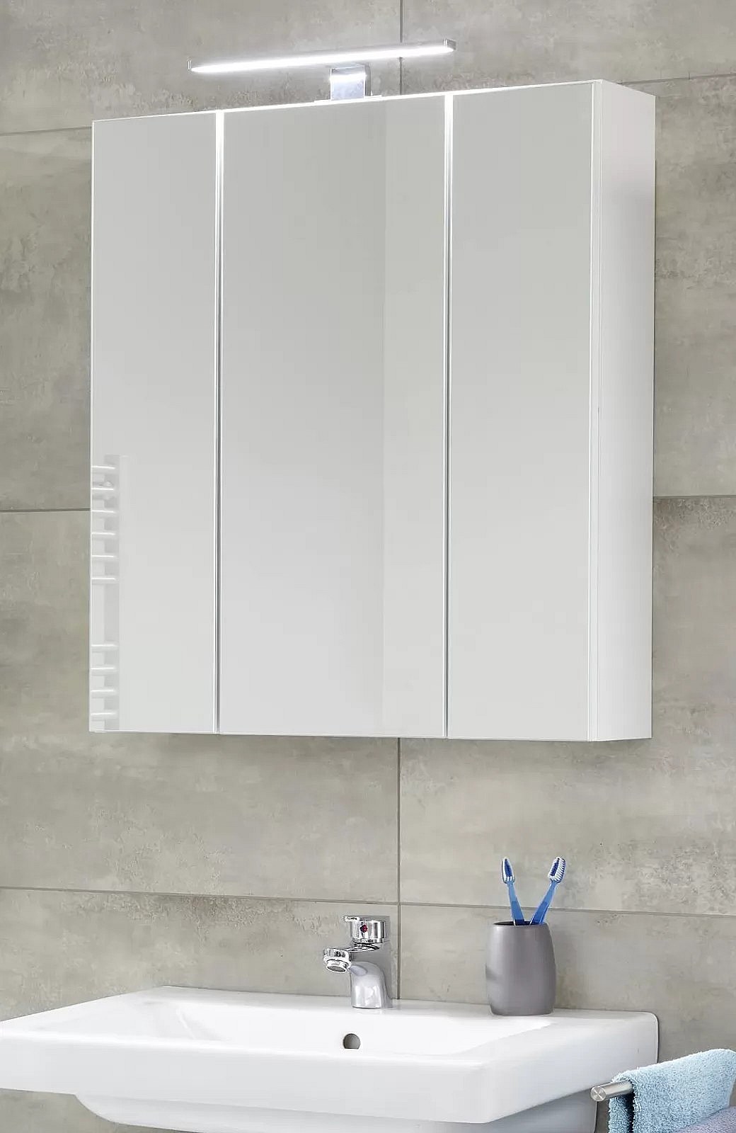Armoire de toilette 3 portes mélaminé blanc avec miroir Micko
