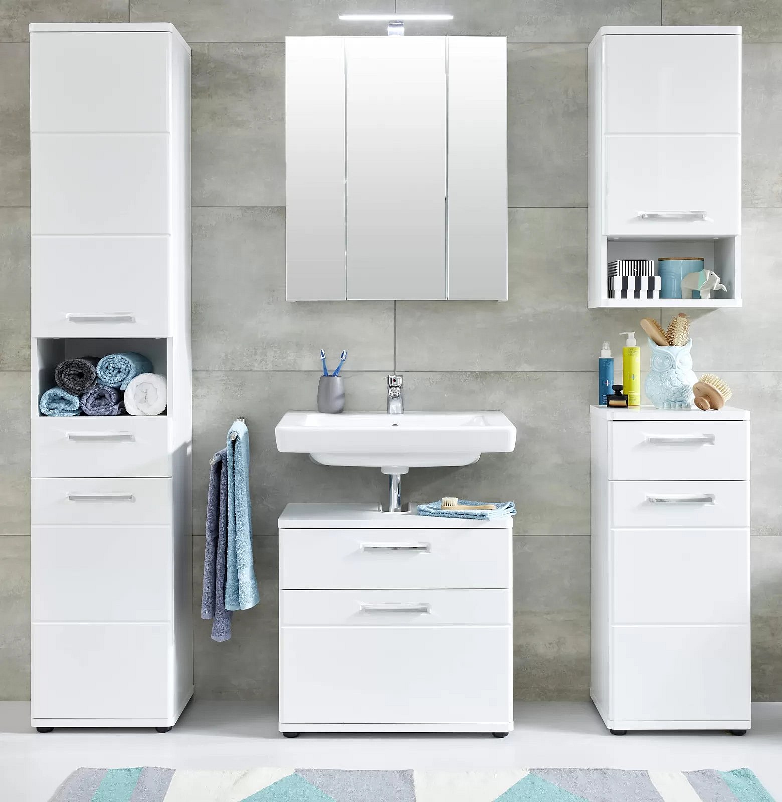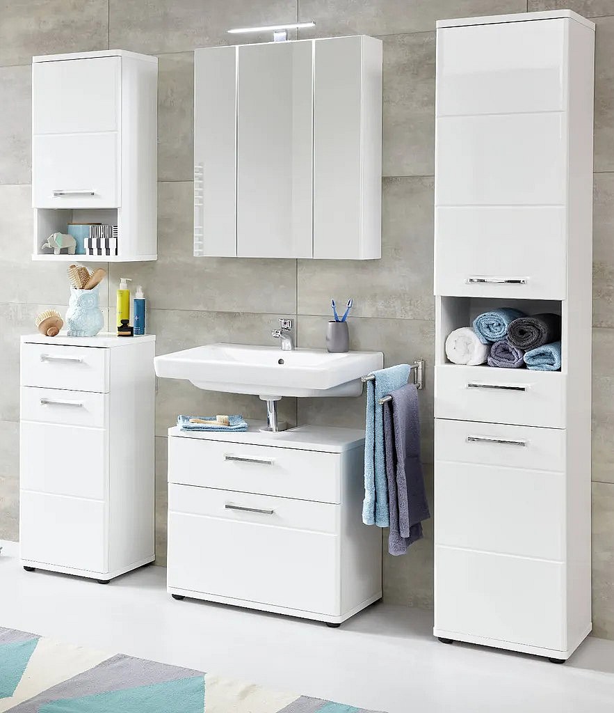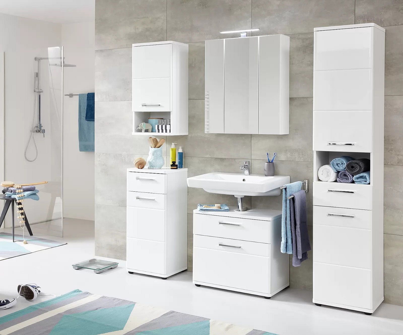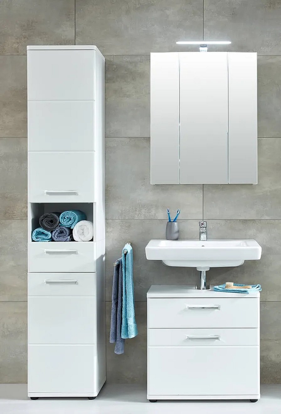 Armoire de toilette 3 portes mélaminé blanc avec miroir Micko