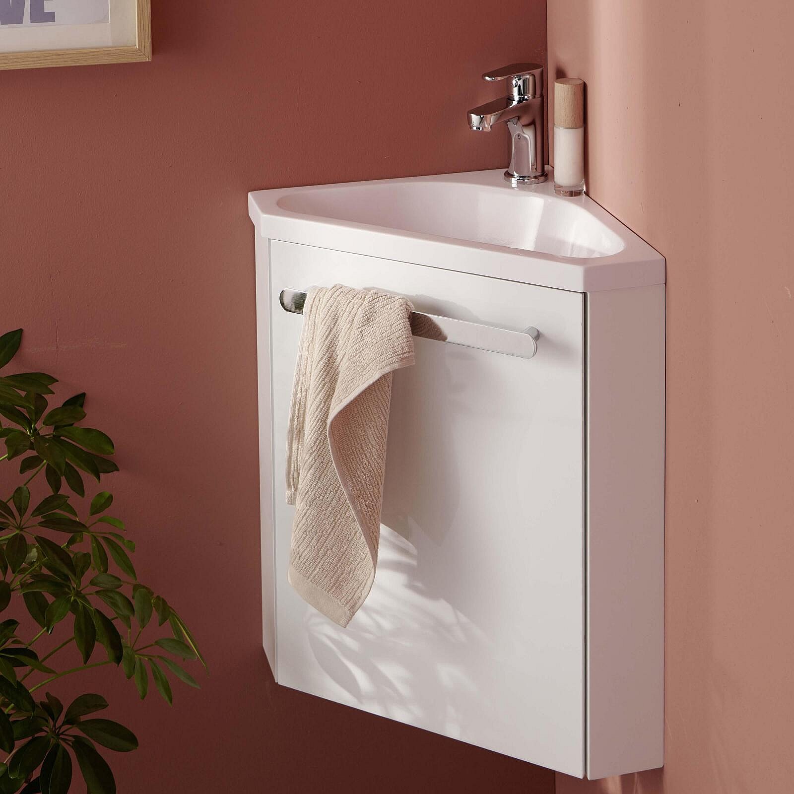 Meuble lave-mains d'angle suspendu avec vasque résine