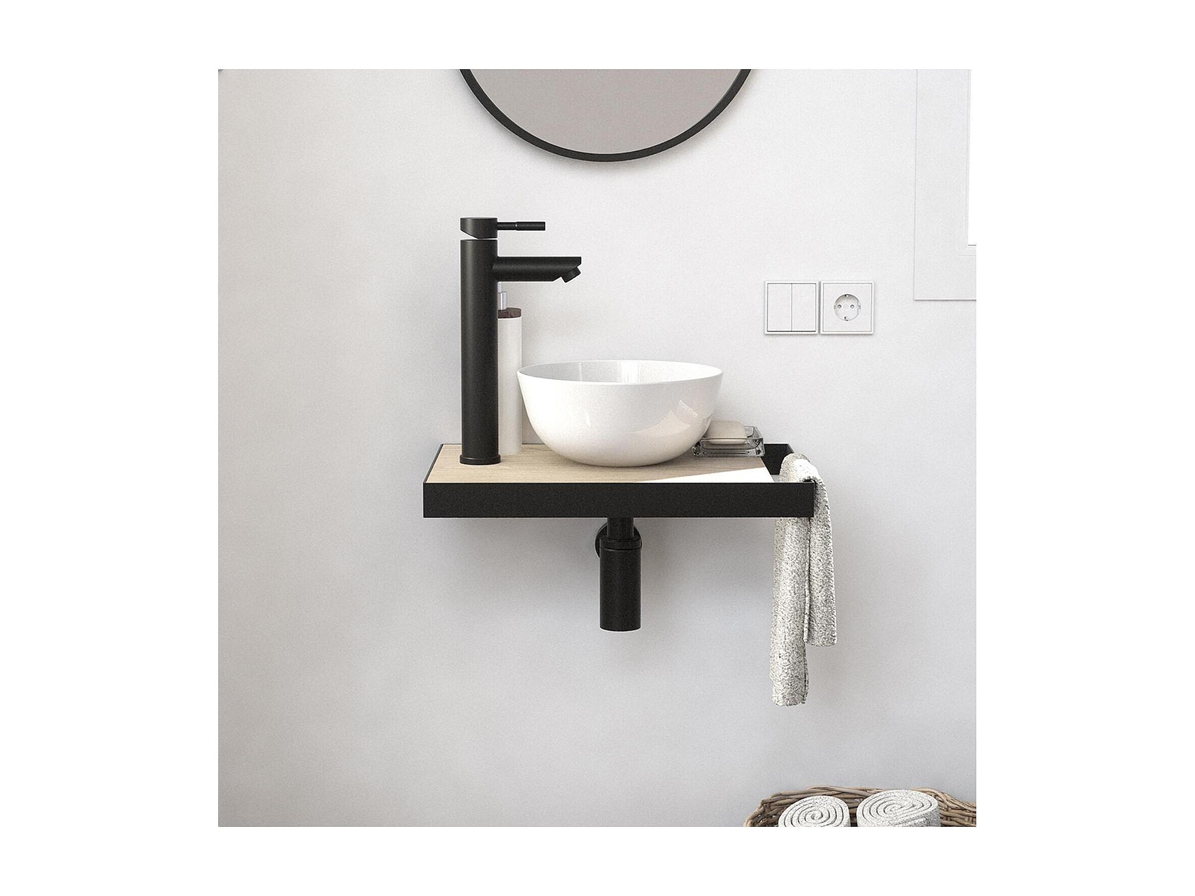 Meuble lave-mains plan fin porte-serviettes côté + vasque blanche + robinet