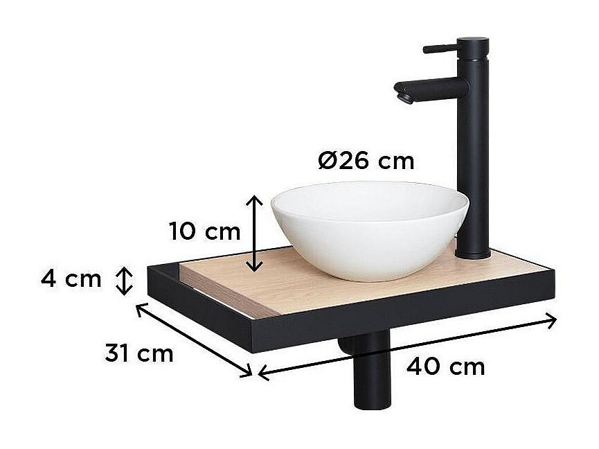 Meuble lave-mains plan fin porte-serviettes dessous + vasque blanche + robinet