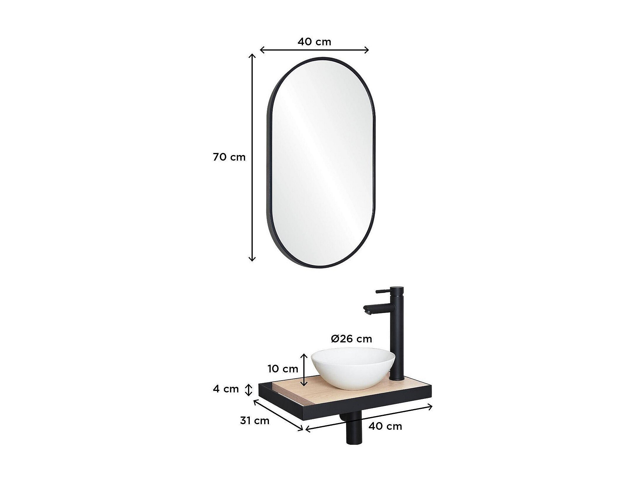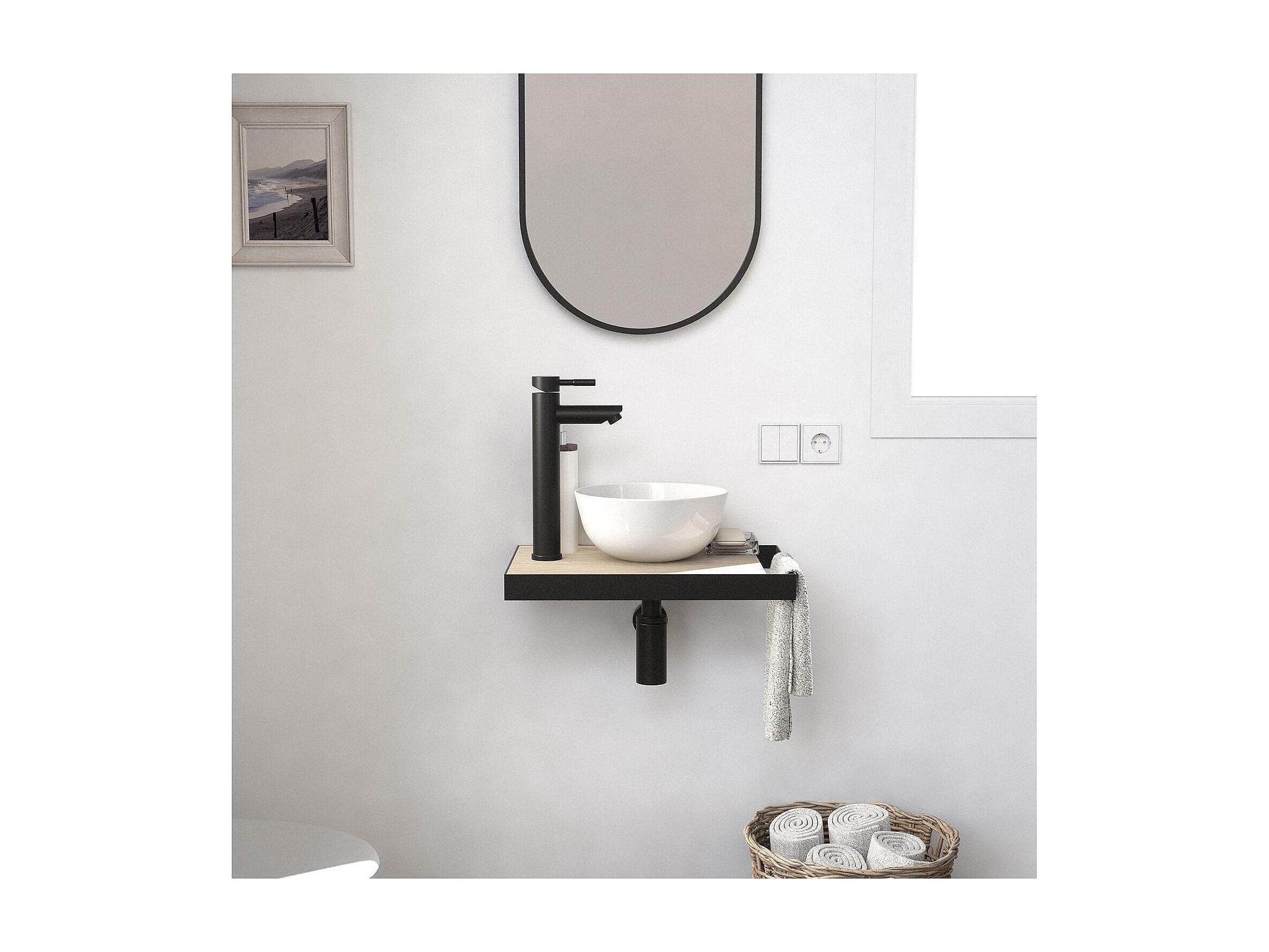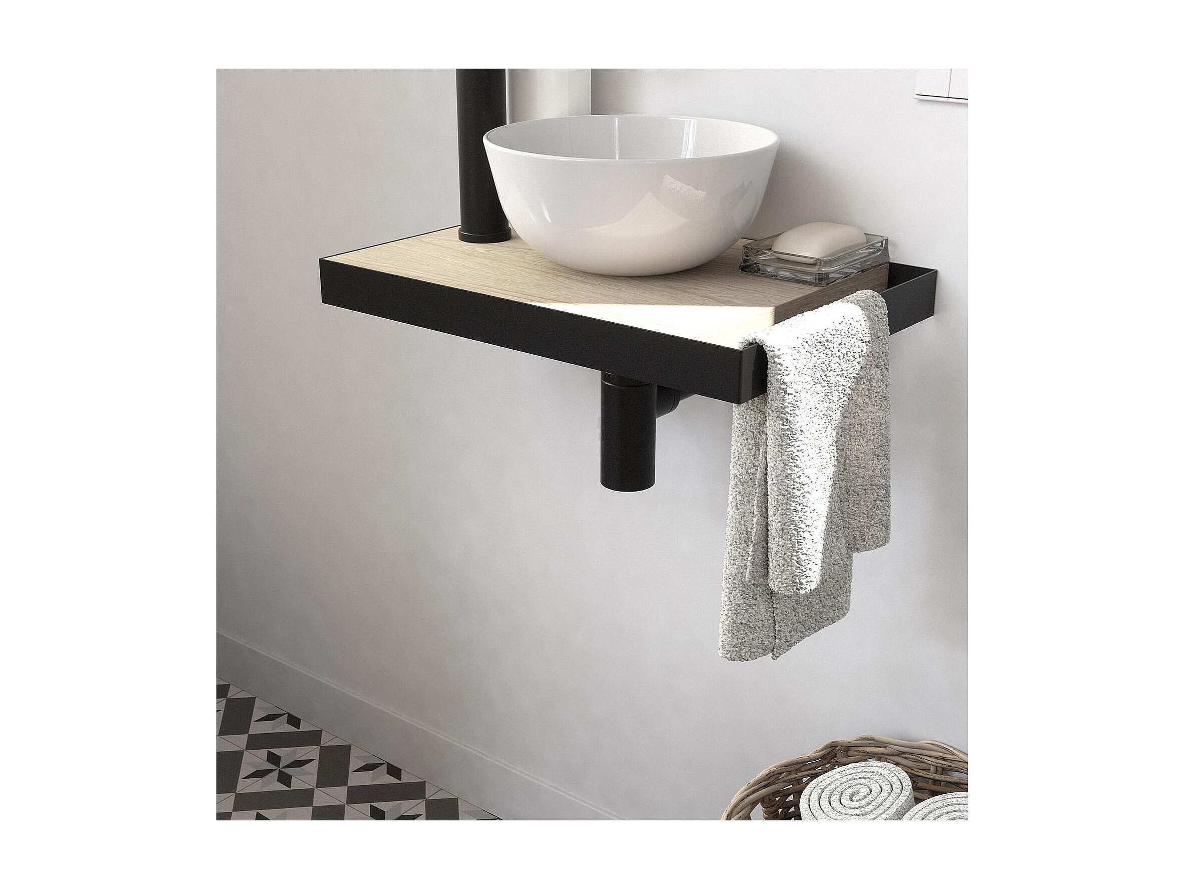 Meuble lave-mains plan fin porte-serviettes côté + vasque blanche + miroir