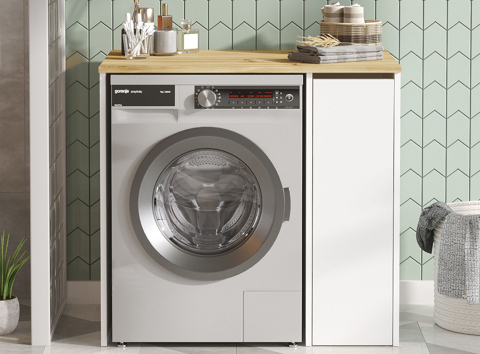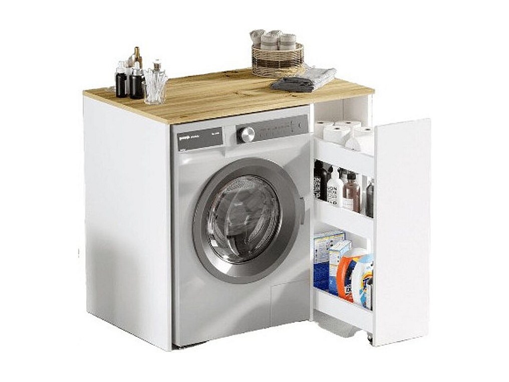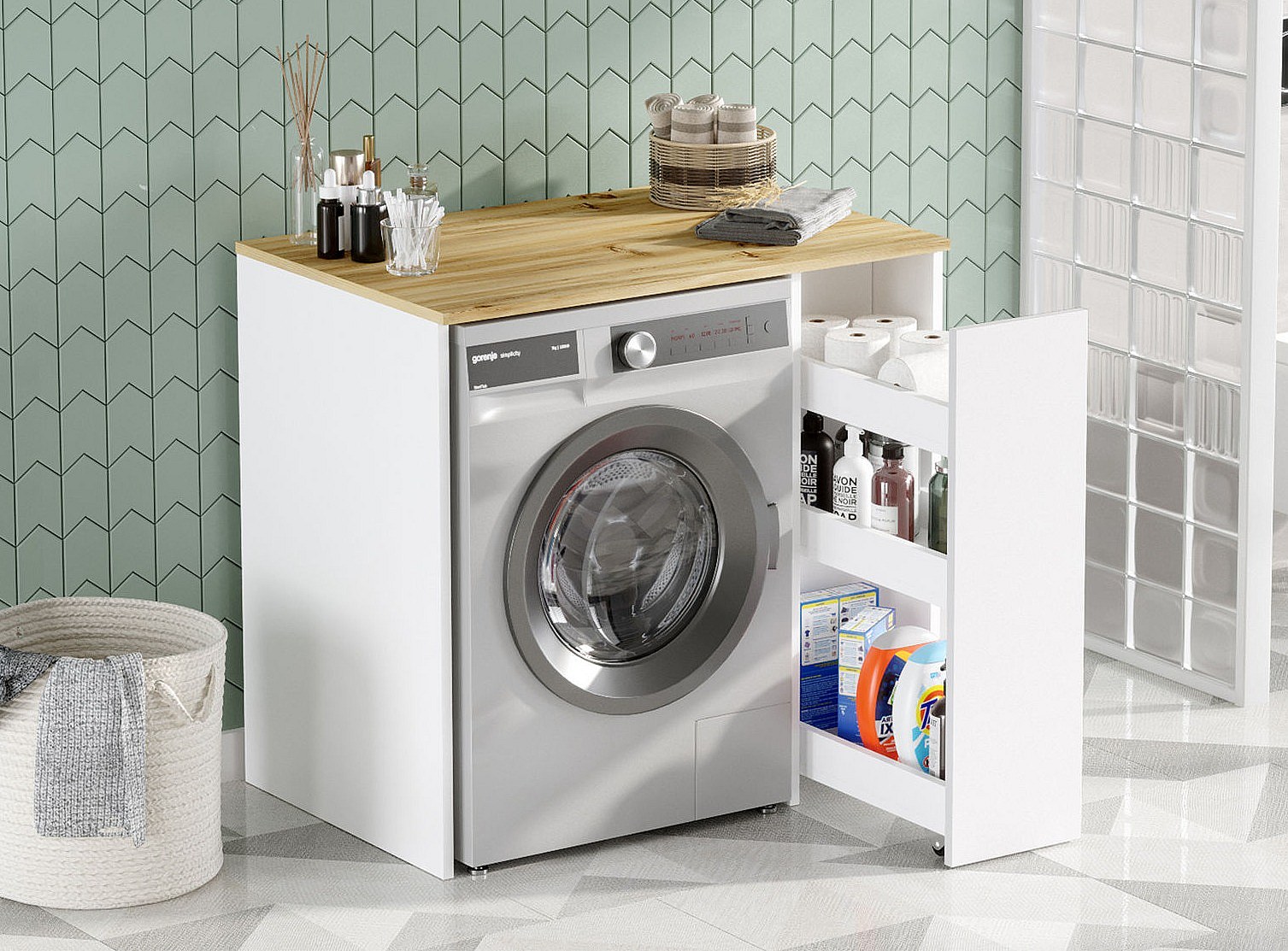 Armoire de Rangement pour Machine à Laver en Bois Blanc et Bois Naturel