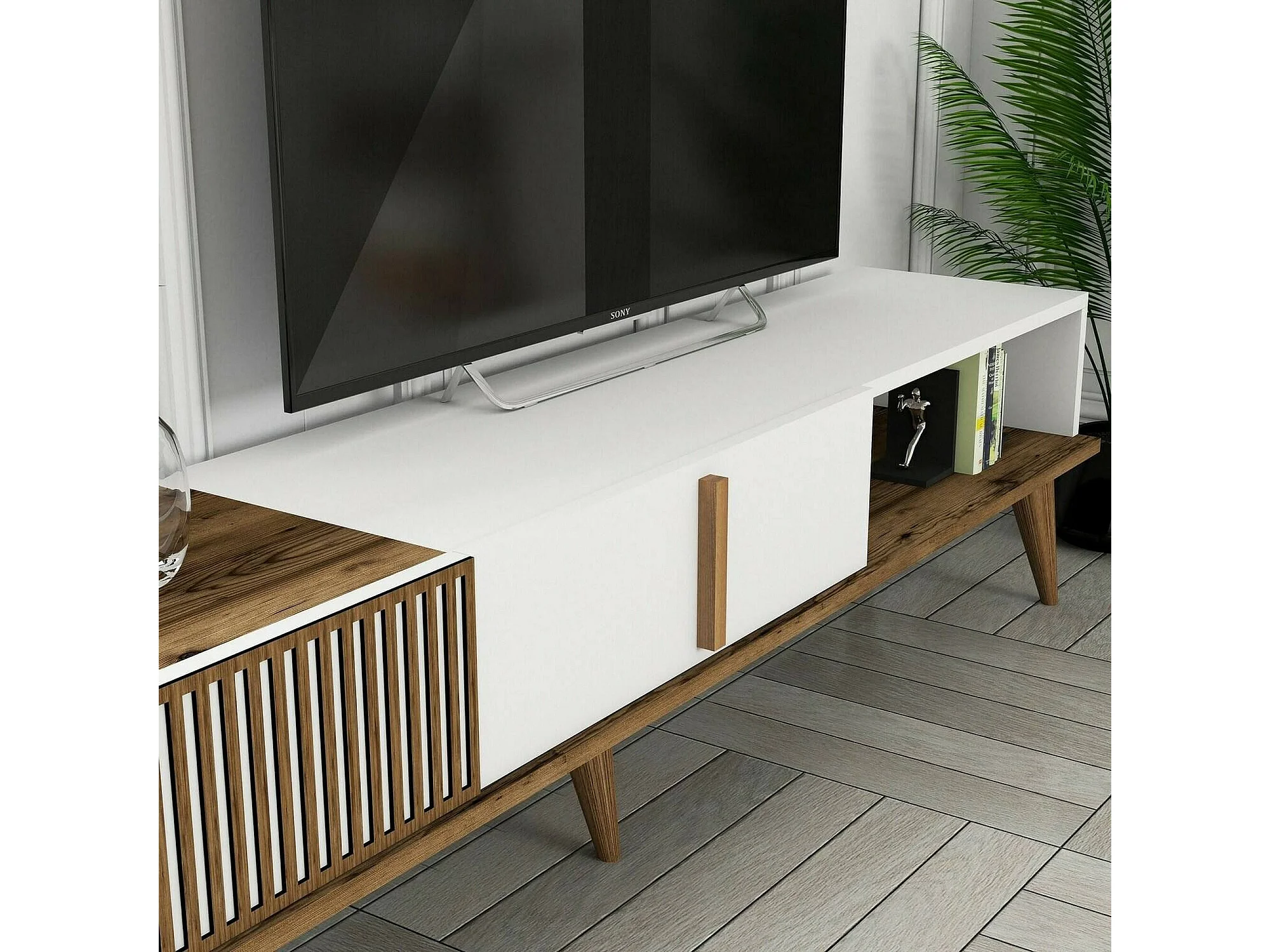 Meuble Mural Gemini, Composition du salon, Meubles de salon polyvalents, Meuble télé, 180x35h40 cm, Noyer et Blanc