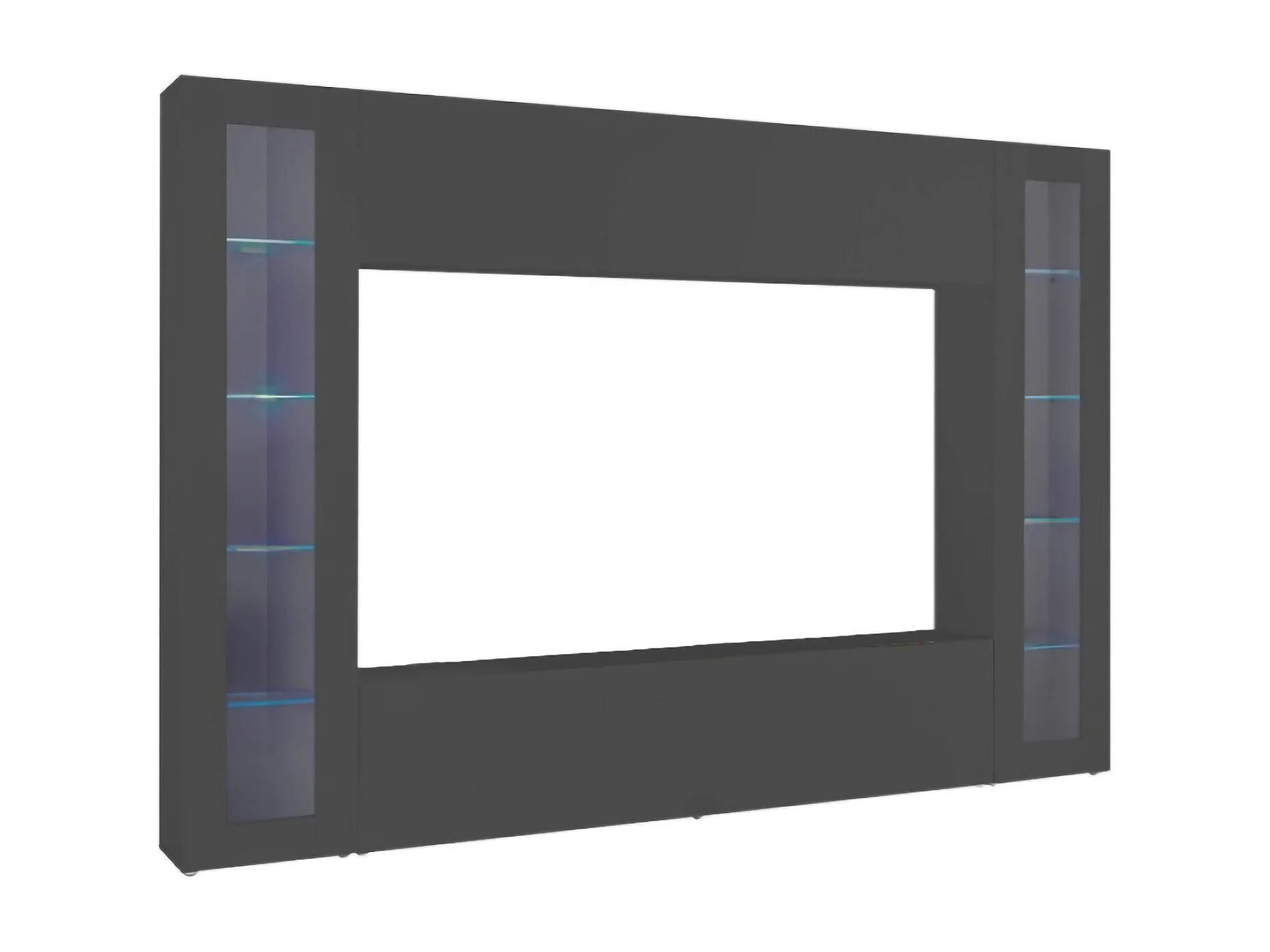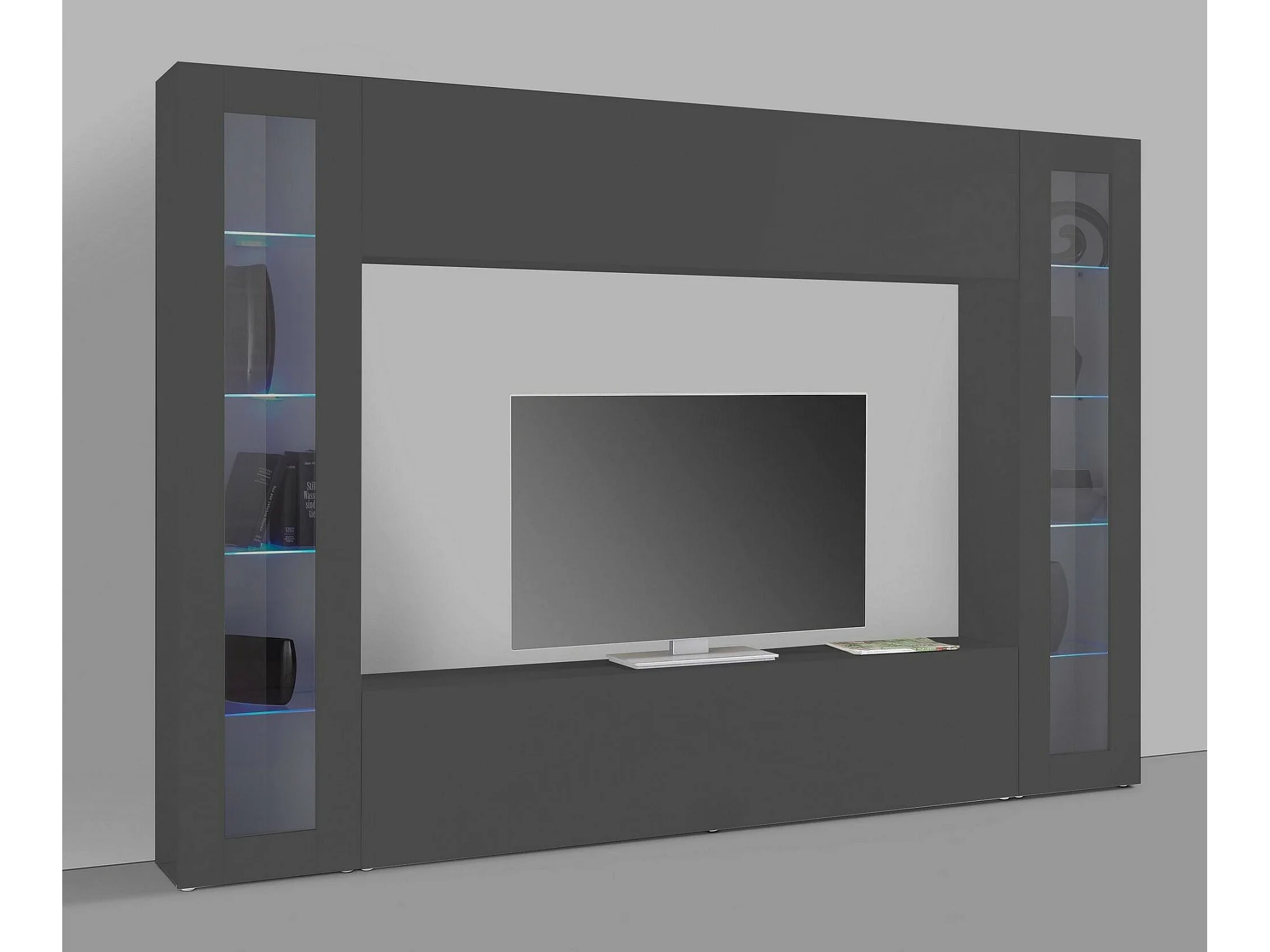 Élément mural Giuliano, meuble TV 4 portes, meuble de salon polyvalent avec vitrine et lumière LED, 100% Made in Italy, 260x30h180 cm, Anthracite