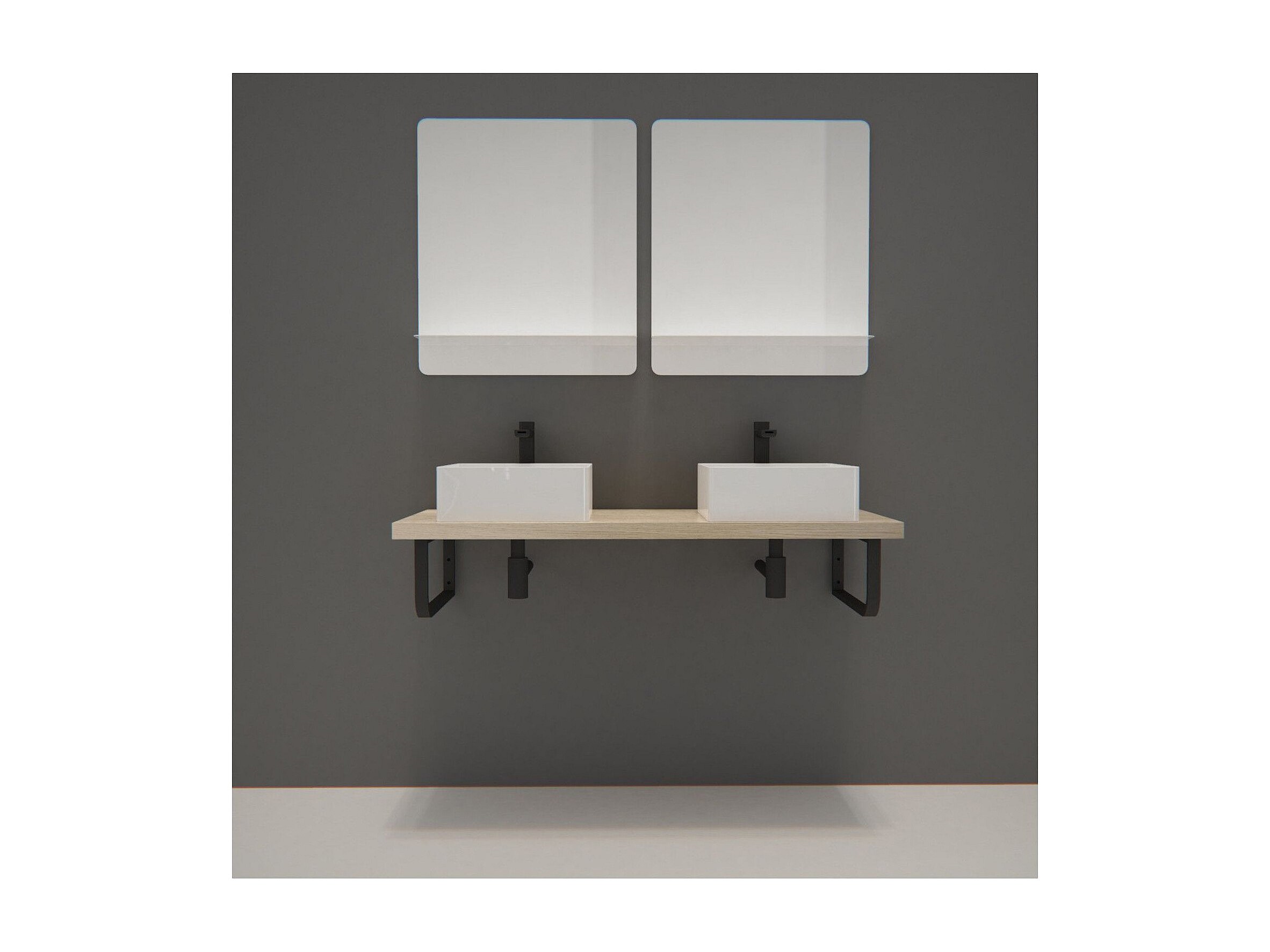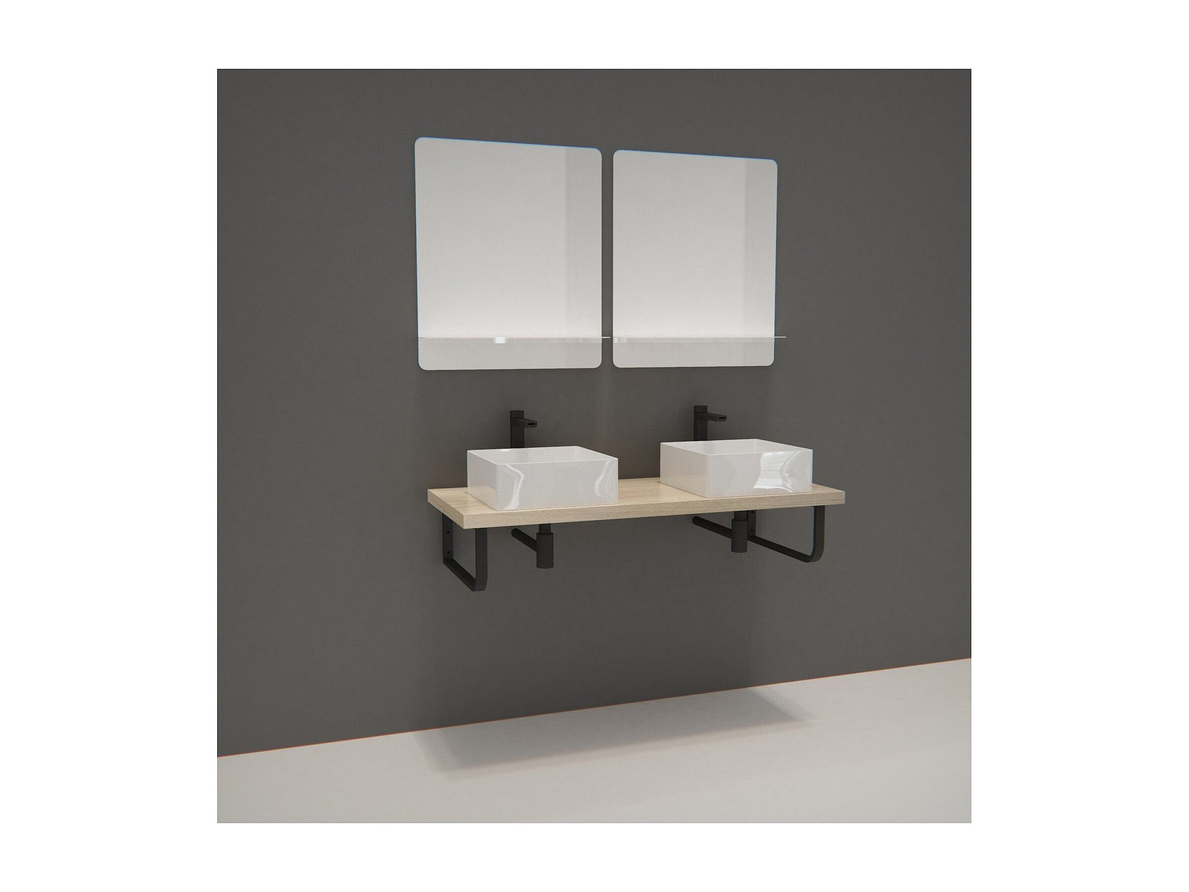 Meuble - Plan suspendu 120 cm + 2 Vasques + 2 Miroirs + Equerres porte serviettes - WILL