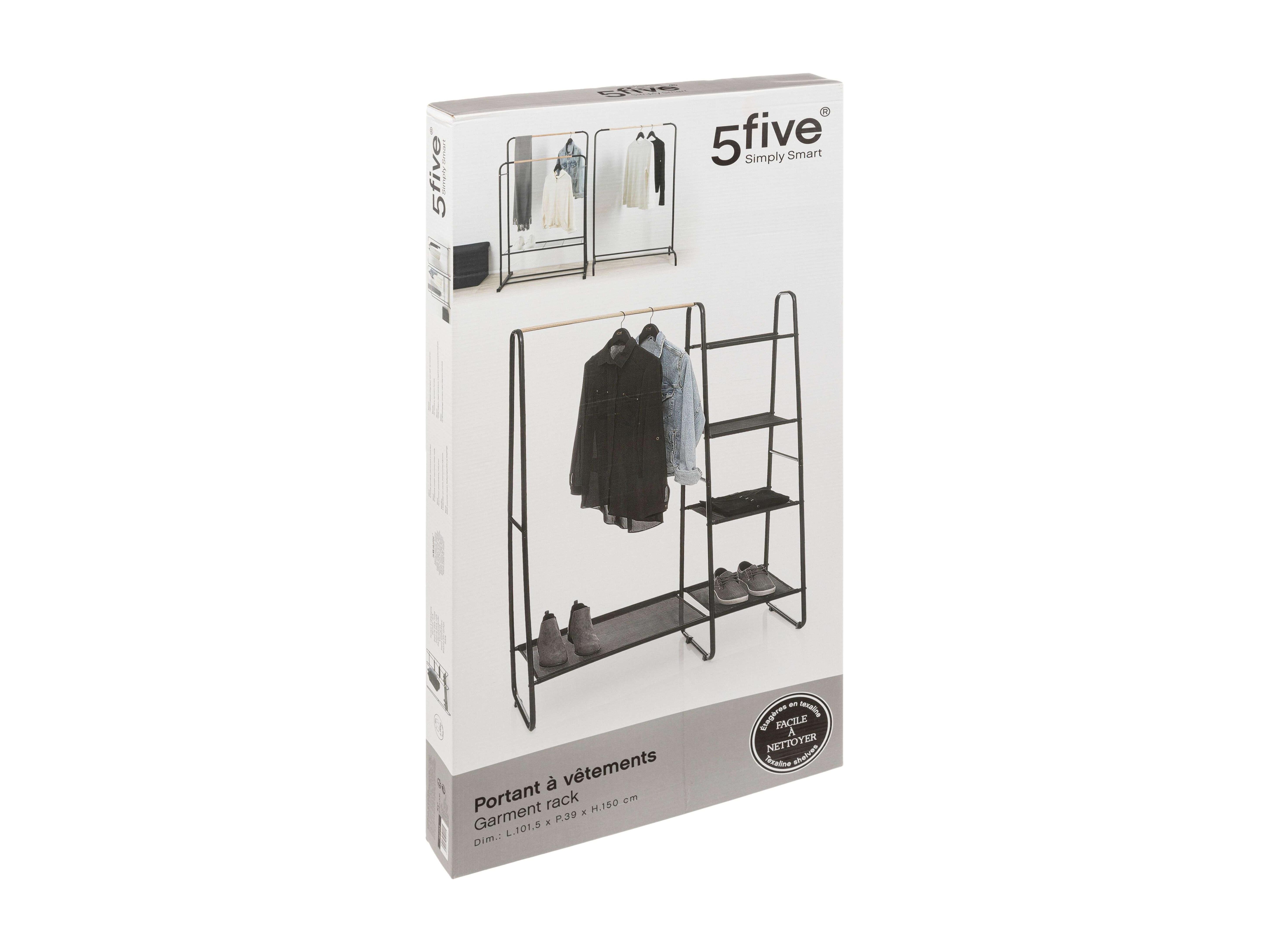 Penderie Portant à vêtements avec étagères en Fer Noir H 167 cm