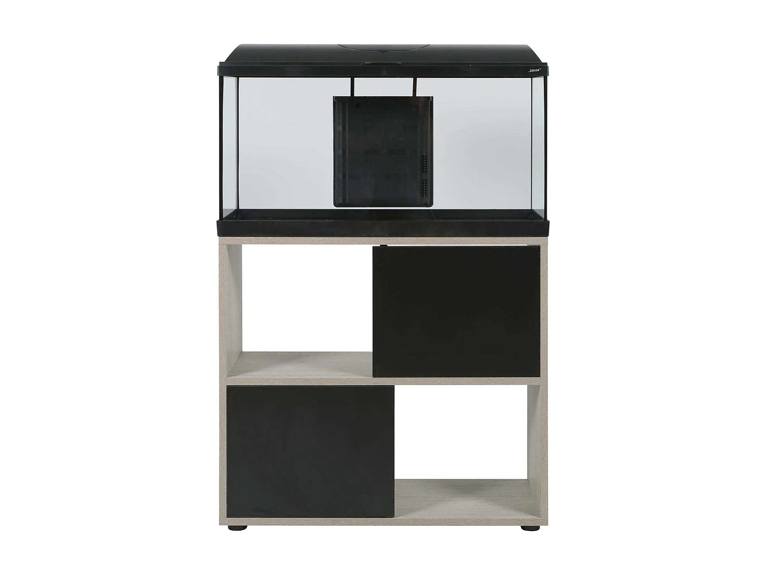 Cage pour chien sur pied - 2 portes verrouillables, coussin déhoussable inclus - acier filaire noir panneaux aspect bois clair