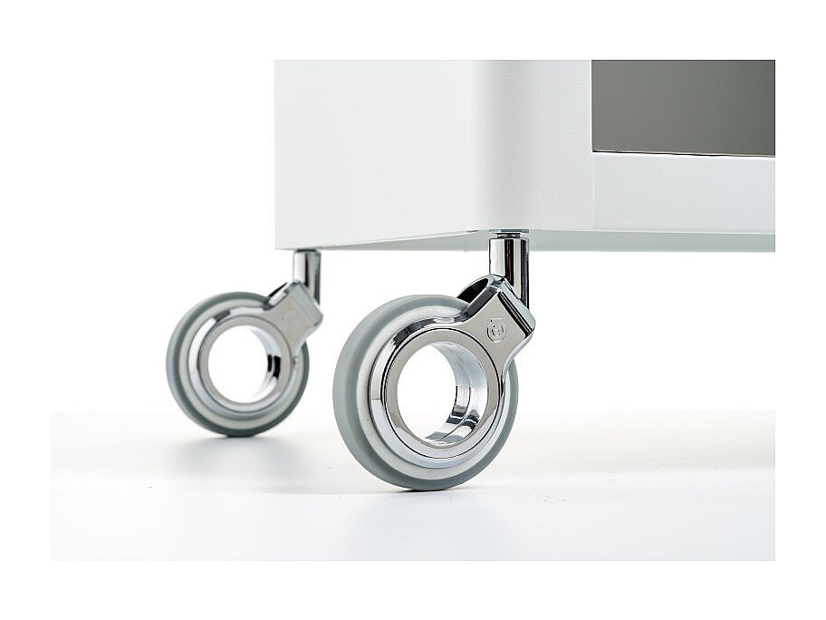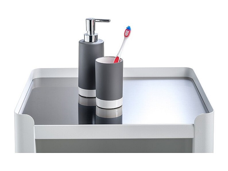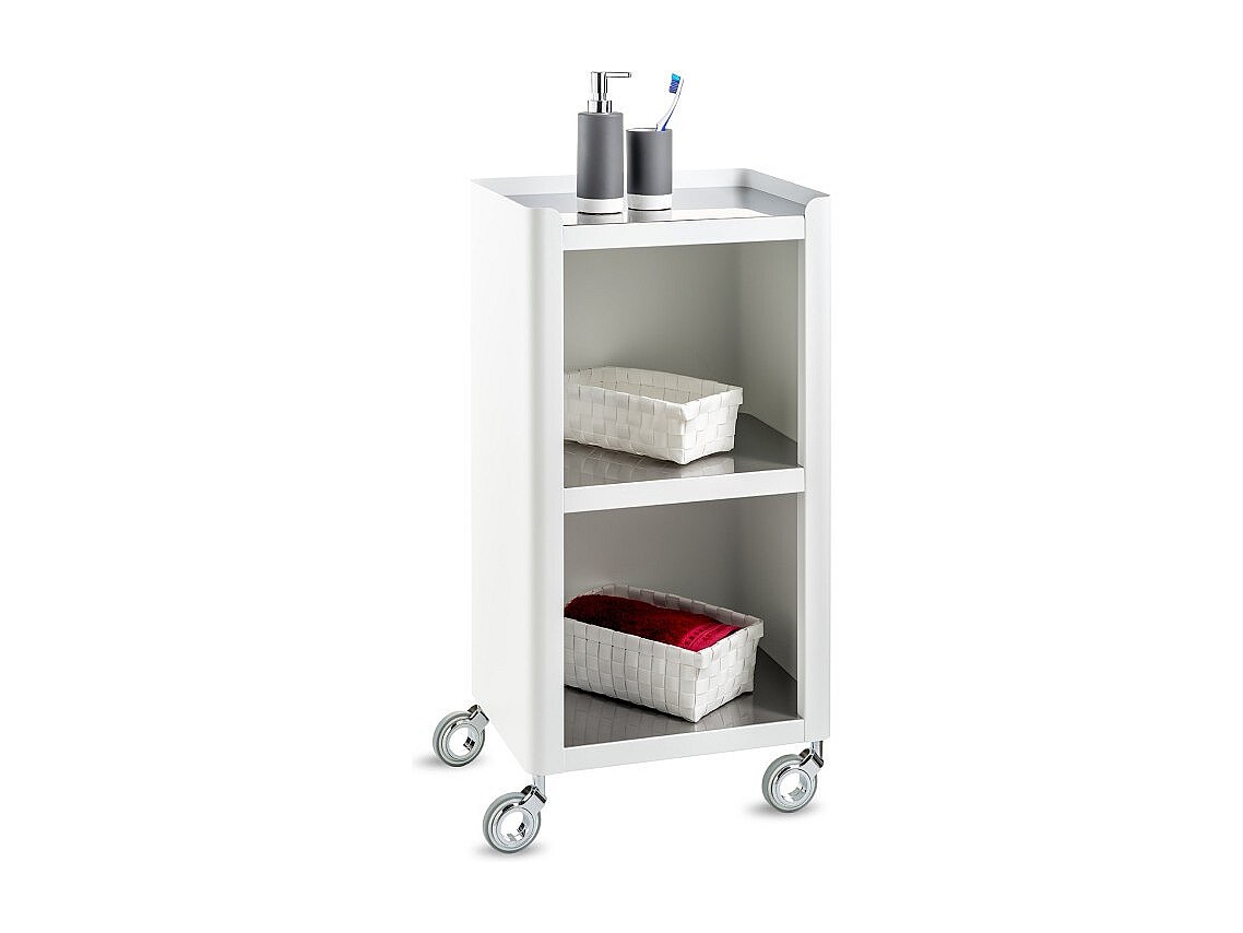 Meuble rangement salle de bain, cuisine, bureau.Desserte à roulettes. Style Scandinave, 42 x 31 x 82 cm., blanc-inox, LOUISE