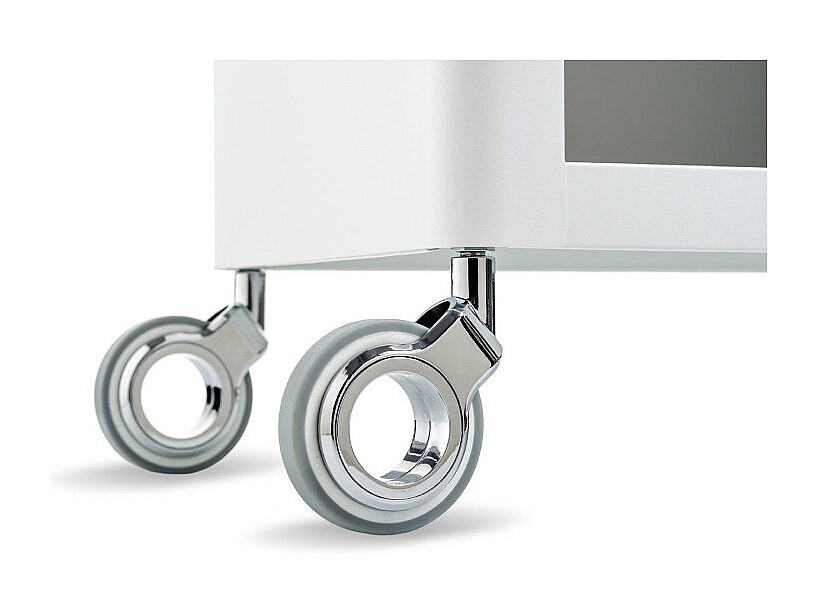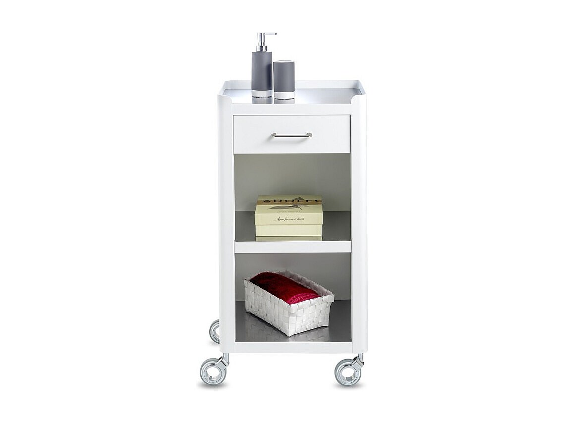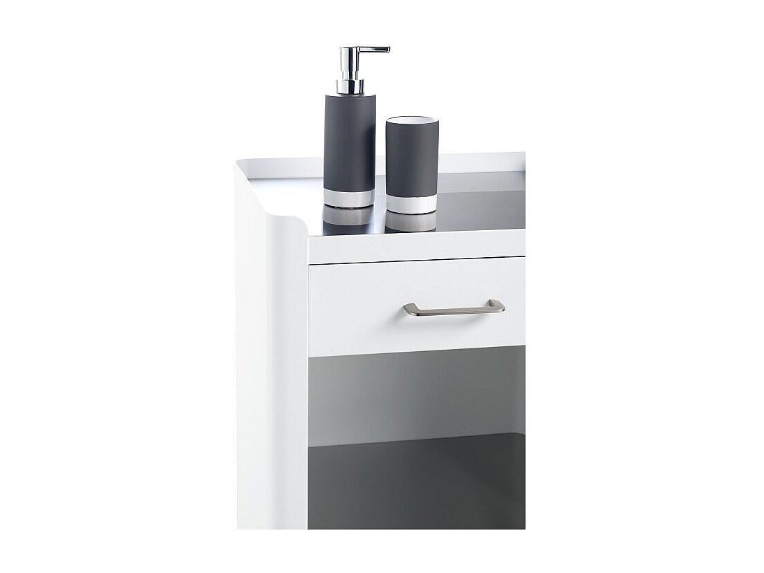 Meuble rangement salle de bain, cuisine, bureau. Étagère avec tiroir. Style Scandinave, 42 x 31 x 82 cm., blanc-inox, THELMA